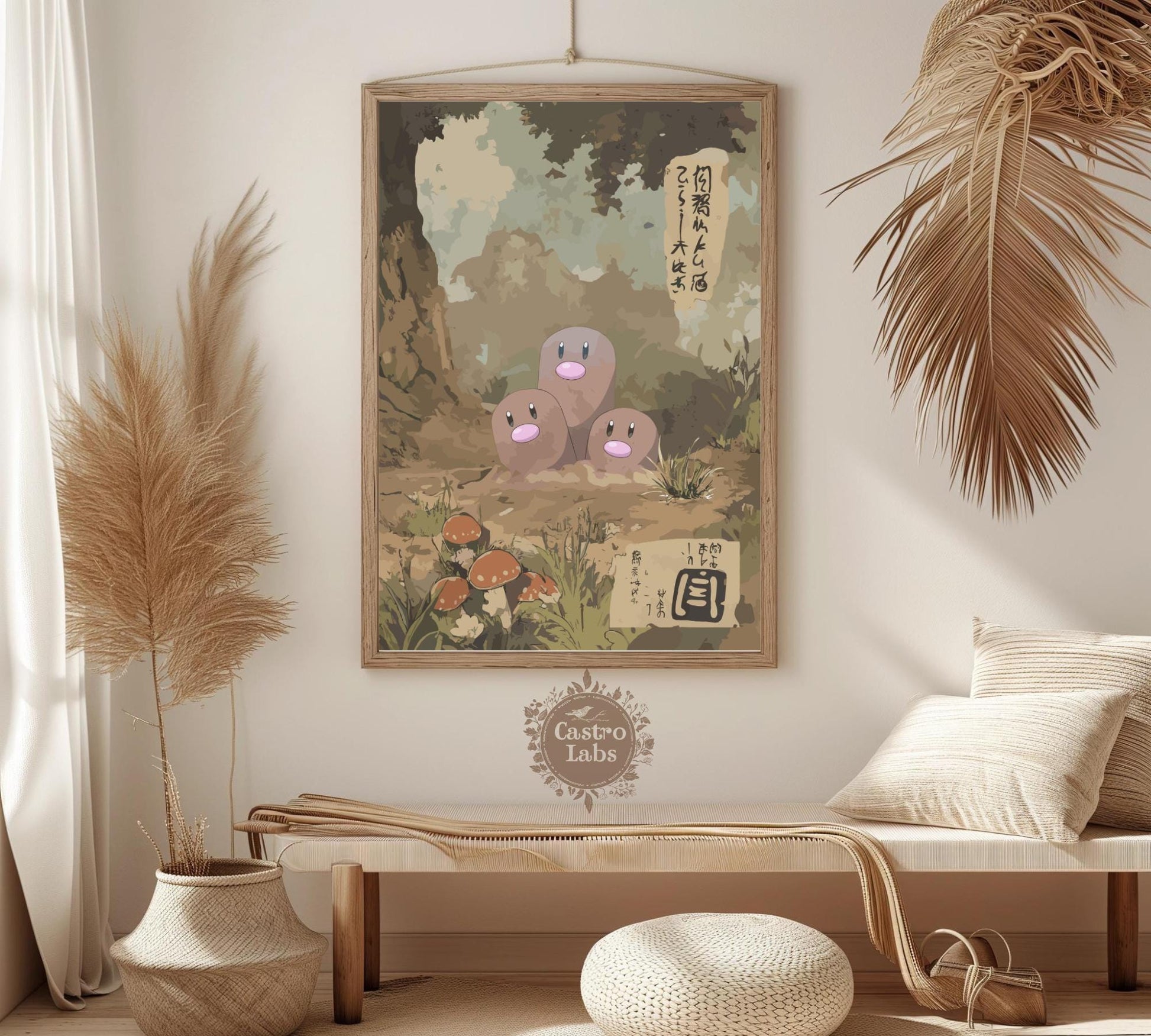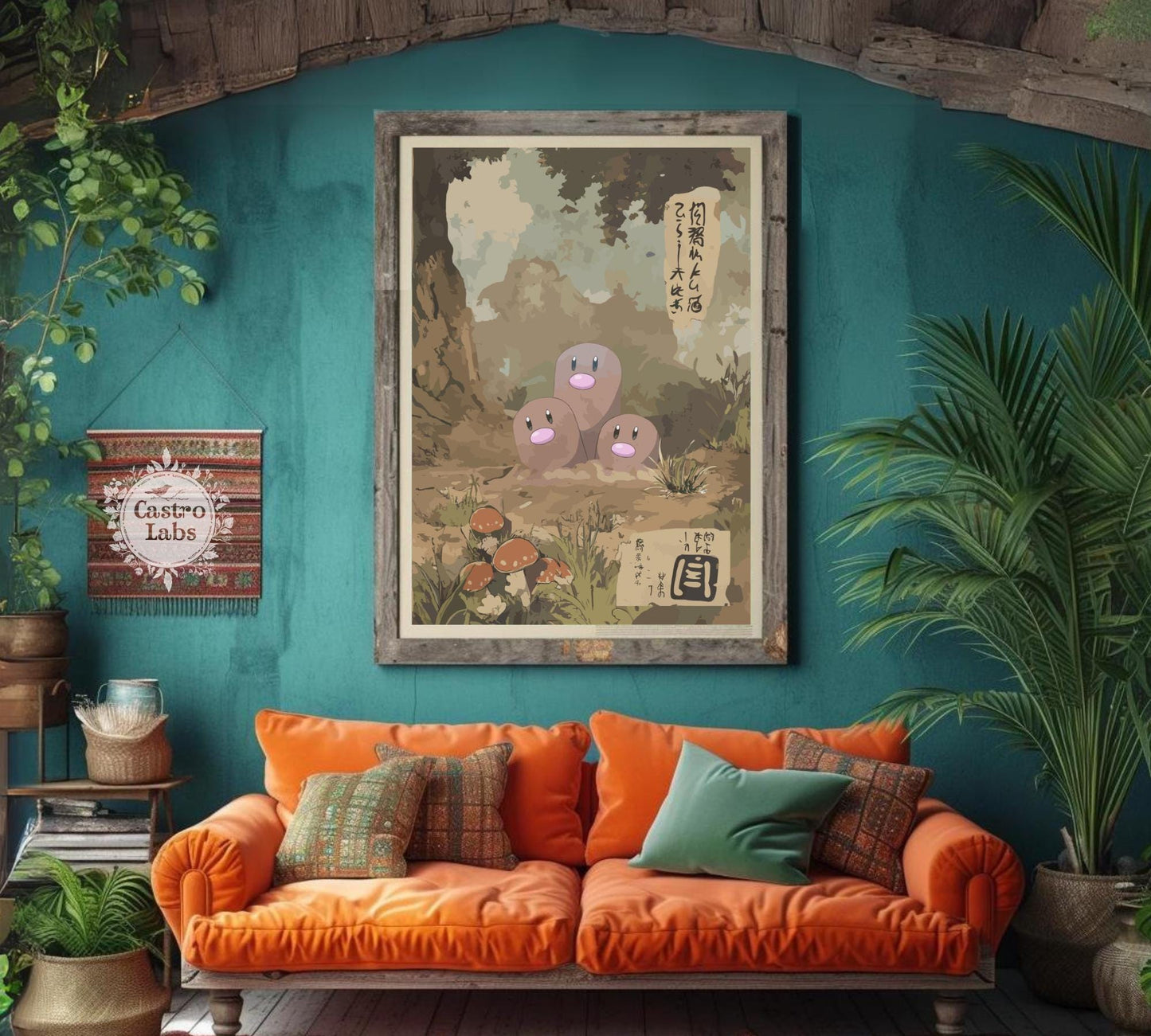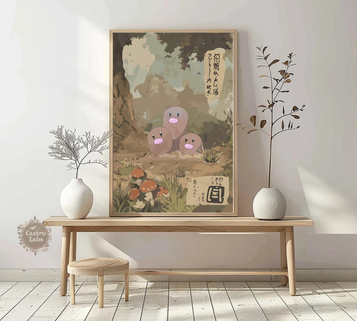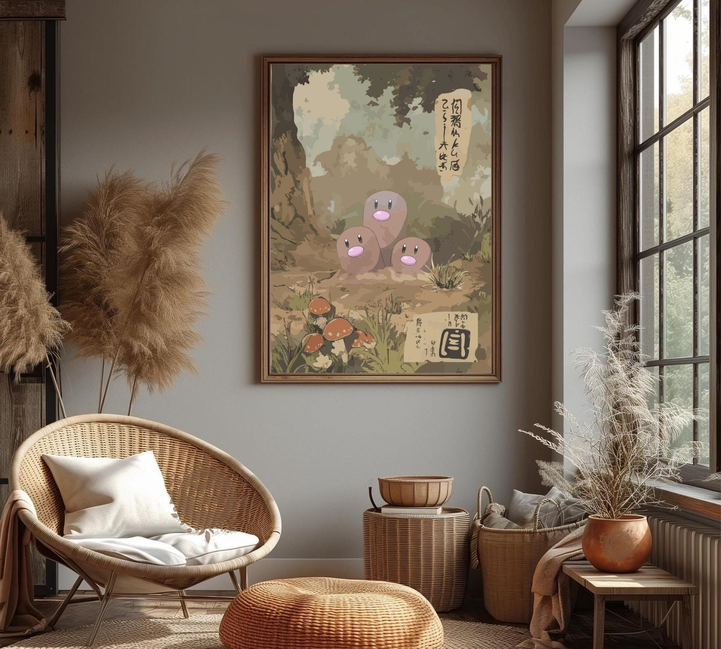 Affiche Pokémon Trio-Dug – Illustration d'anime de style japonais