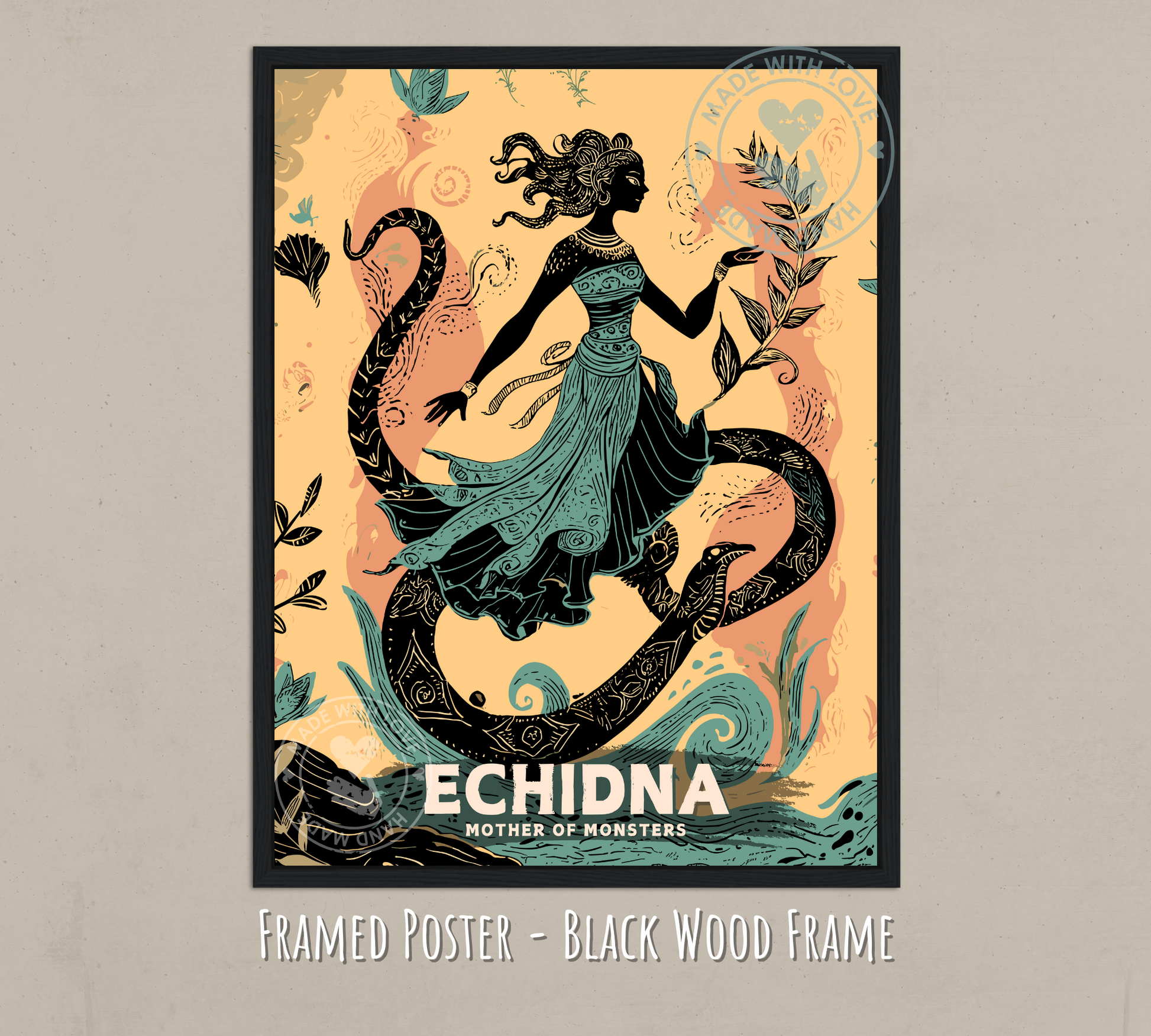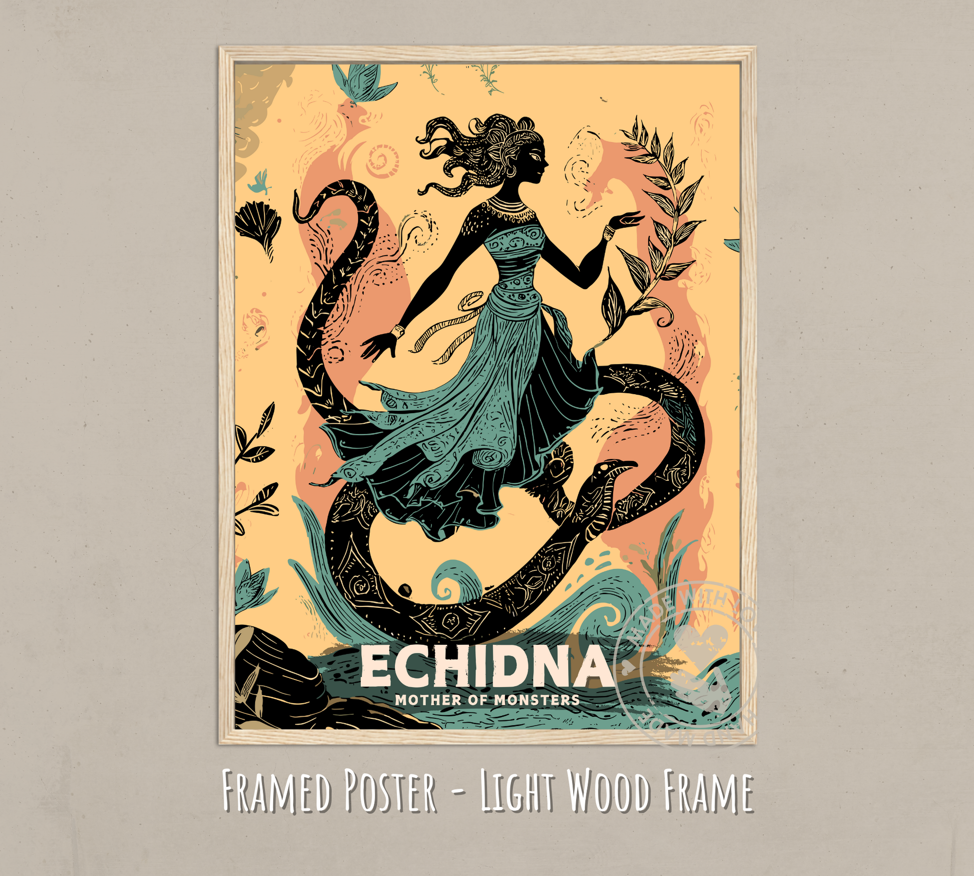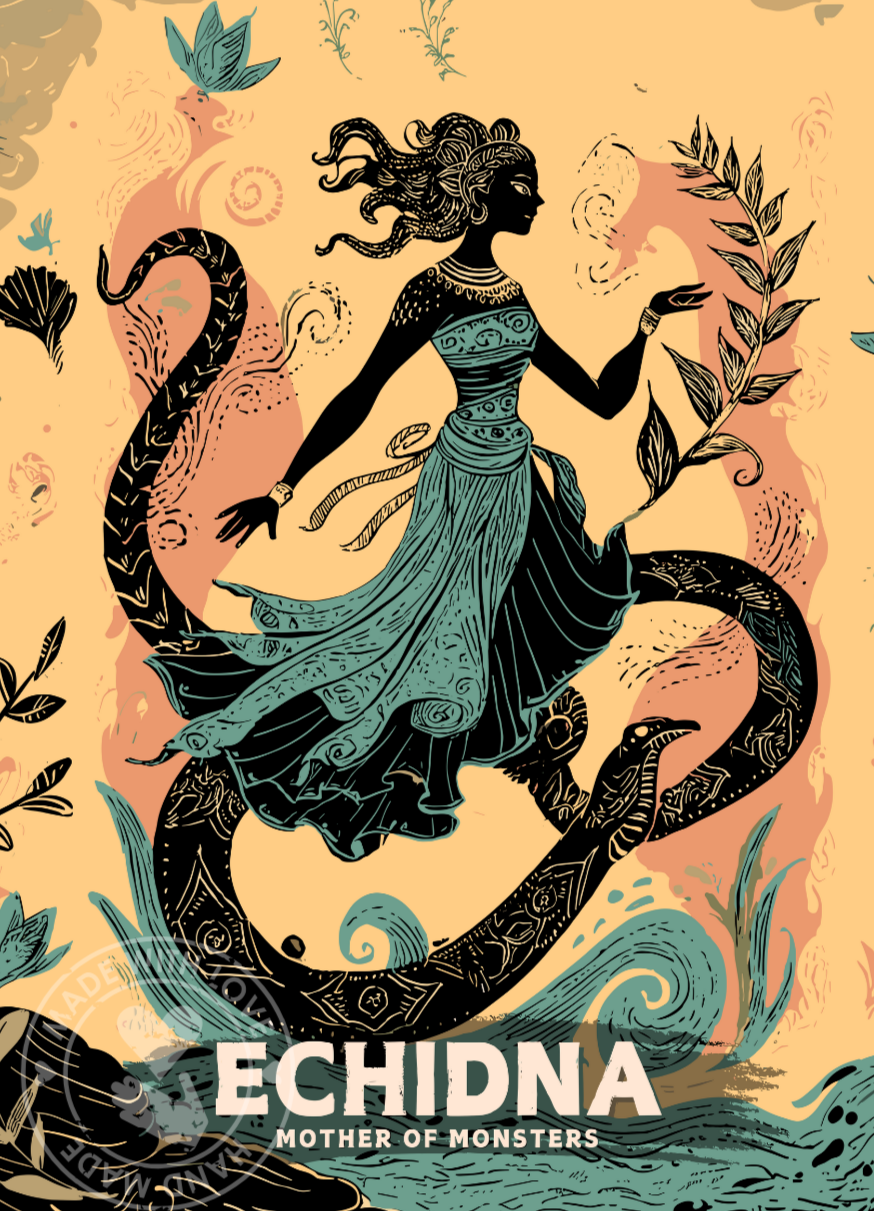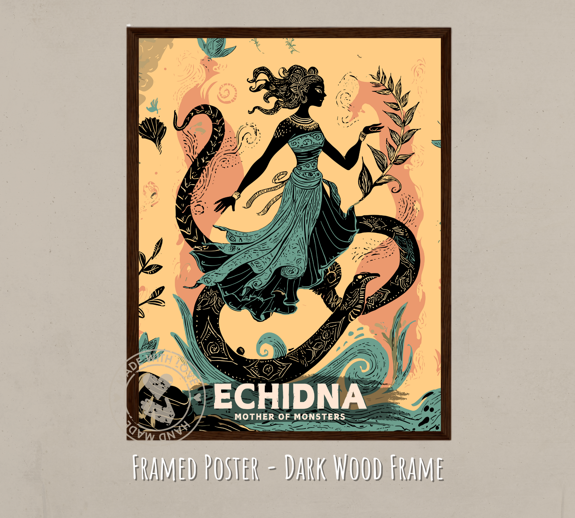Ajoutez une touche de mythologie à votre espace avec cette superbe affiche d'Échidna , représentant la terrifiante Mère des Monstres de la mythologie grecque. Connue pour sa lignée redoutable, Échidna a donné naissance à certaines des créatures les plus célèbres, de l'Hydre à la Chimère. Cette affiche capture sa présence féroce et son rôle essentiel dans le monde des mythes antiques, ce qui en fait un incontournable pour tout passionné de mythologie.