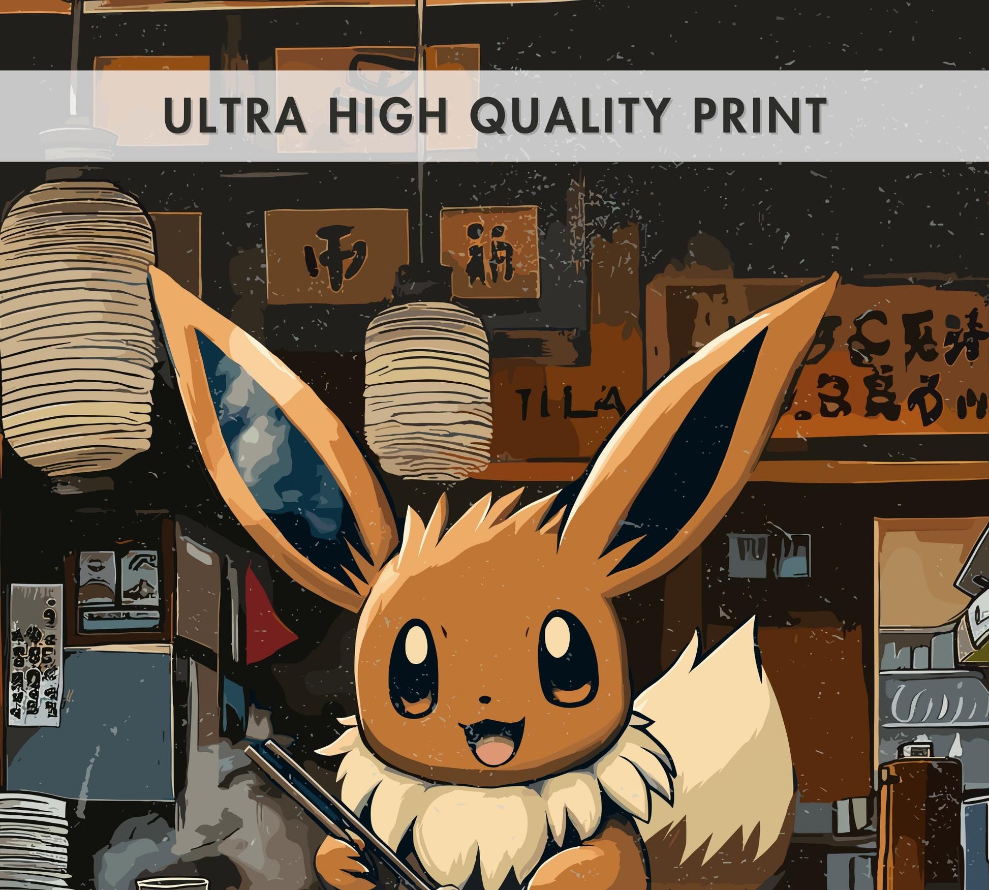 Affiche Ramen Évoli - Décoration murale Pokémon japonaise | Décoration Anime et Nouilles