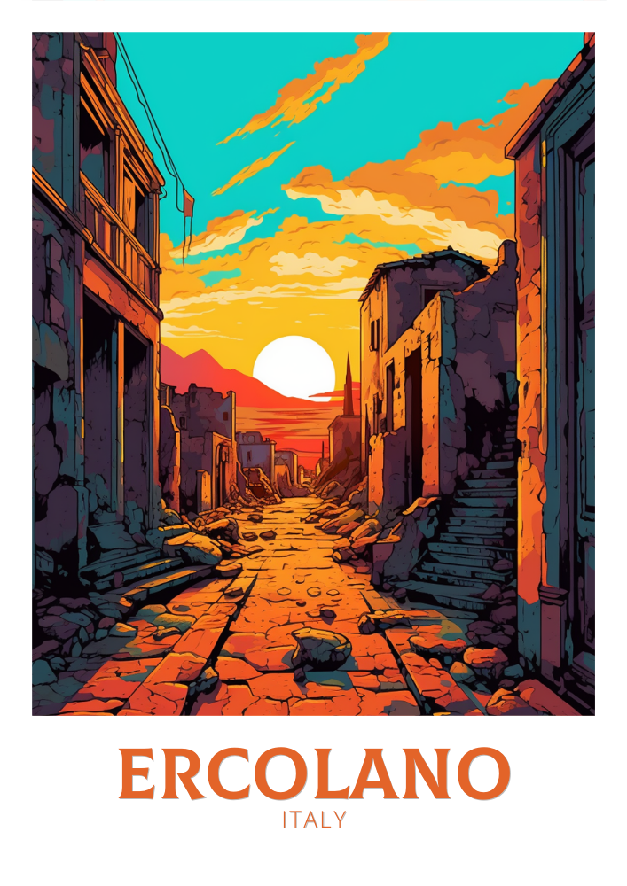 Donnez vie au monde antique avec notre affiche de voyage Ercolano , une œuvre d'art italienne magnifiquement détaillée inspirée de la cité romaine d' Ercolano (Herculanum), remarquablement préservée. Nichée près de la baie de Naples et ombragée par le Vésuve, Ercolano offre un aperçu extraordinaire de la vie quotidienne romaine, de ses élégantes mosaïques à ses rues vétustes. Cette affiche est parfaite pour les passionnés d'archéologie, d'histoire classique et de patrimoine italien .