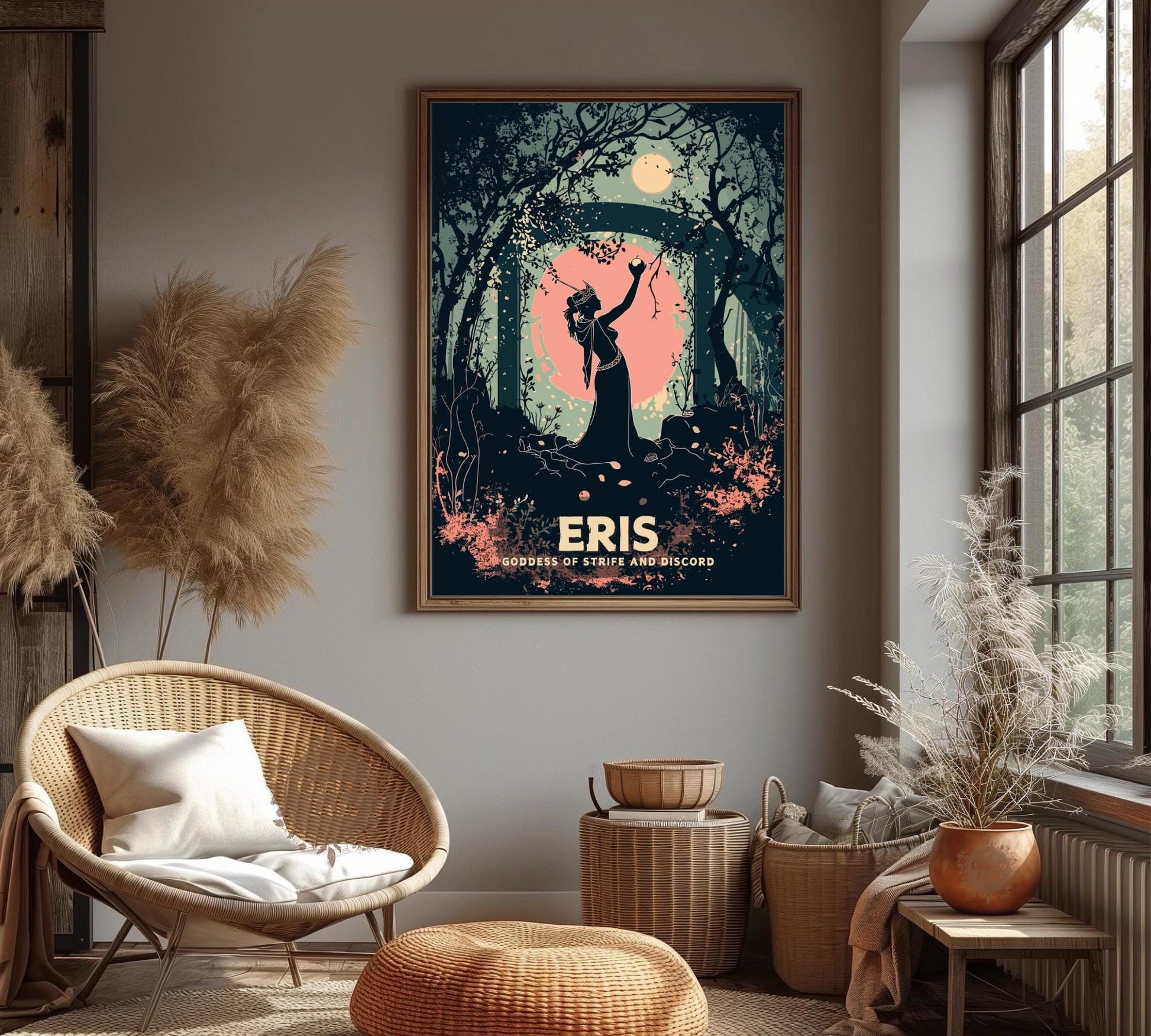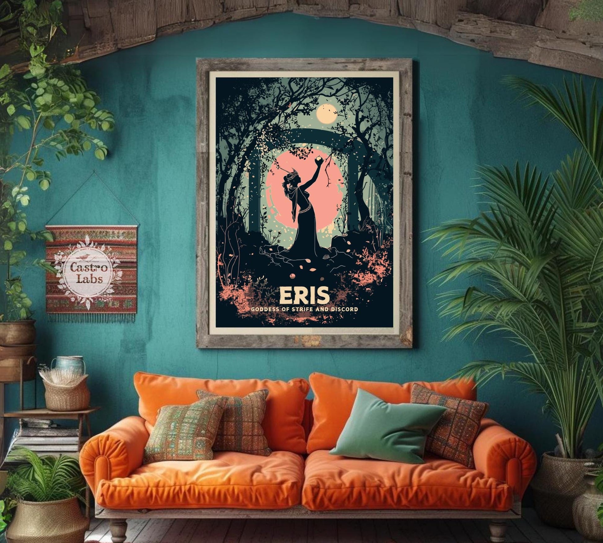 Notre œuvre d'art de la déesse Éris – Mythologie grecque – dynamise votre espace avec son design chaotique. Parfaite pour les passionnés de mythologie et les amateurs d'originalité, elle représente Éris, déesse grecque de la discorde, brandissant sa pomme d'or au milieu de conflits tourbillonnants. Que vous soyez un fervent adepte de son héritage fougueux ou un amateur d'art audacieux, cette affiche mythique d'Éris apportera une touche d'originalité à votre décoration.