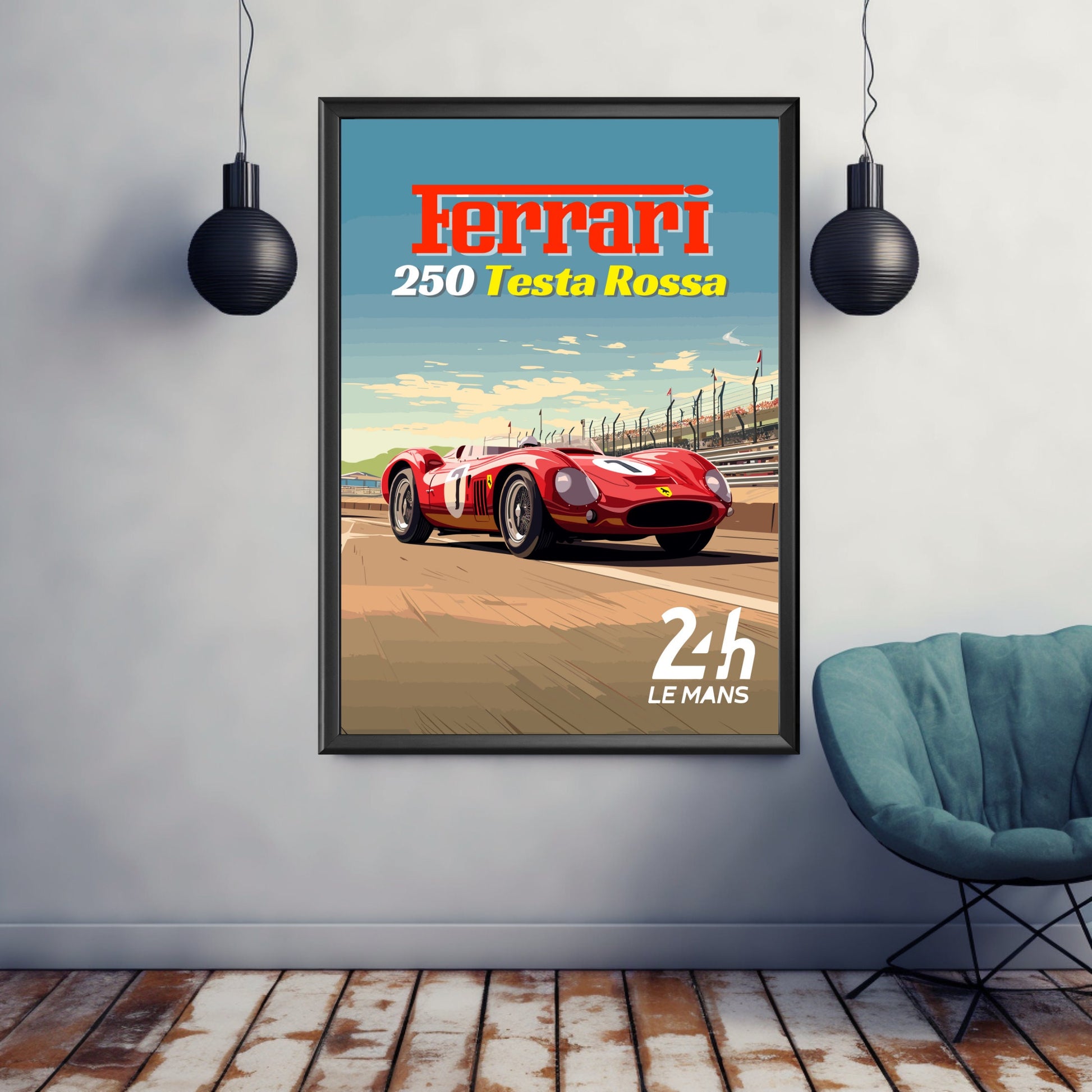 Plus qu'une simple affiche, l' affiche Ferrari 250 Testa Rossa Plus rend hommage à l'héritage de Ferrari au Mans. Cadeau idéal pour les collectionneurs de voitures, les passionnés de sport automobile et les passionnés d'histoire des courses classiques , elle transforme vos murs en vitrine de l'excellence automobile.