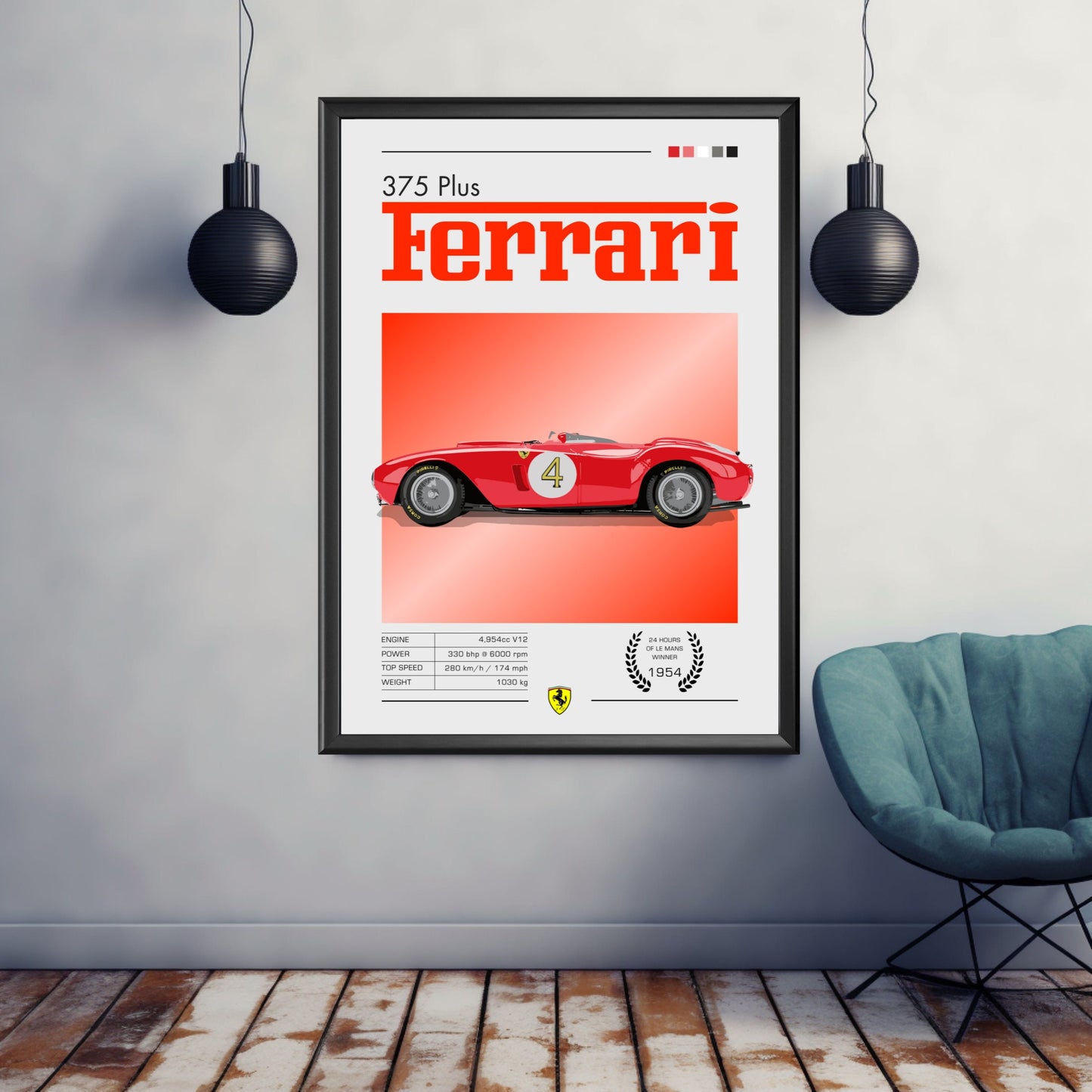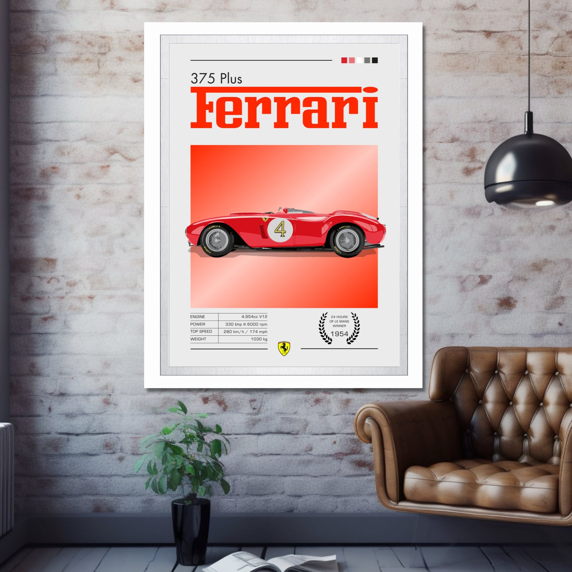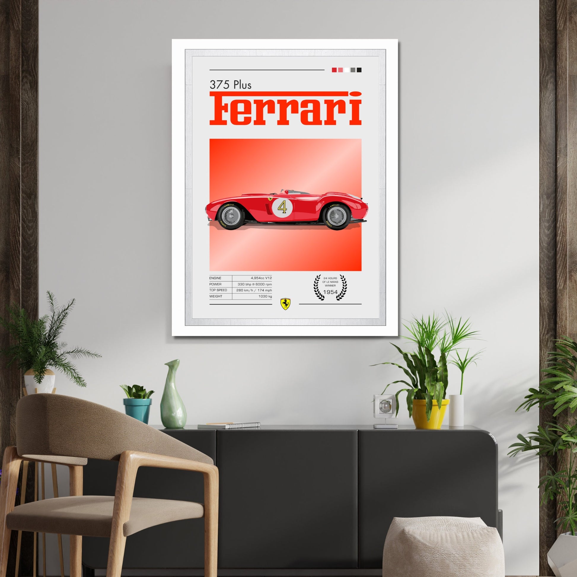 Plus qu'un simple objet décoratif, l' affiche Ferrari 375 Plus rend hommage à l'héritage sportif de Ferrari et à l'âge d'or de l'endurance. Cadeau idéal pour les amateurs de voitures anciennes, les passionnés de sport automobile et les collectionneurs de souvenirs Ferrari , elle transforme n'importe quel mur en une galerie d'histoire automobile.