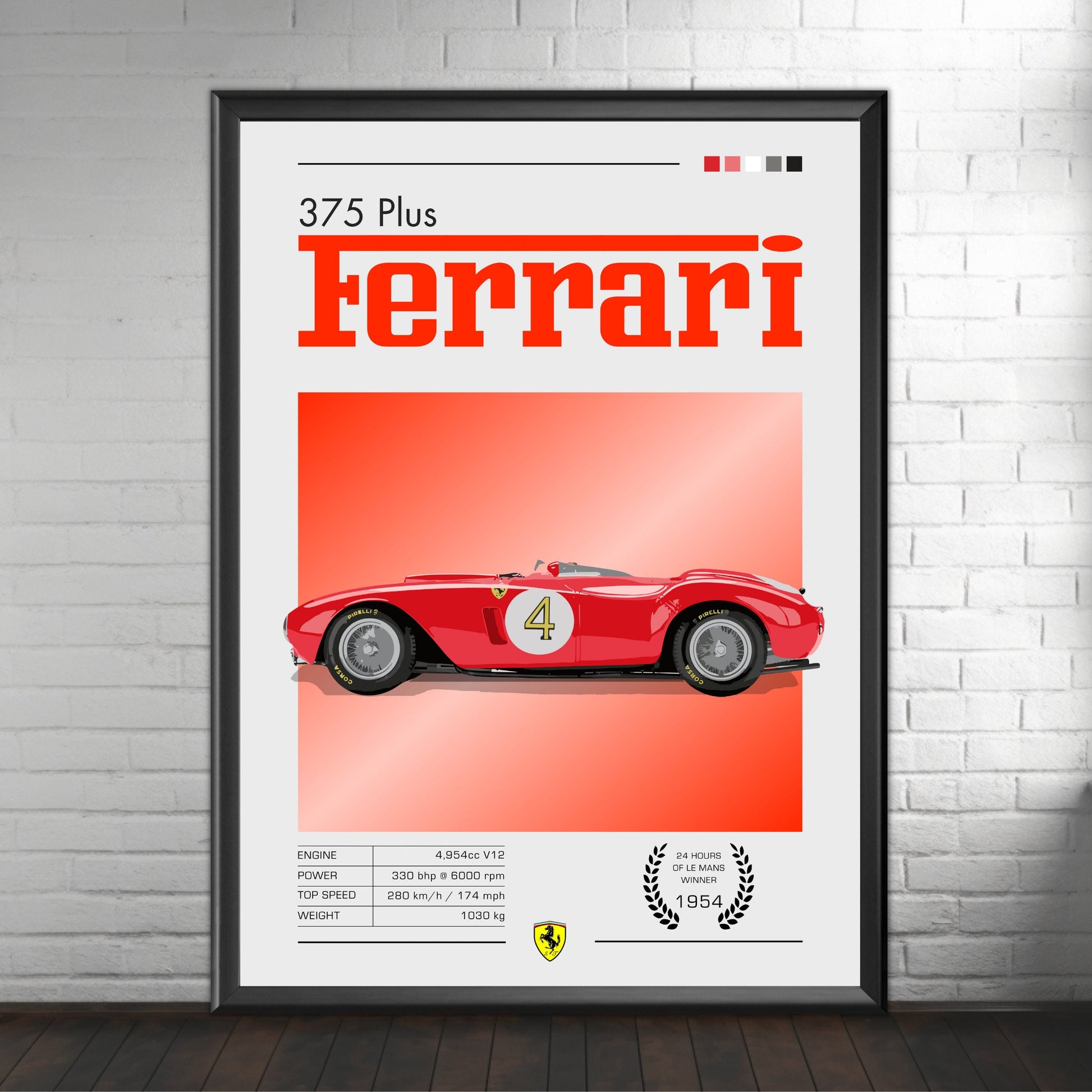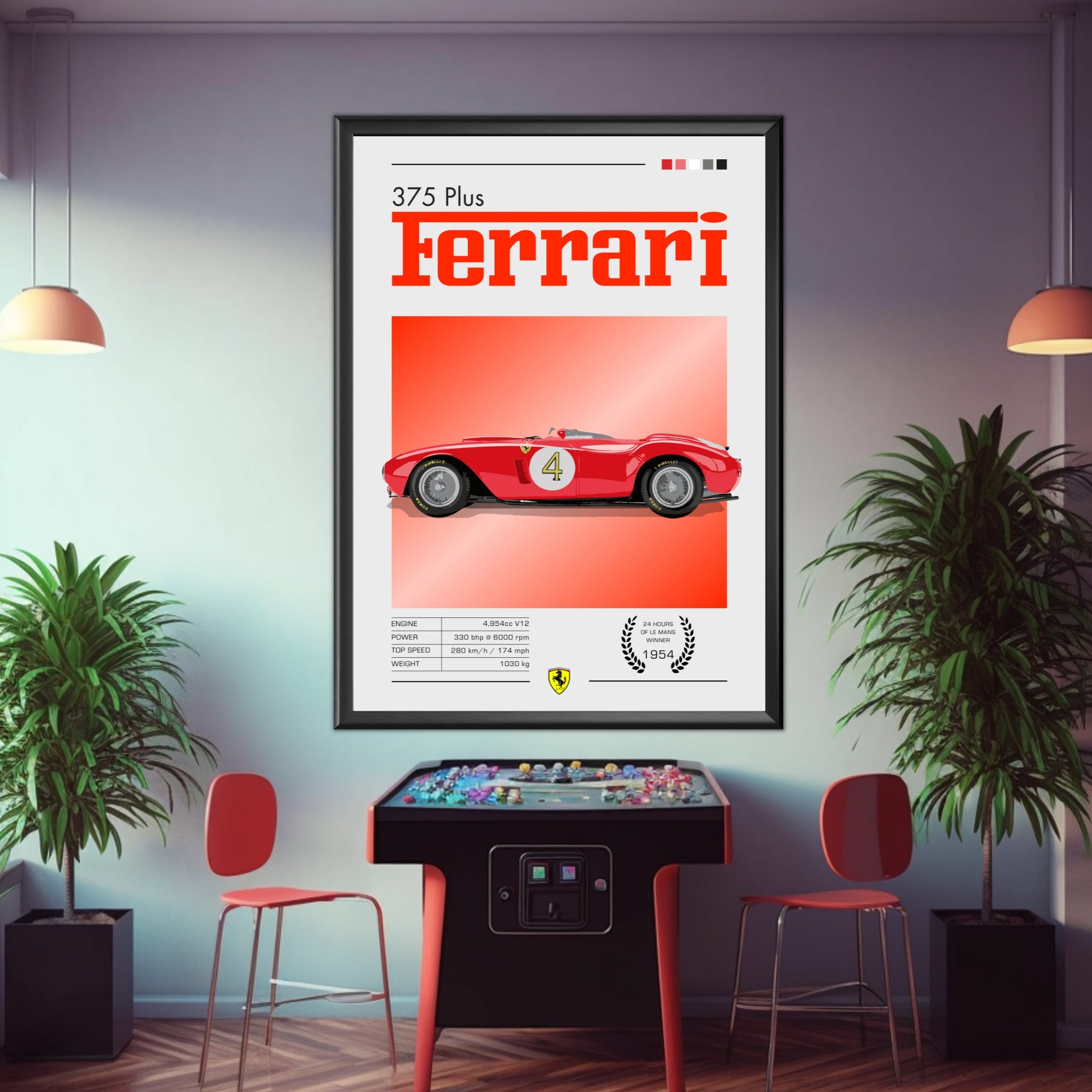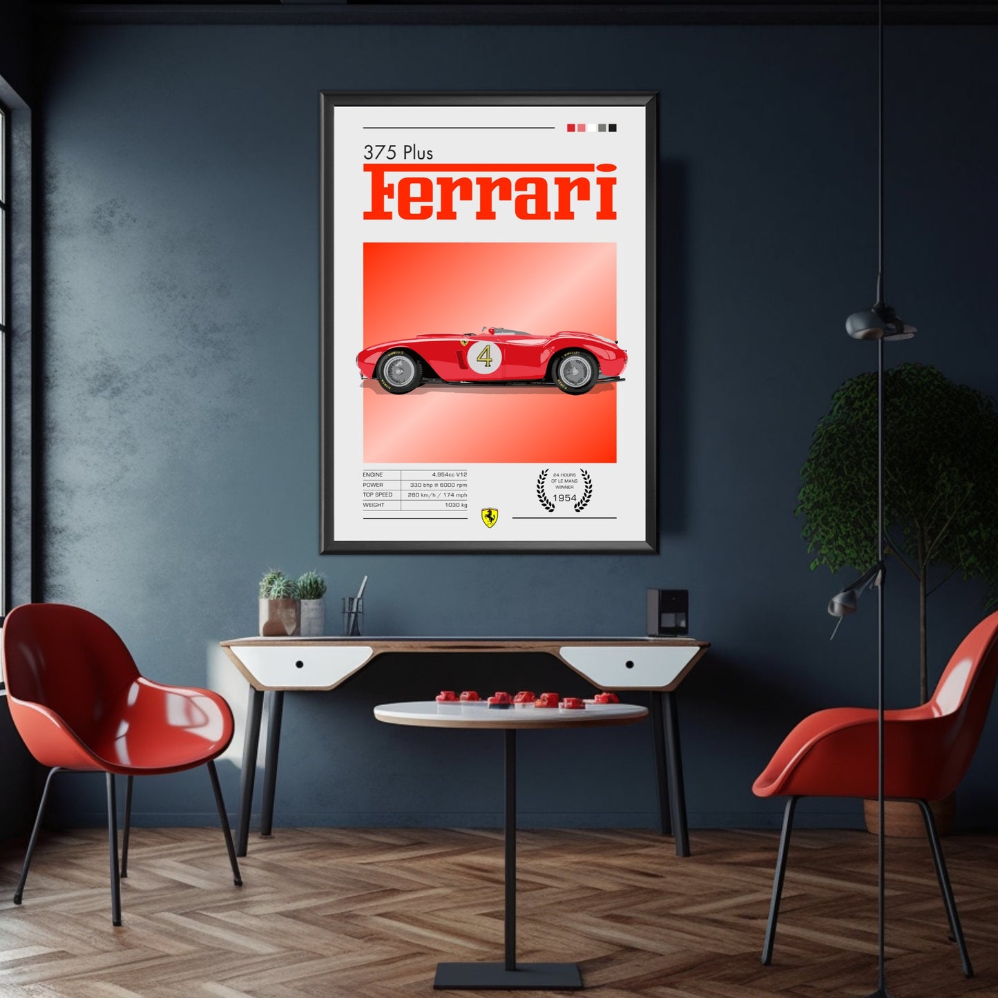 Plus qu'un simple objet décoratif, l' affiche Ferrari 375 Plus rend hommage à l'héritage sportif de Ferrari et à l'âge d'or de l'endurance. Cadeau idéal pour les amateurs de voitures anciennes, les passionnés de sport automobile et les collectionneurs de souvenirs Ferrari , elle transforme n'importe quel mur en une galerie d'histoire automobile.