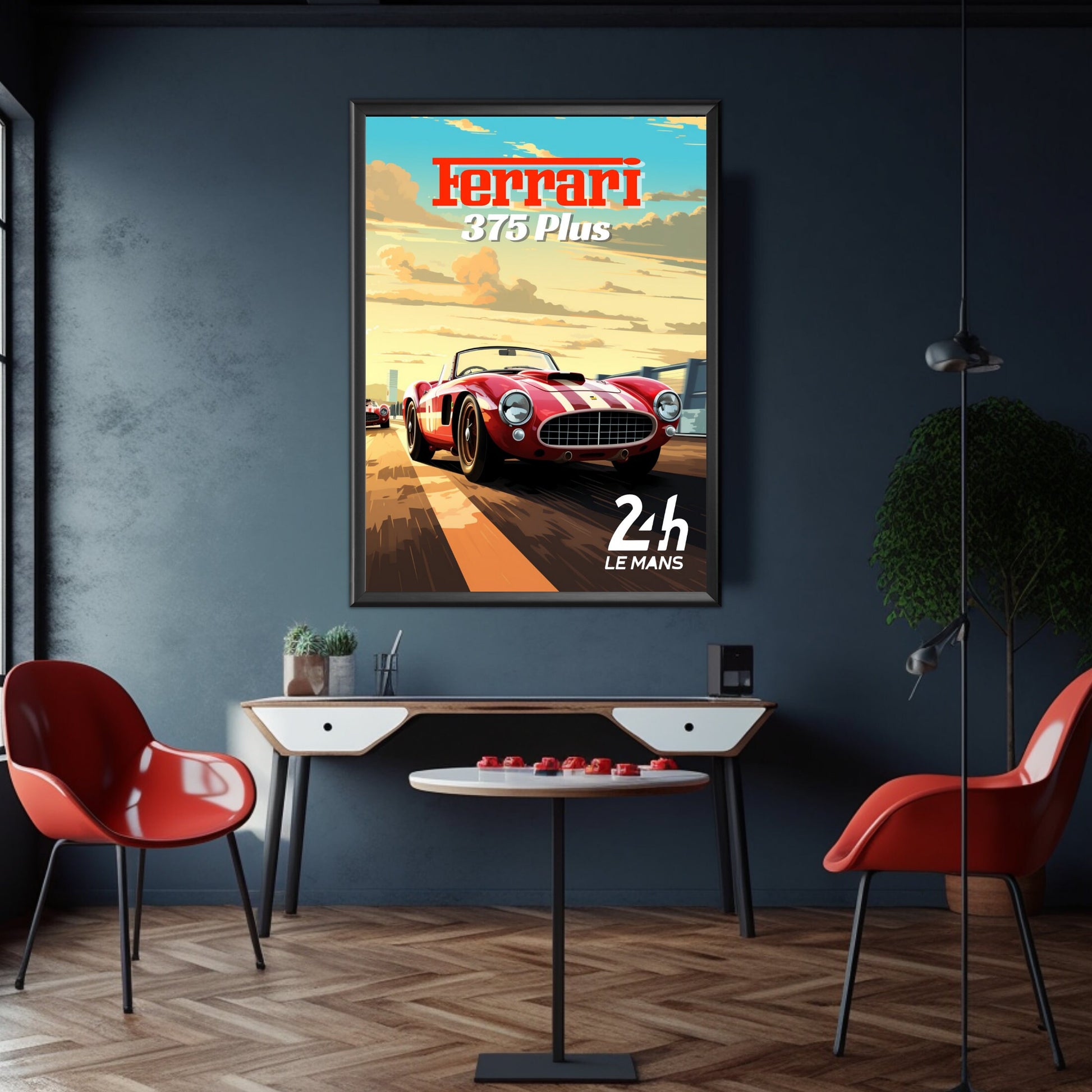 Plus qu'un simple objet décoratif, l' affiche Ferrari 375 Plus rend hommage à l'héritage de Ferrari en endurance. Cadeau idéal pour les collectionneurs de voitures, les passionnés de sport automobile et les passionnés d'histoire des courses classiques , elle transforme n'importe quel espace en une galerie d'art automobile.