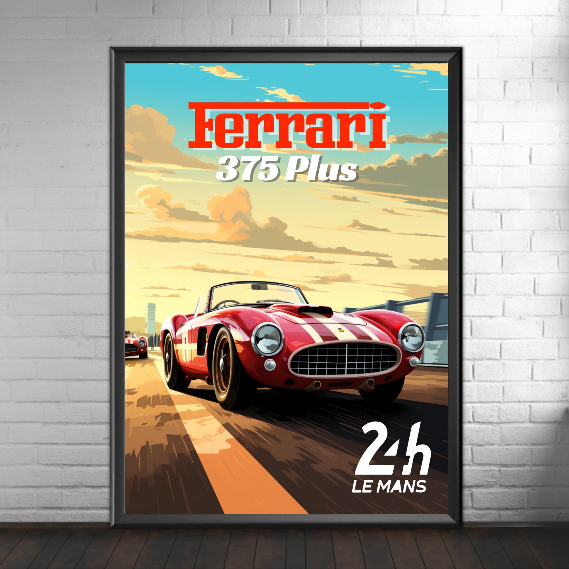 Célébrez l'âge d'or de Ferrari en endurance avec l' affiche Ferrari 375 Plus – Décoration murale Vainqueur des 24 Heures du Mans des années 1950. Connue pour ses victoires au Mans, la 375 Plus incarne le sport automobile classique, l'excellence de l'ingénierie italienne et l'héritage de la course . Idéale pour les passionnés de Ferrari, les passionnés de courses vintage et les collectionneurs d'art automobile historique .