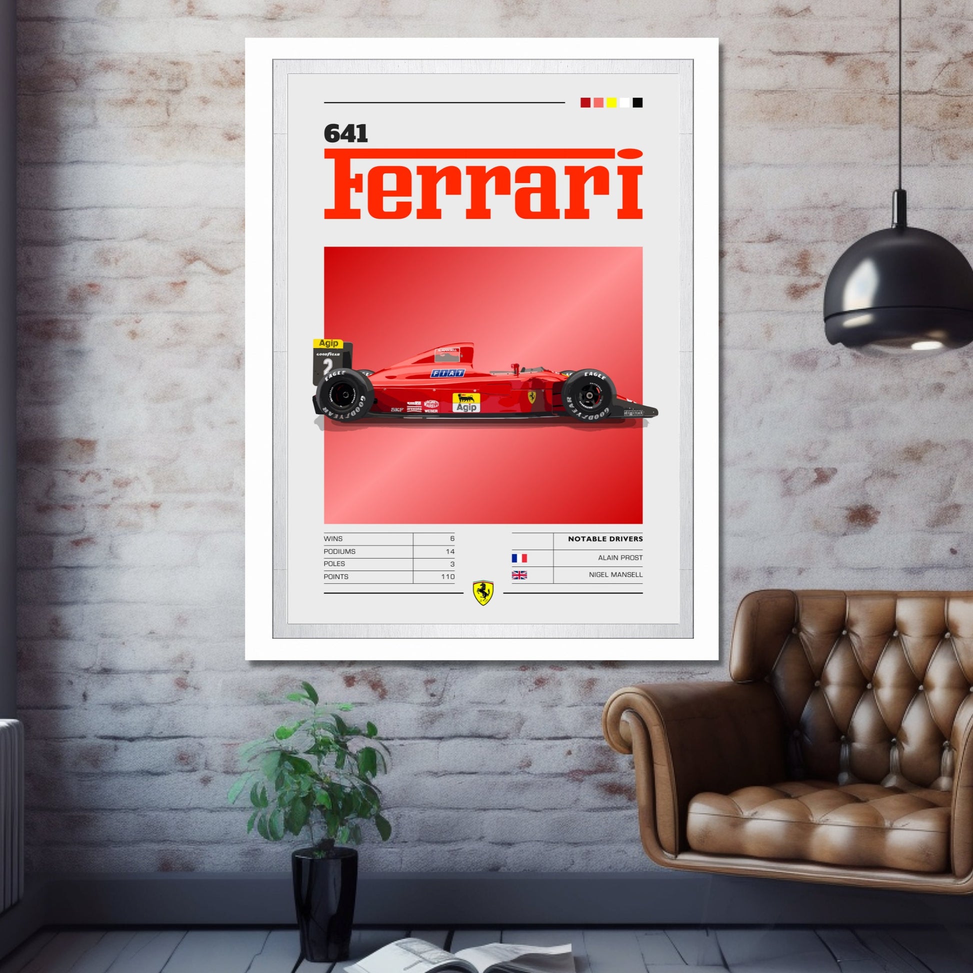 Affiche Ferrari 641 F1 – Décoration murale classique de Formule 1 des années 1990