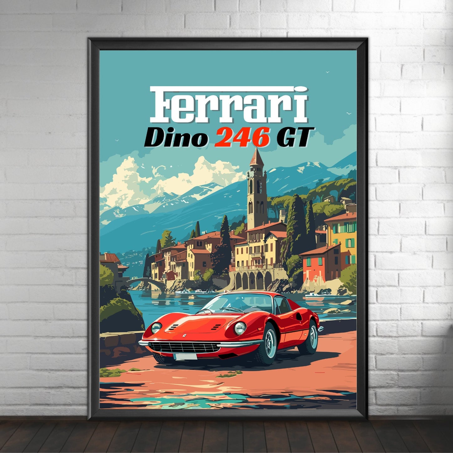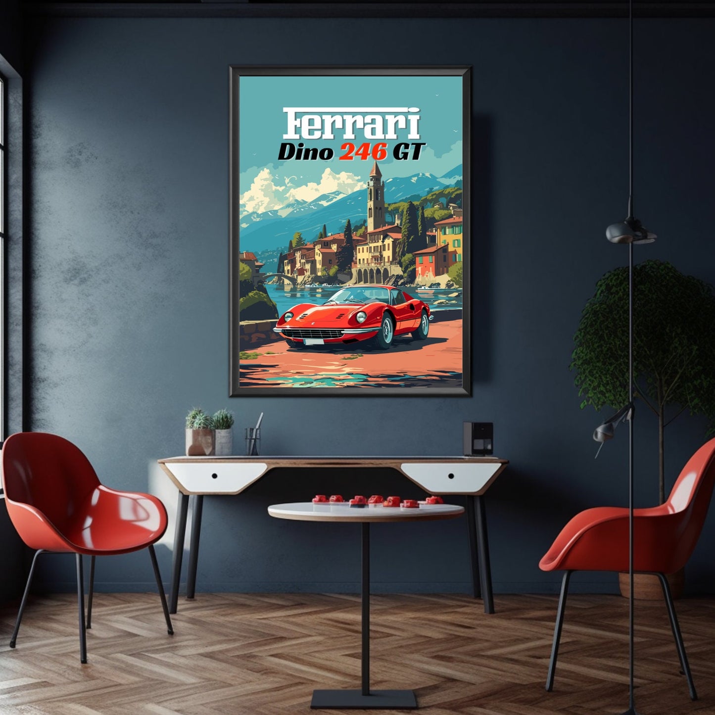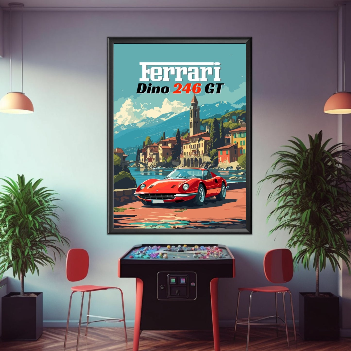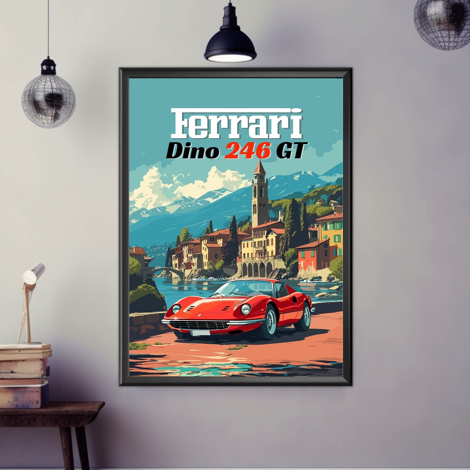 Affiche Ferrari Dino 246 GT – Décoration murale de voiture de sport italienne classique