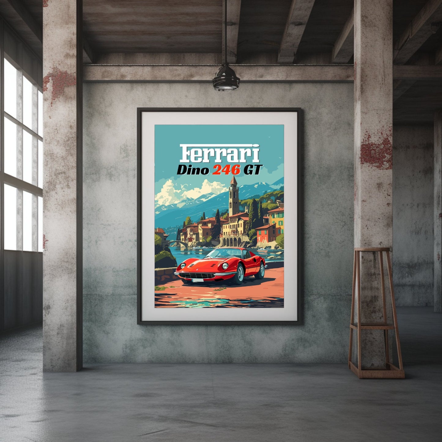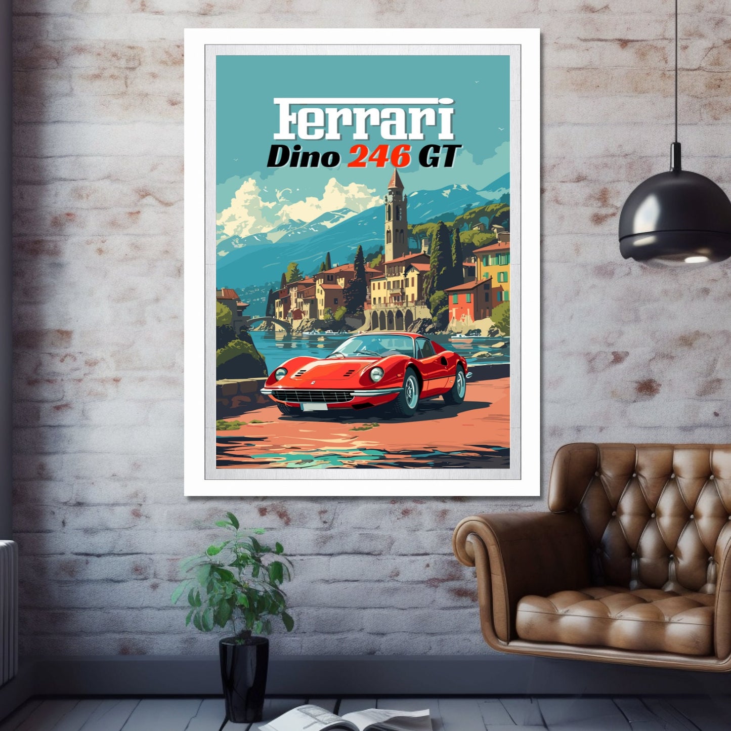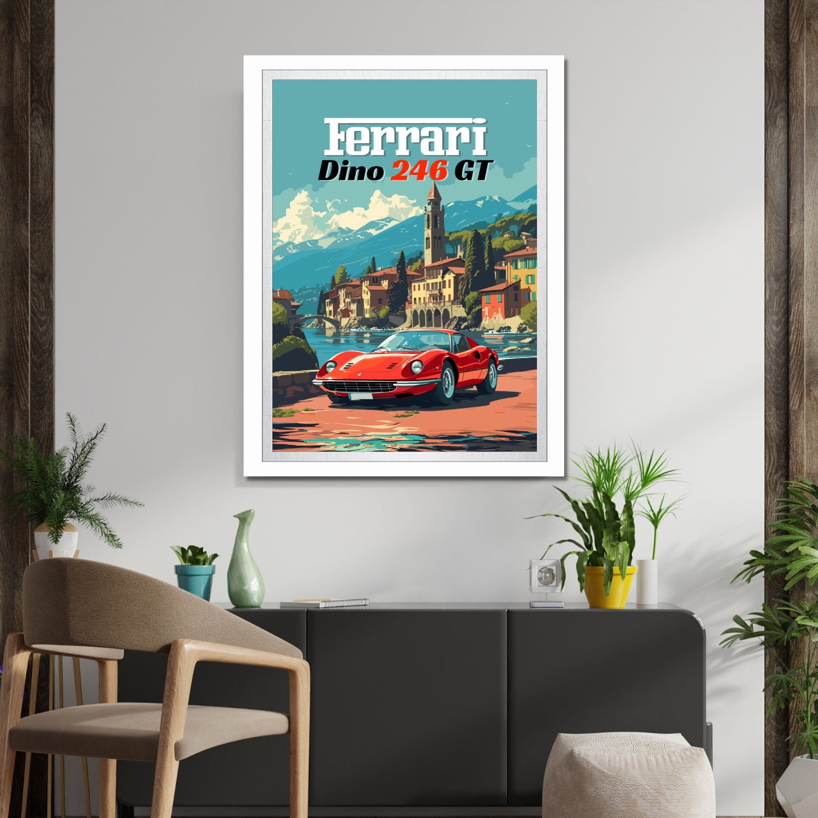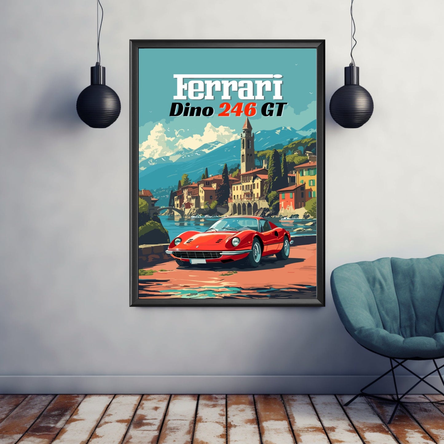 Affiche Ferrari Dino 246 GT – Décoration murale de voiture de sport italienne classique