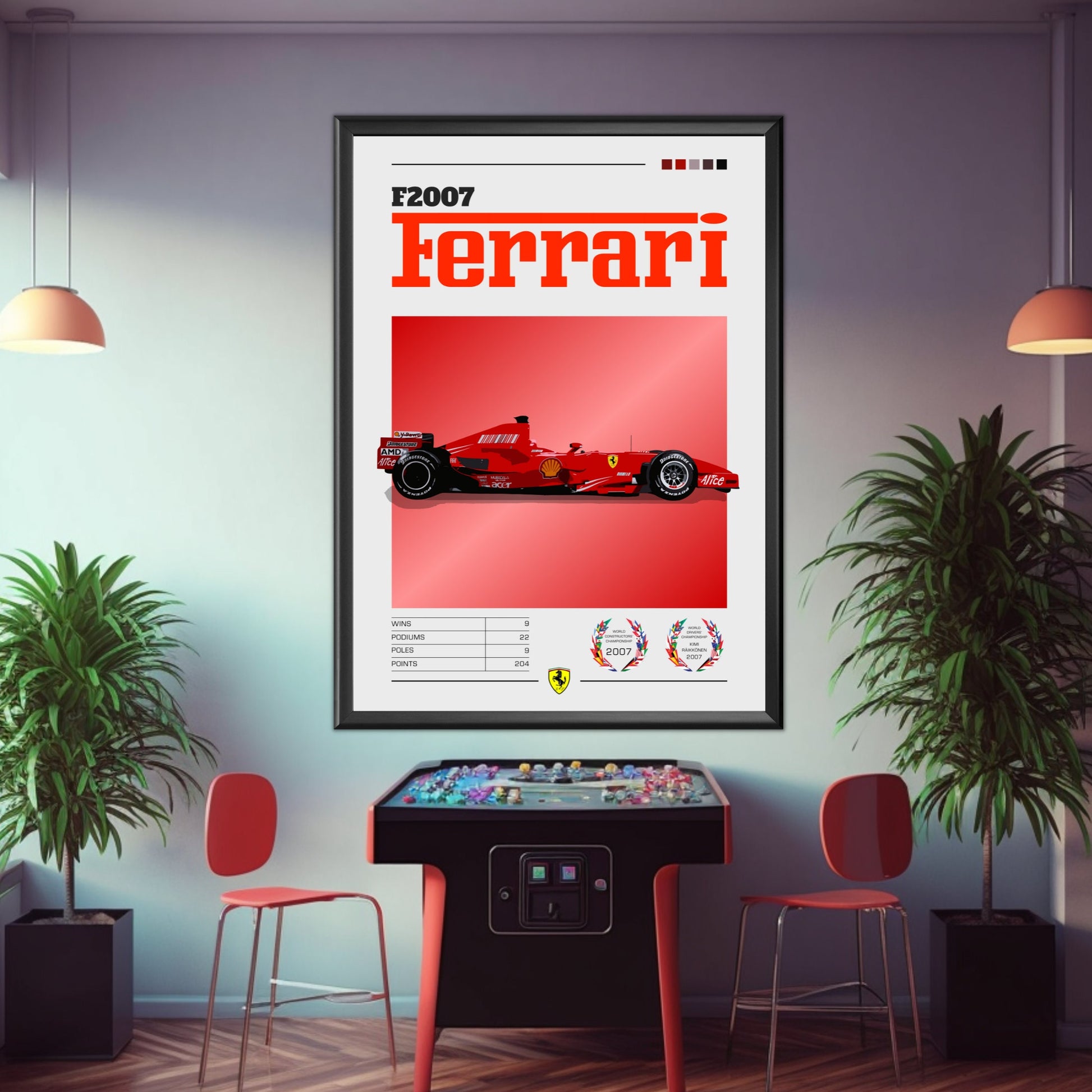 Affiche Ferrari F2007 – Décoration murale de la voiture championne de Formule 1 2007
