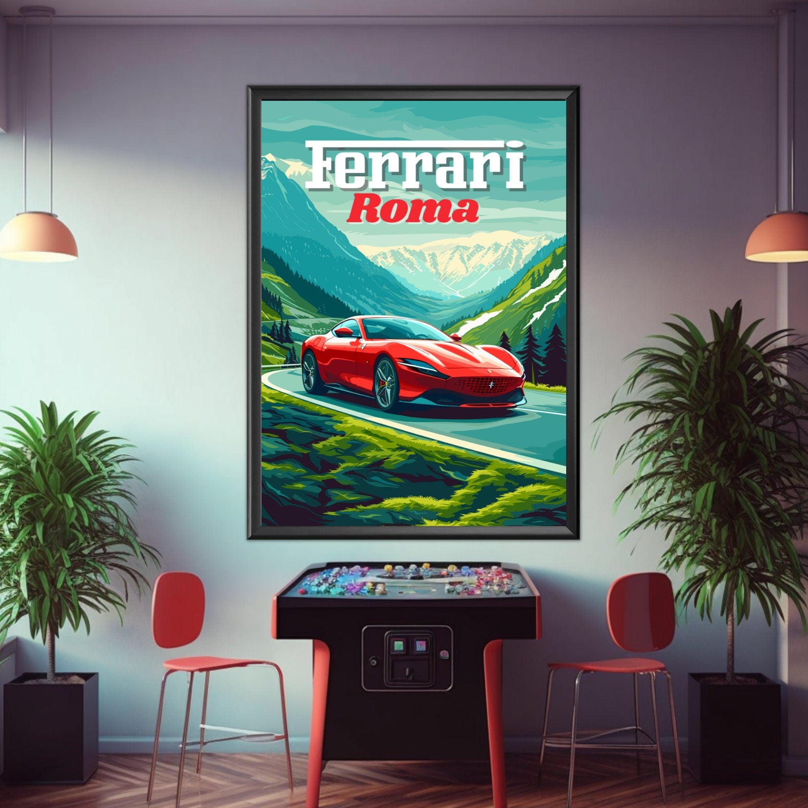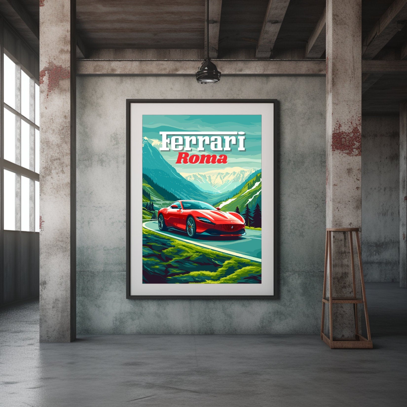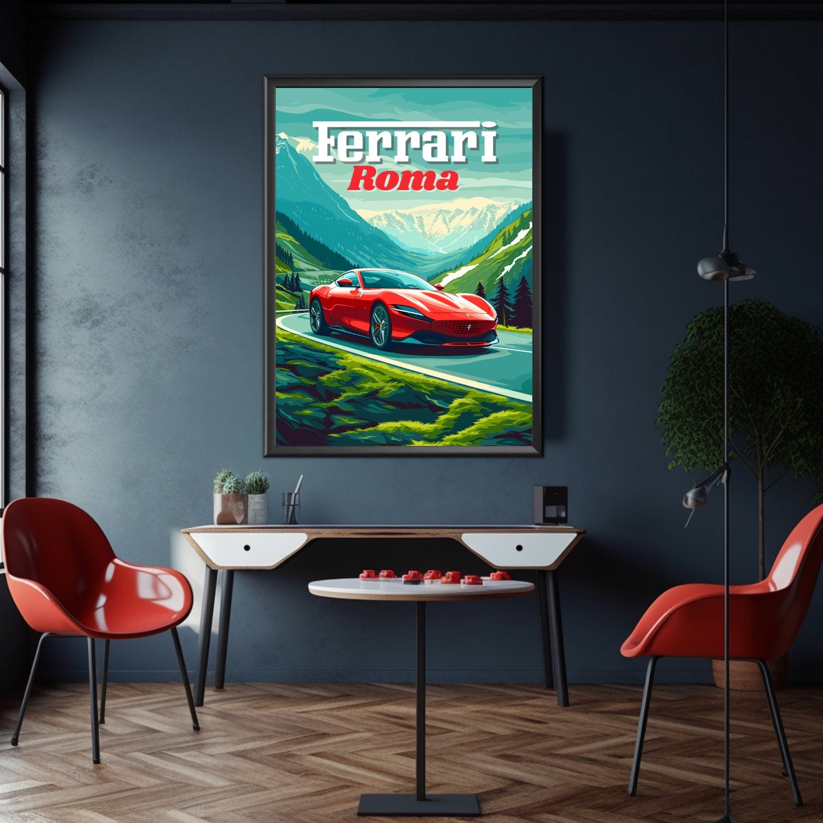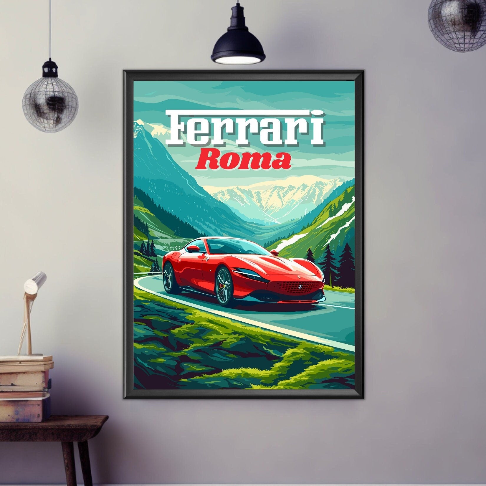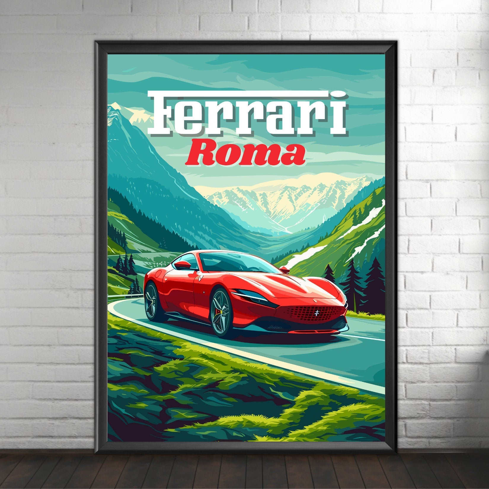 Affiche Ferrari Roma – Décoration murale de voiture de sport de luxe italienne
