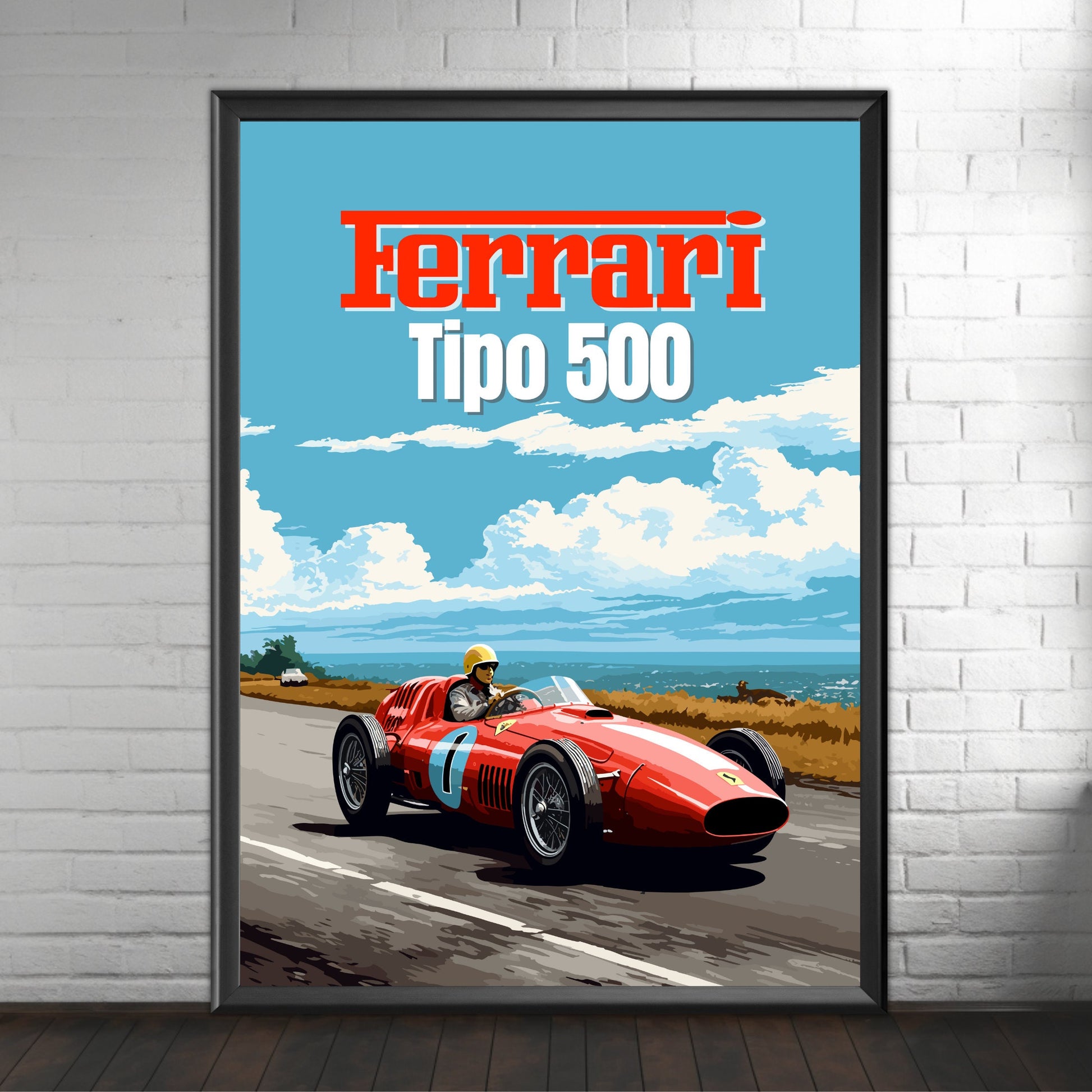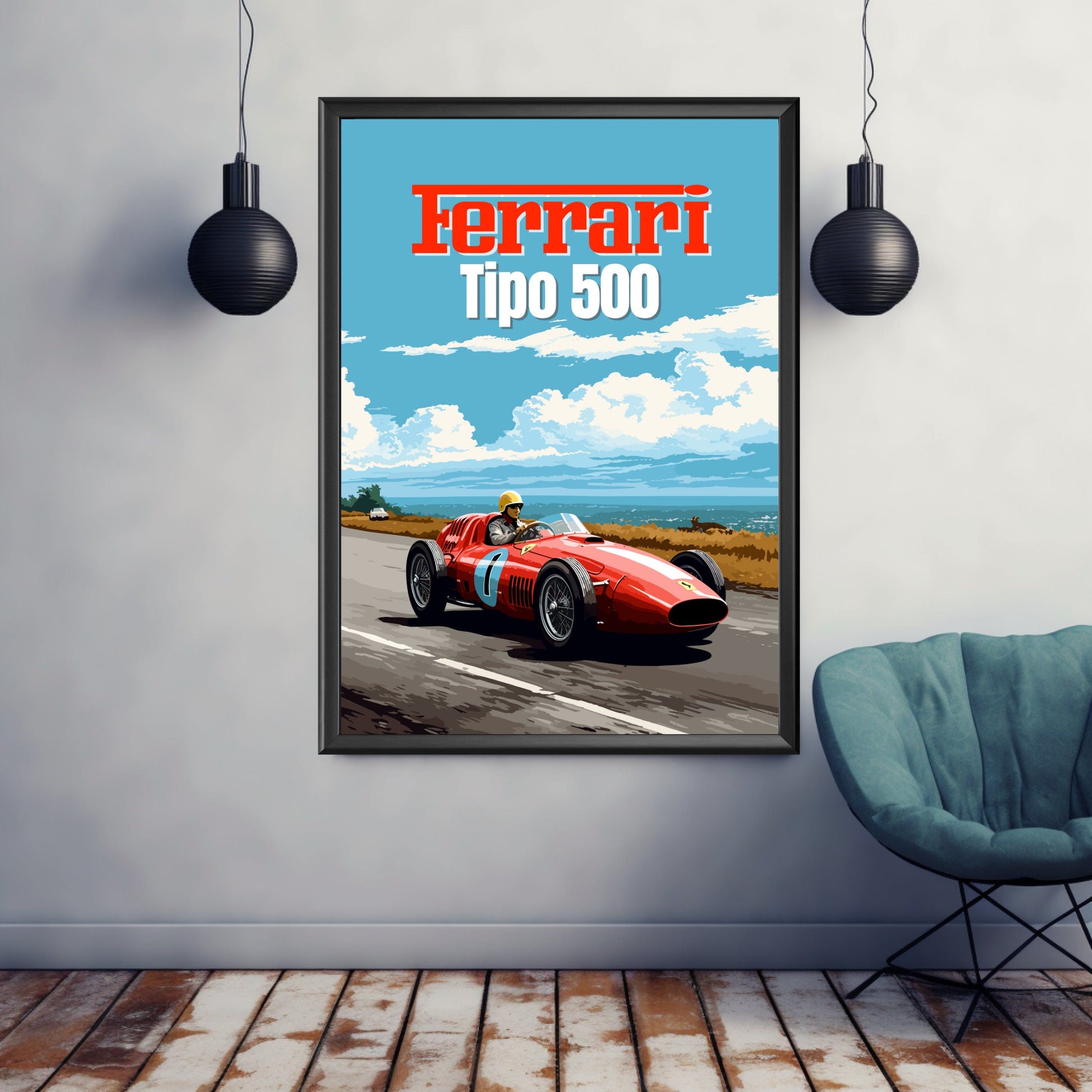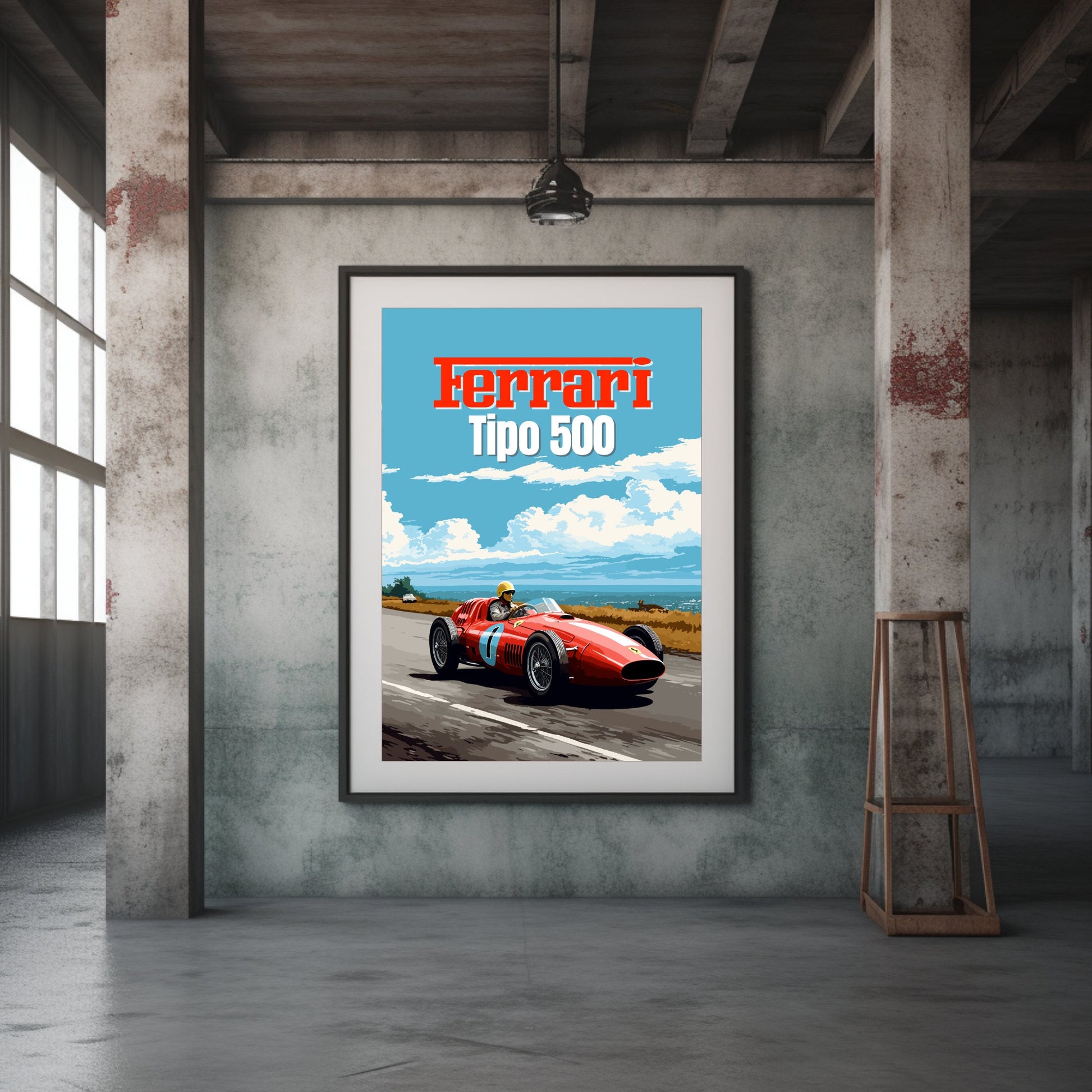 Affiche Ferrari Tipo 500 F1 – Art automobile du championnat d'Ascari