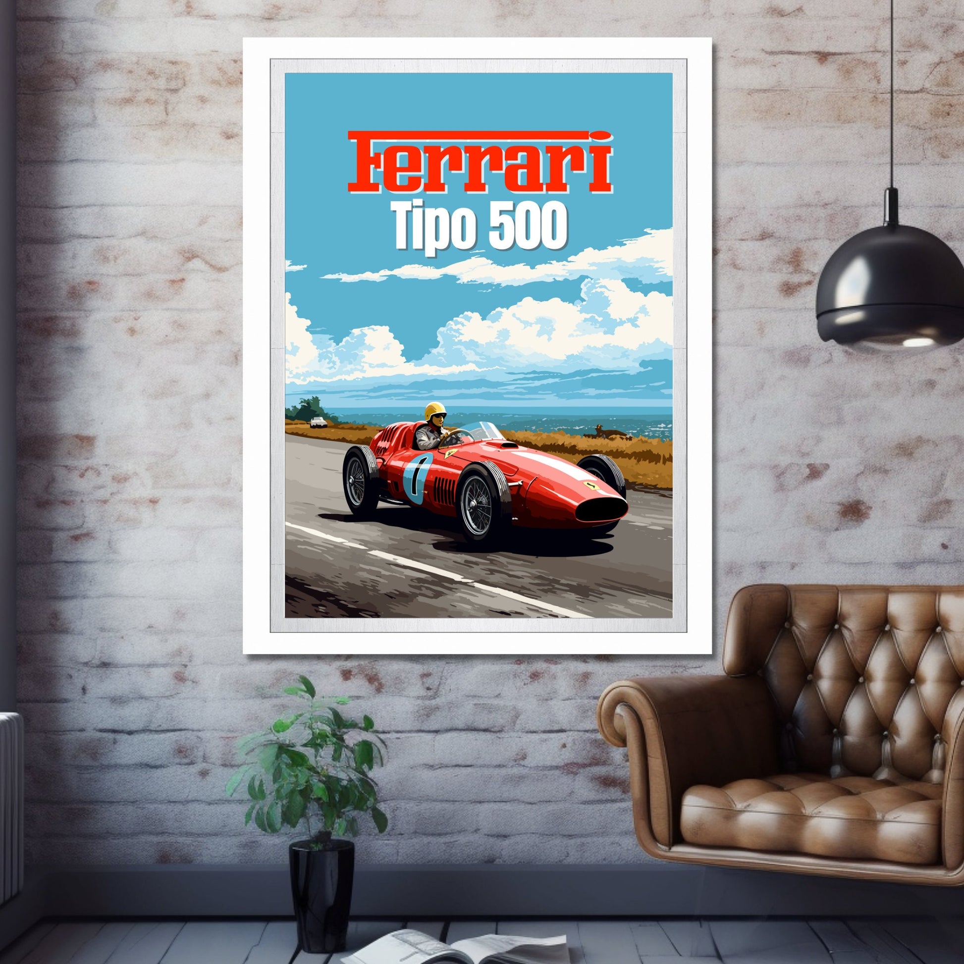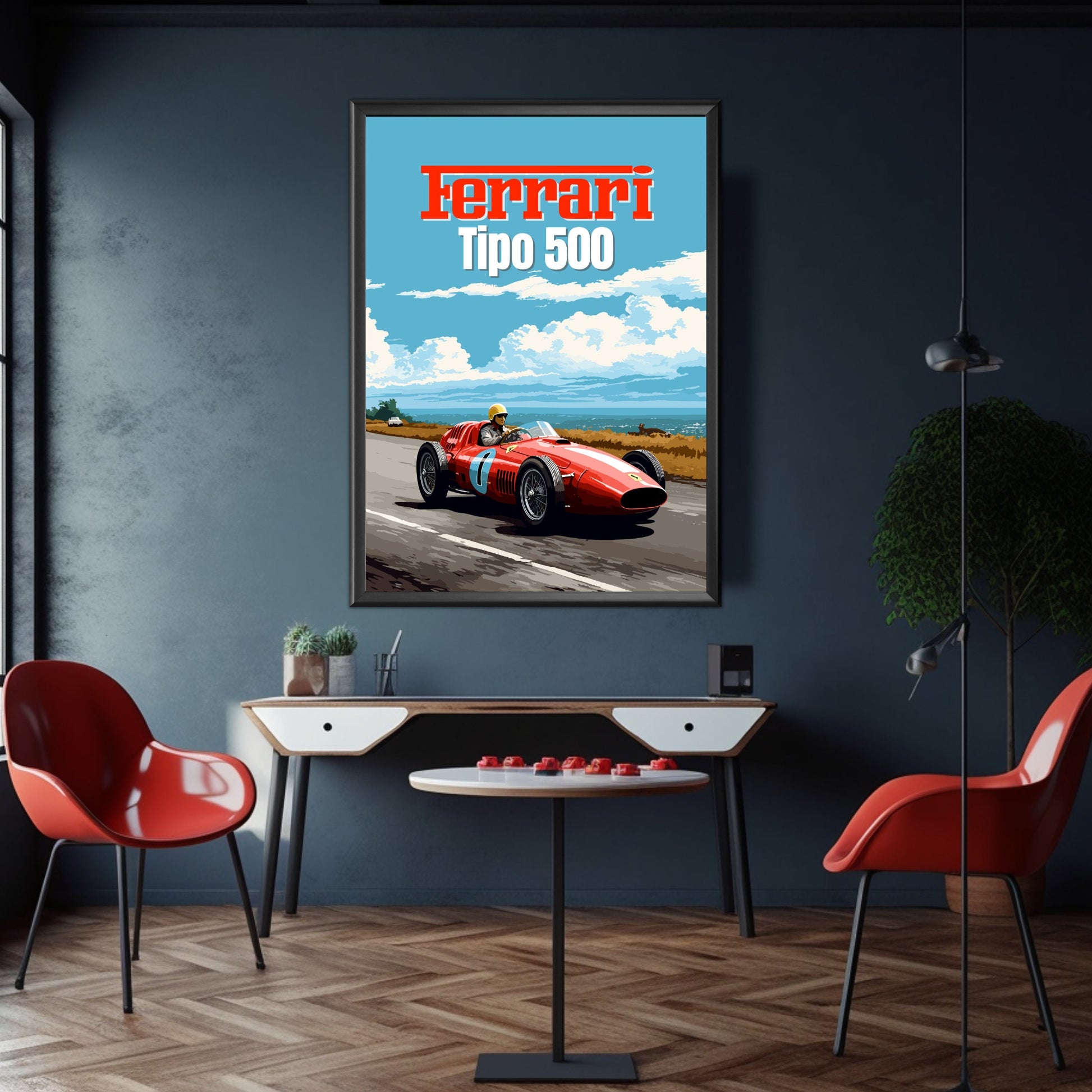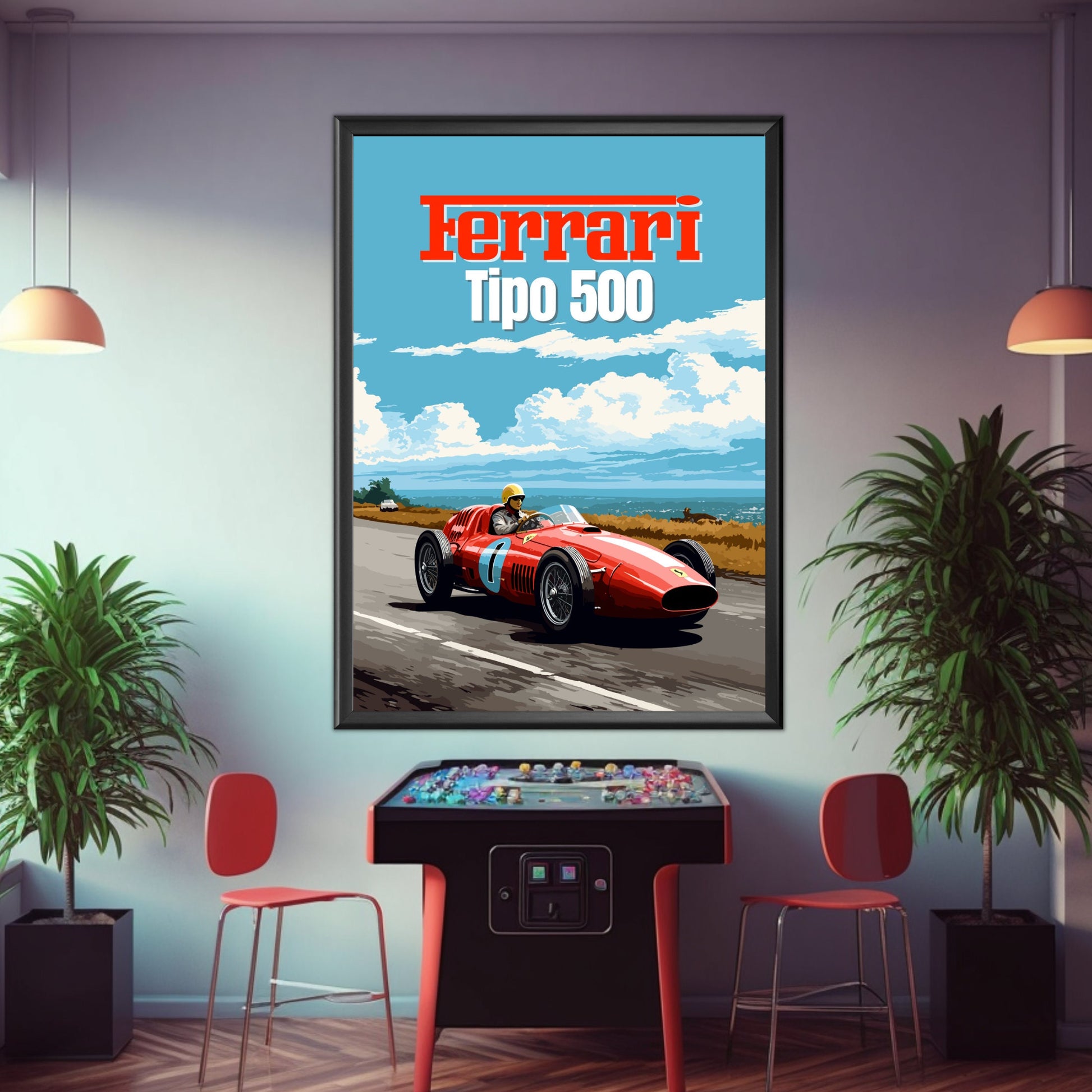 Affiche Ferrari Tipo 500 F1 – Art automobile du championnat d'Ascari