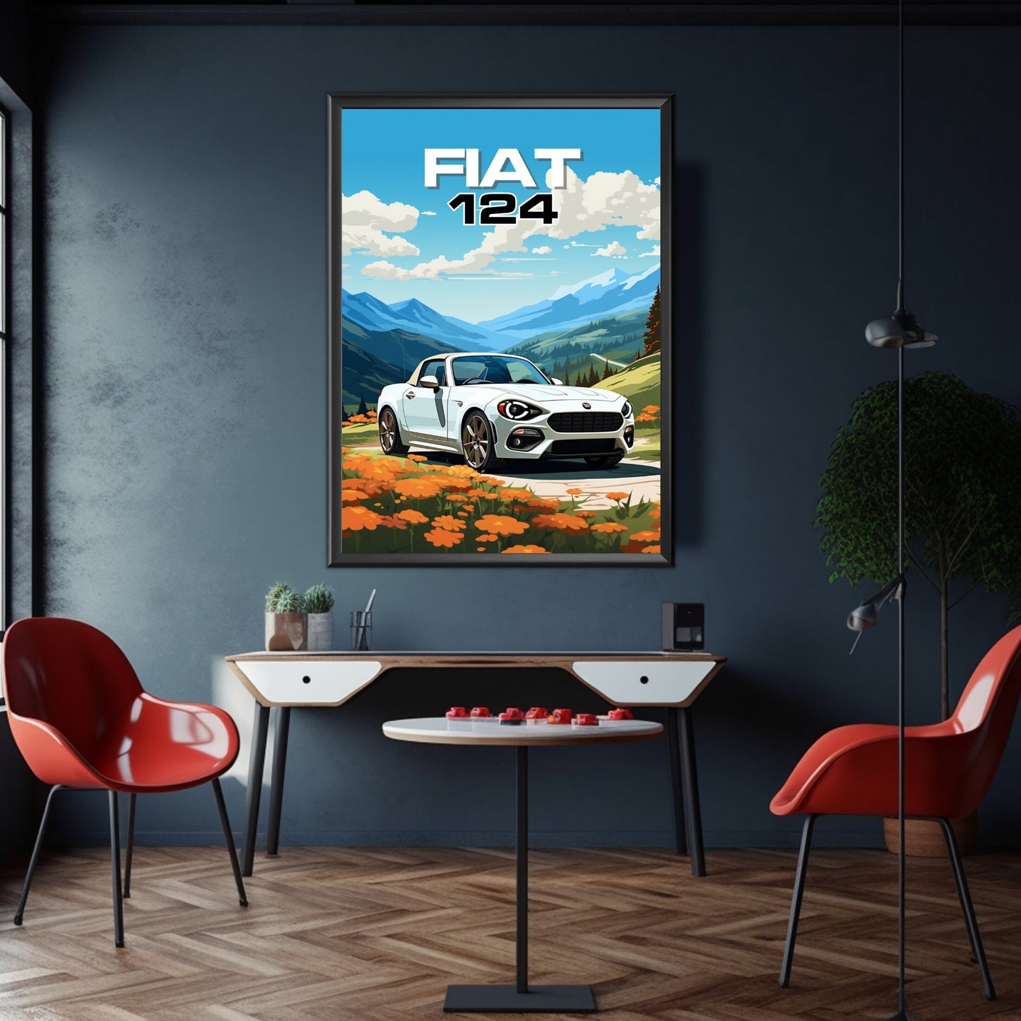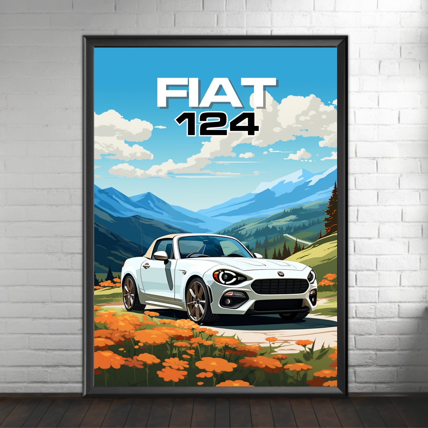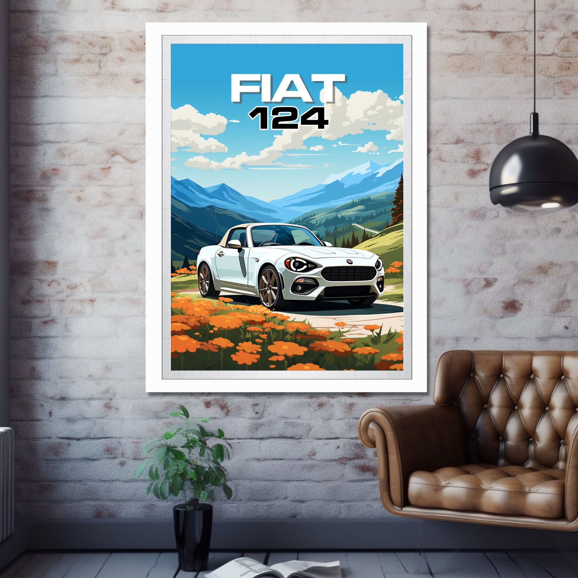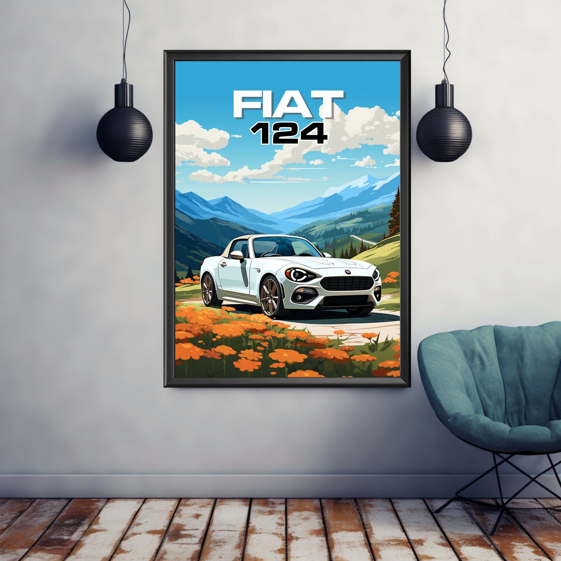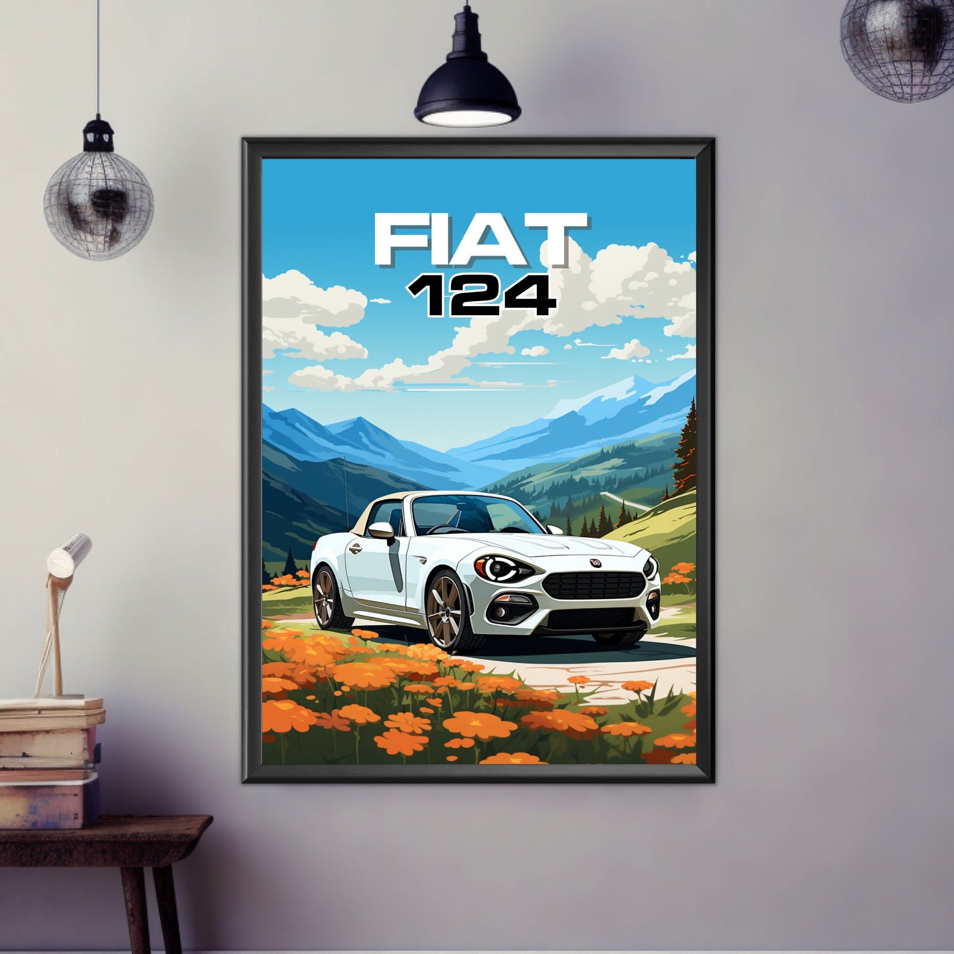 Affiche Fiat 124 – Décoration murale vintage de voiture de sport italienne