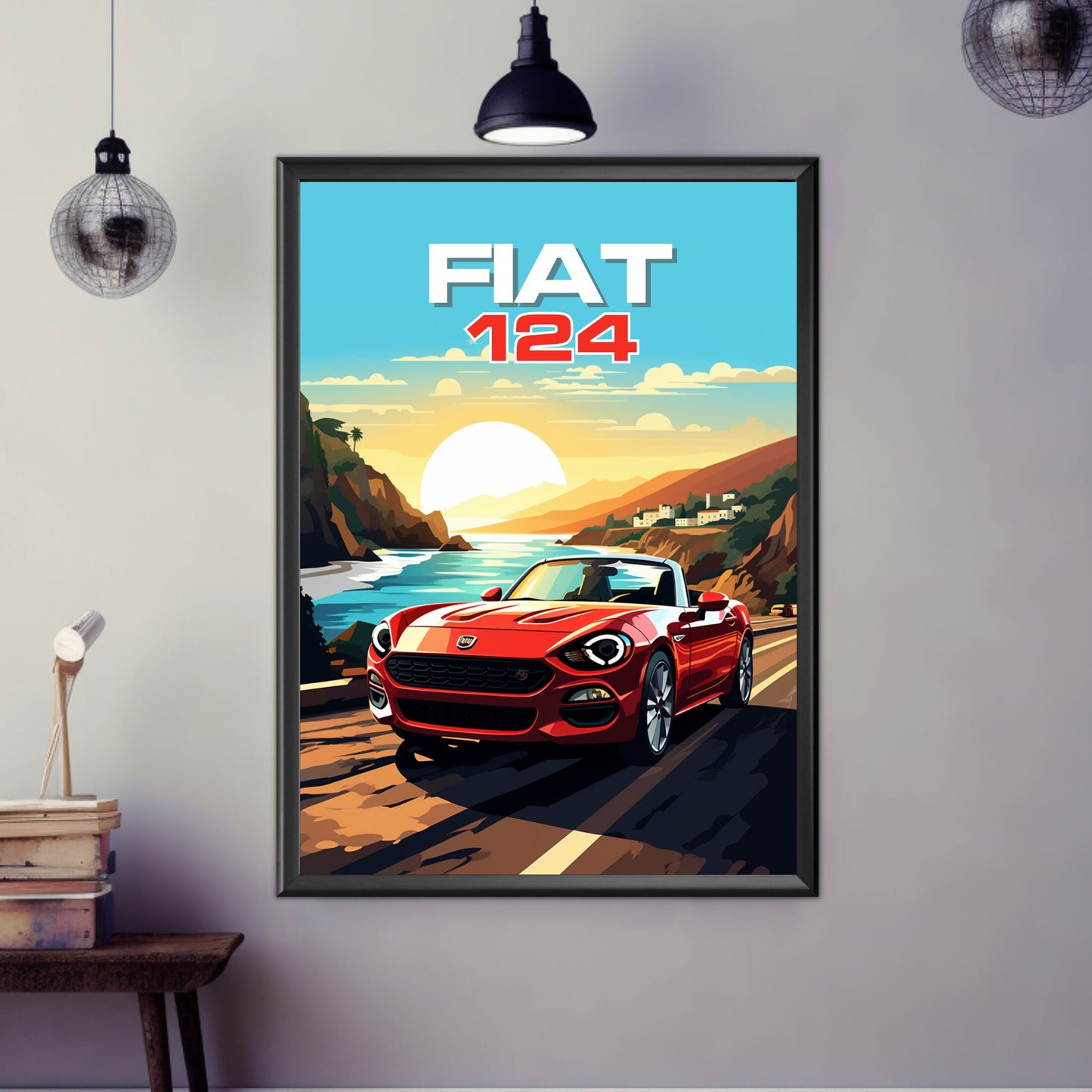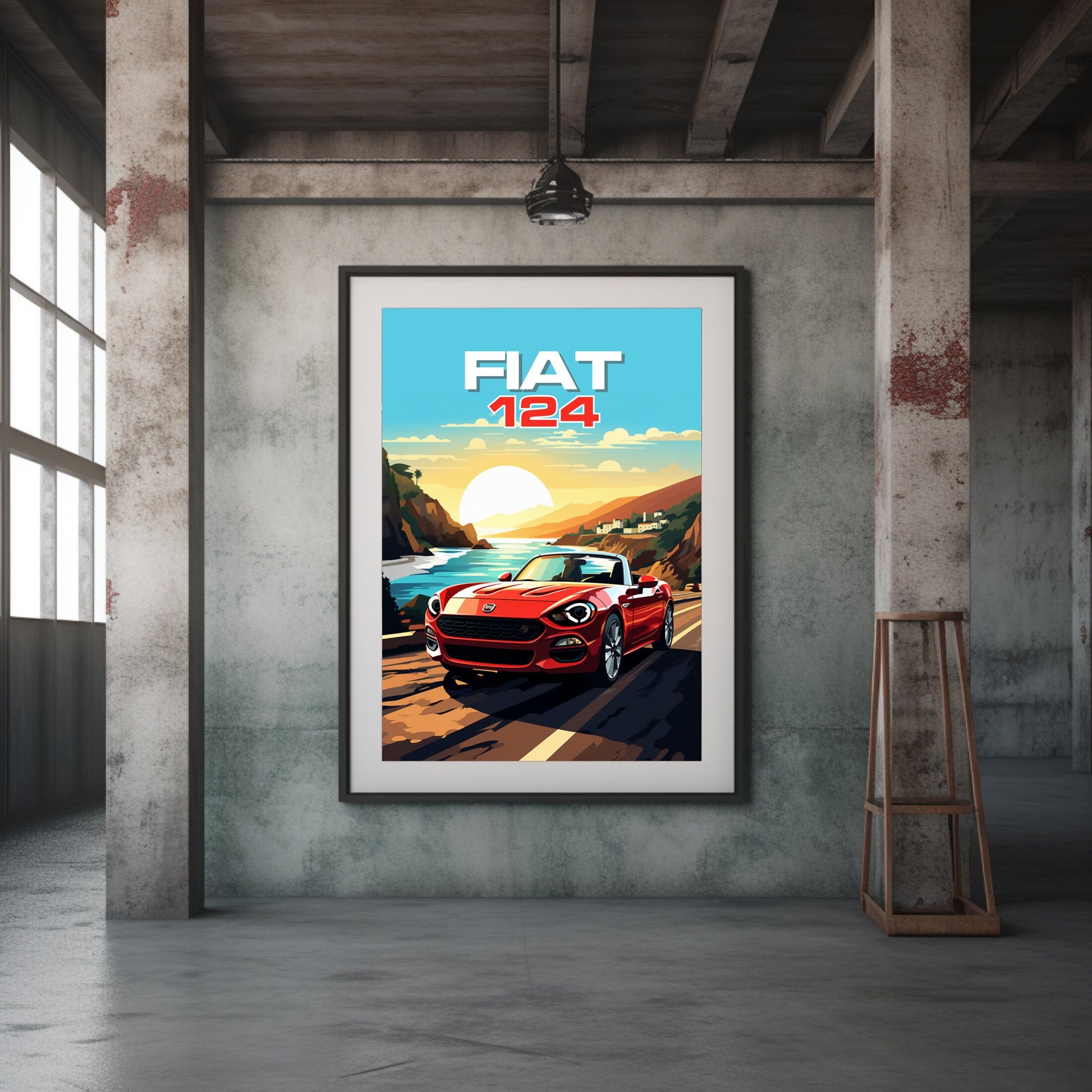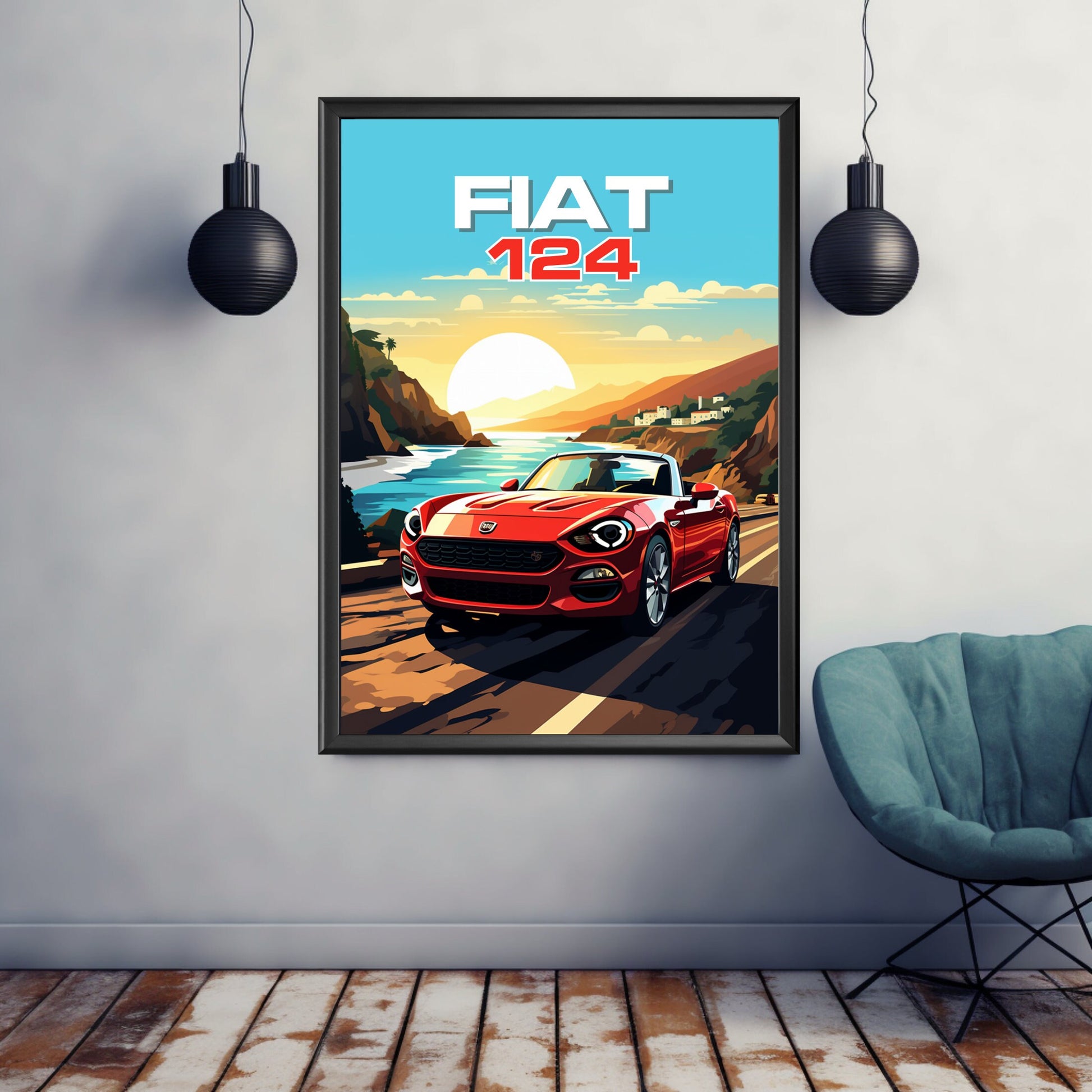 Affiche Fiat 124 – Décoration murale de voiture italienne classique
