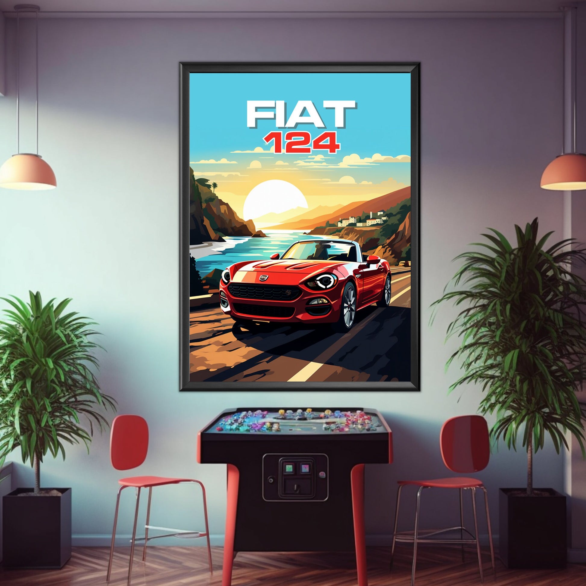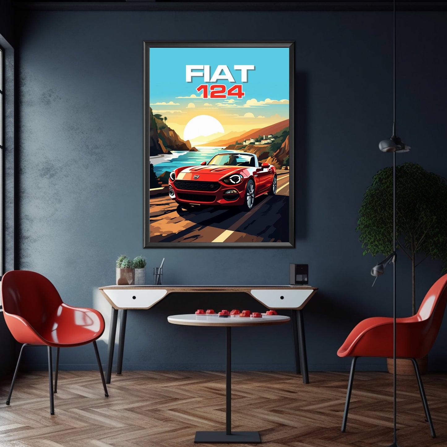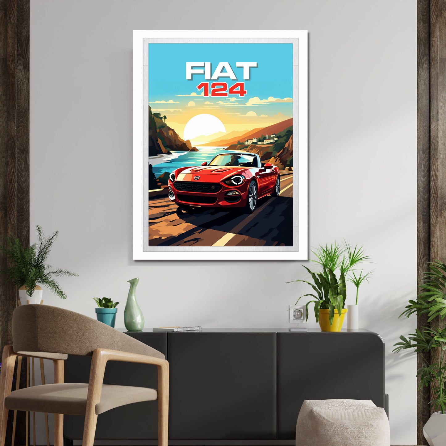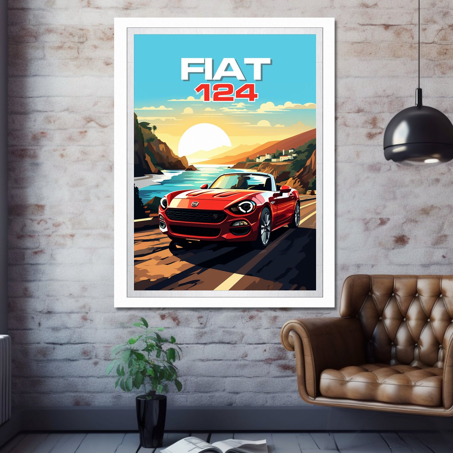 Affiche Fiat 124 – Décoration murale de voiture italienne classique