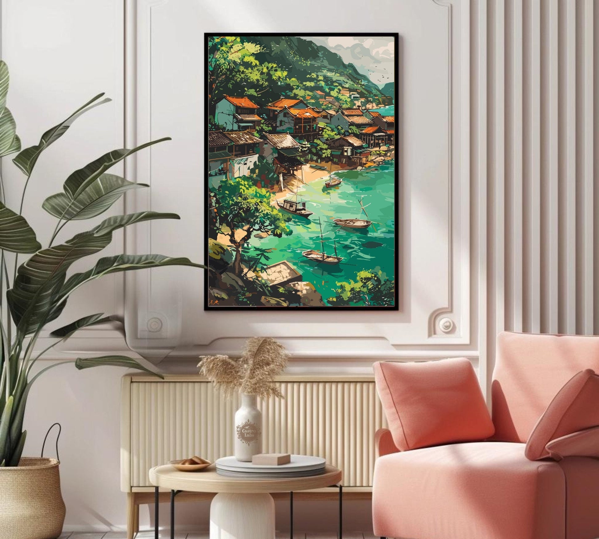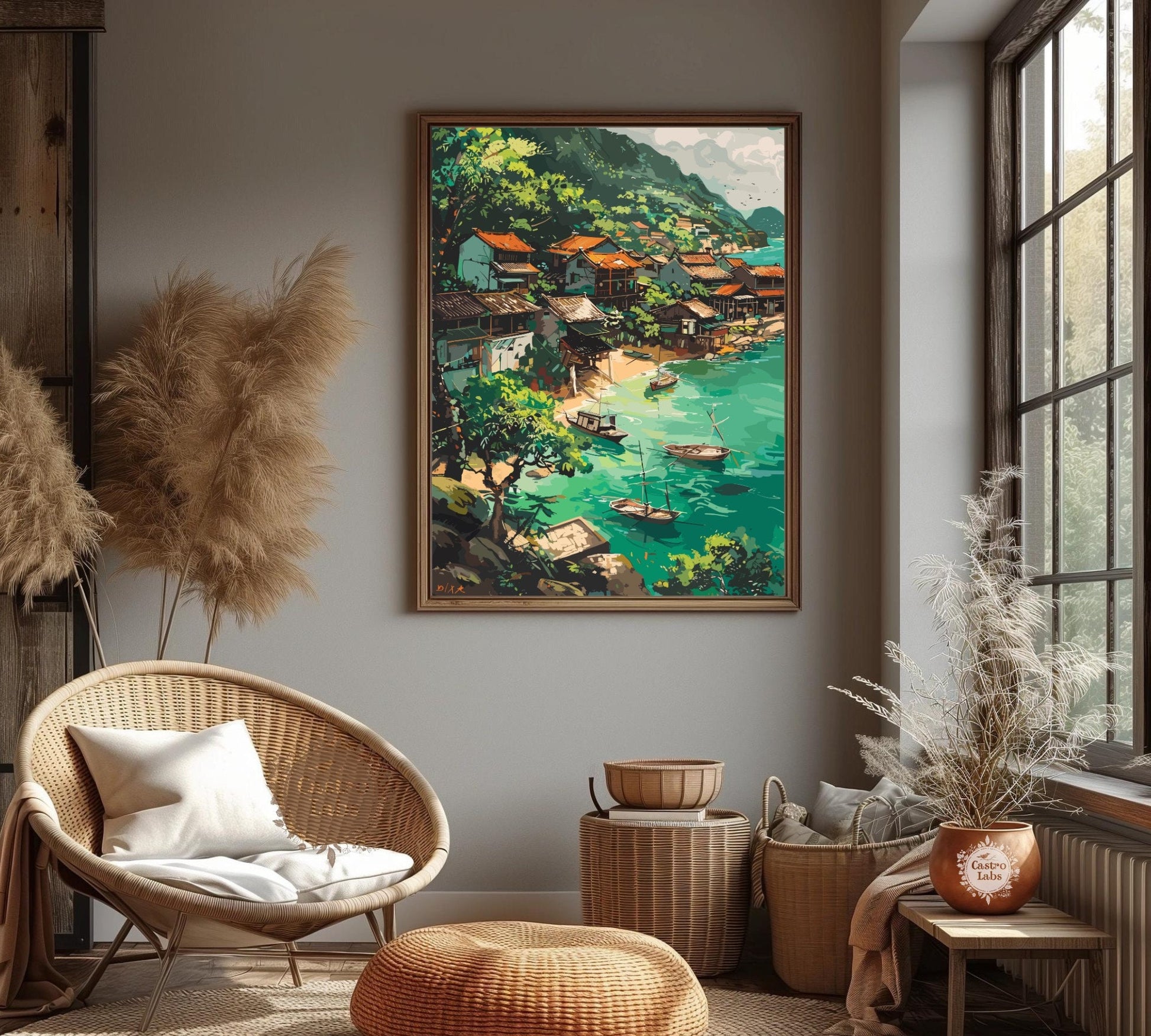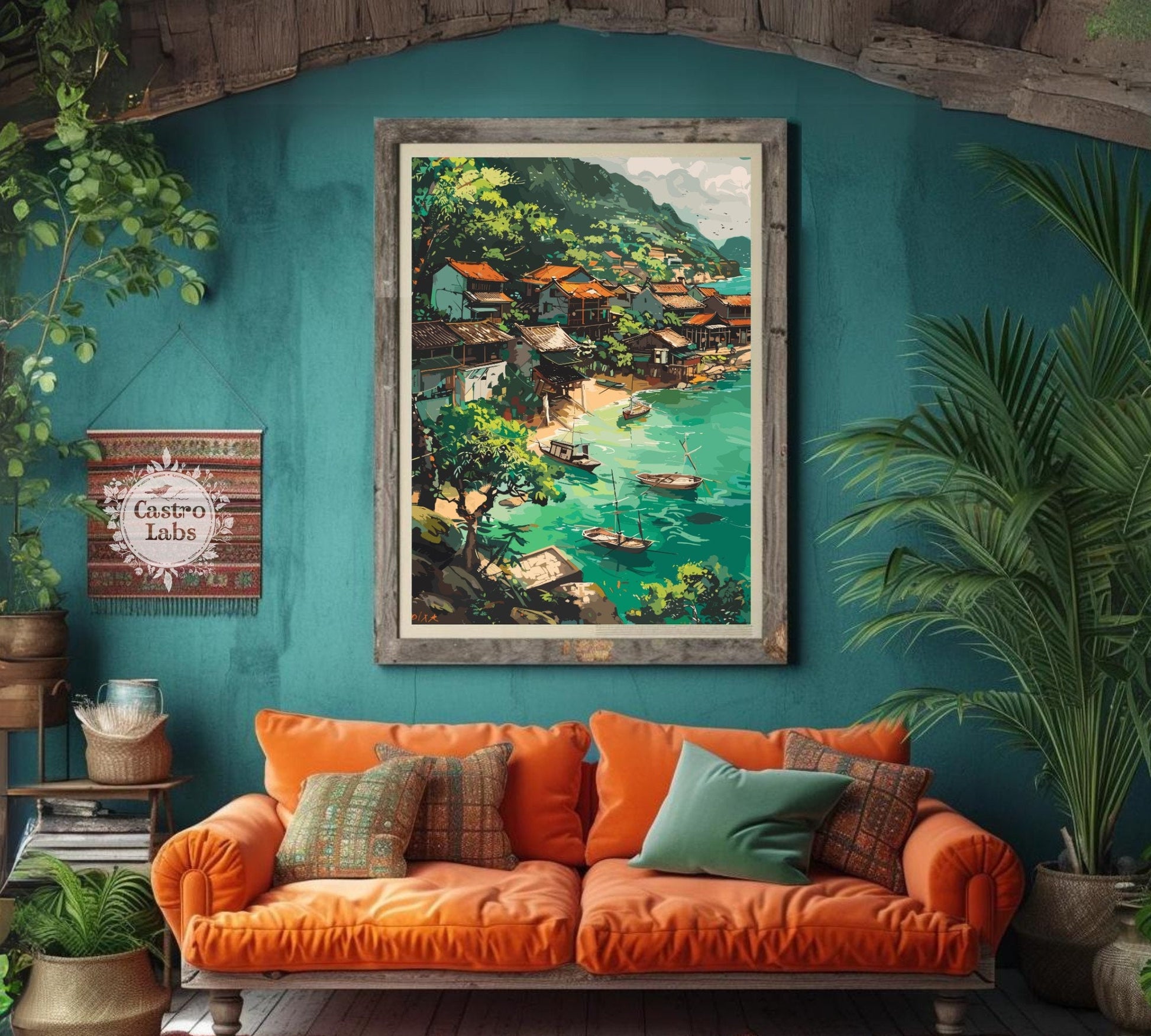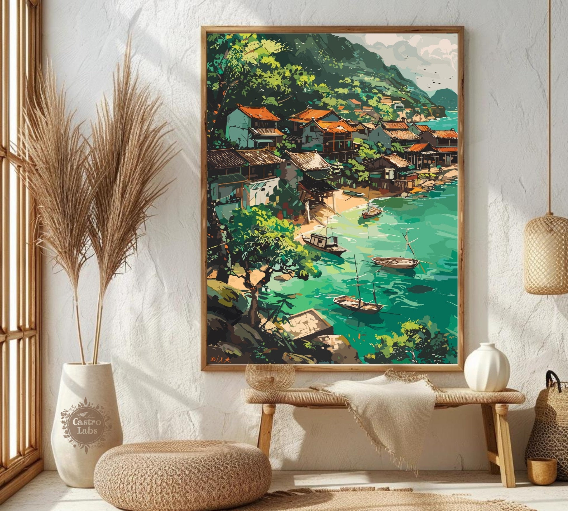 Imprimée sur des matériaux de première qualité, l' affiche du Village de pêcheurs du Vietnam présente des détails vibrants et des tons chaleureux qui soulignent la beauté de la vie en bord de mer. Idéale pour les salons, les chambres, les bureaux ou les intérieurs culturels , cette affiche s'intègre parfaitement aux décorations bohèmes, rustiques et inspirées du voyage .