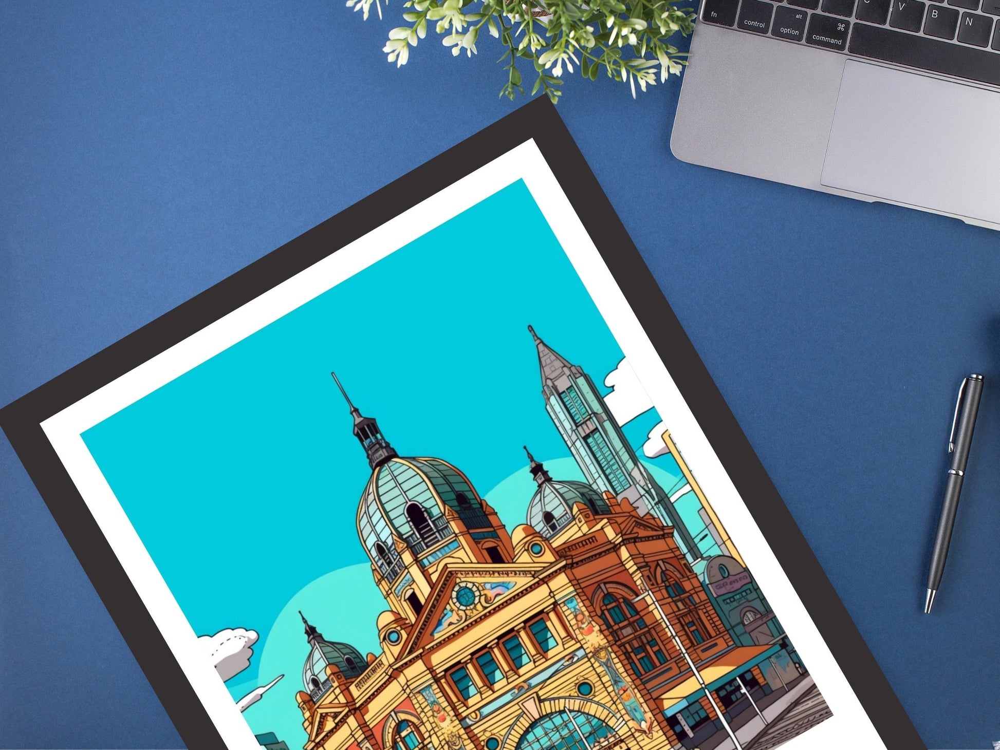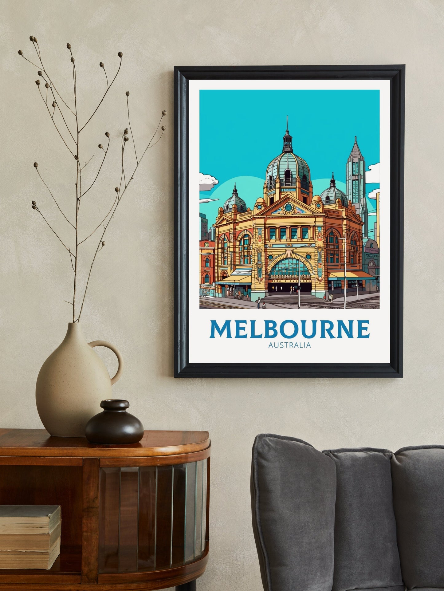 Apportez un morceau de la culture et de l'histoire de Melbourne sur vos murs avec cette magnifique affiche de voyage de la gare de Flinders.