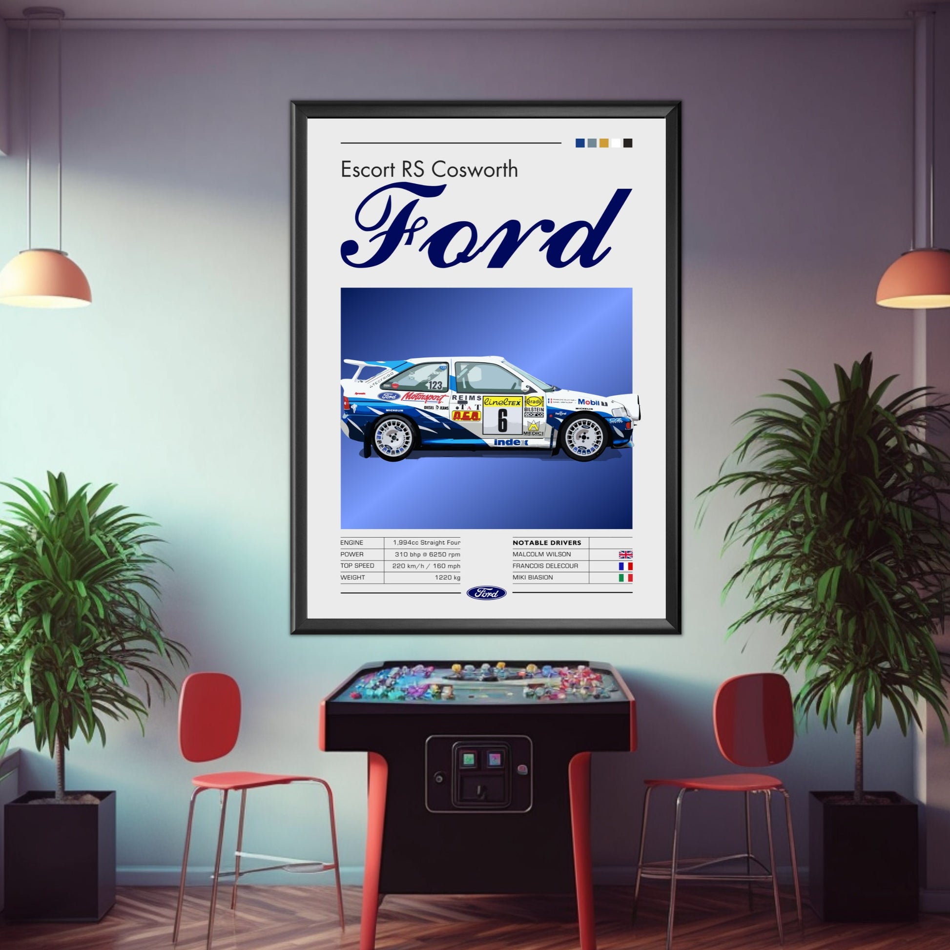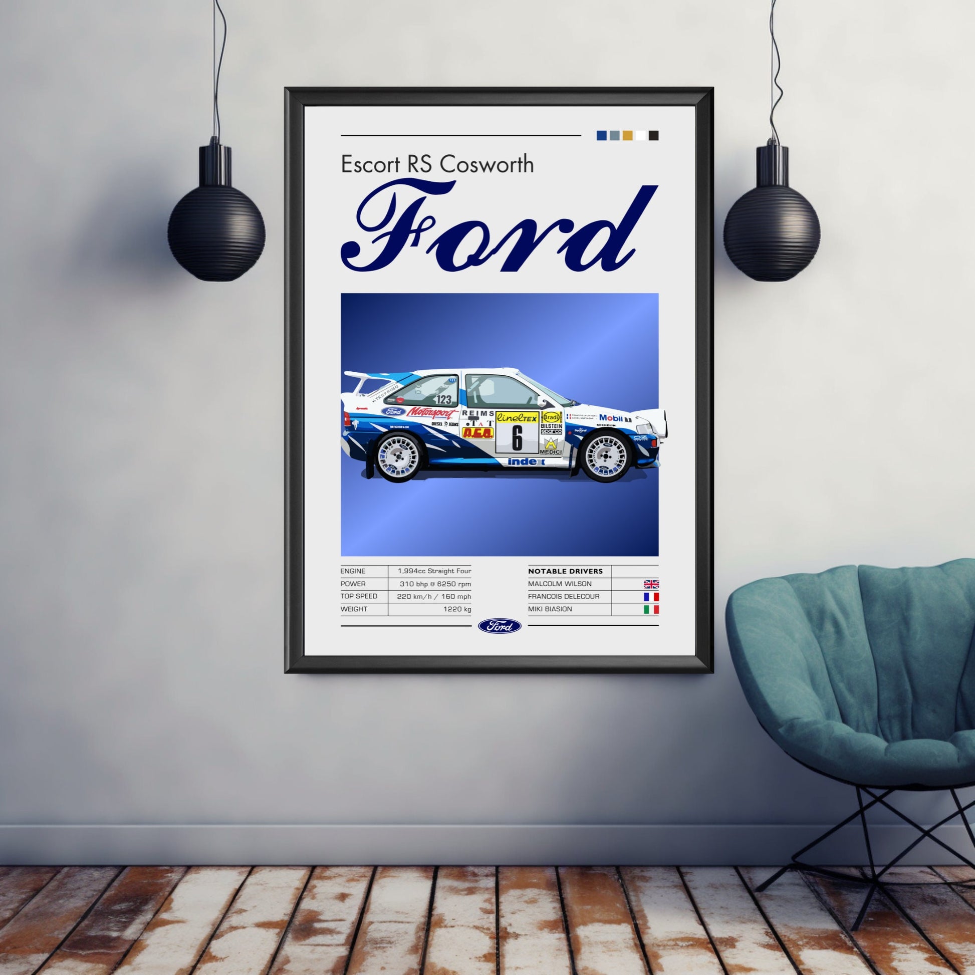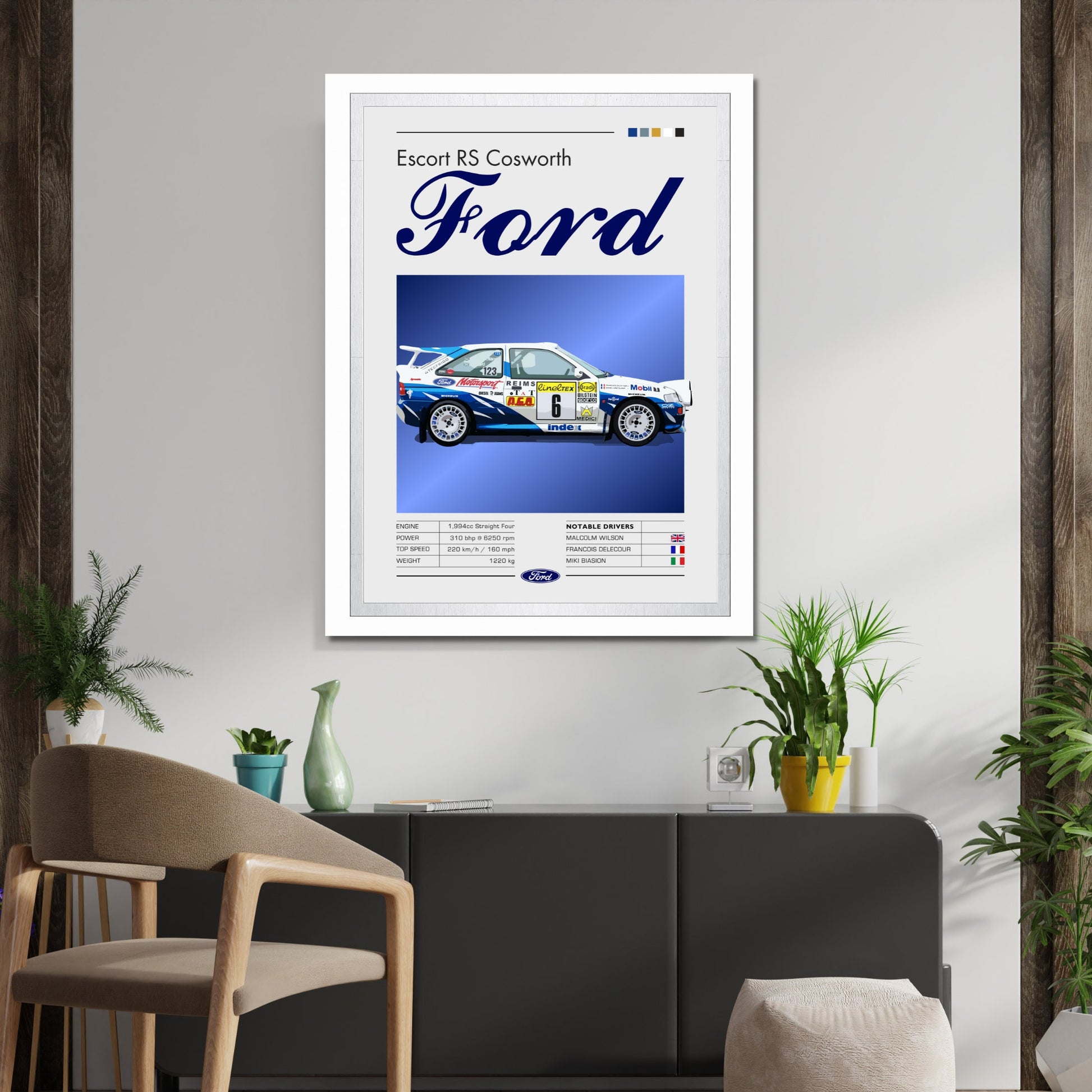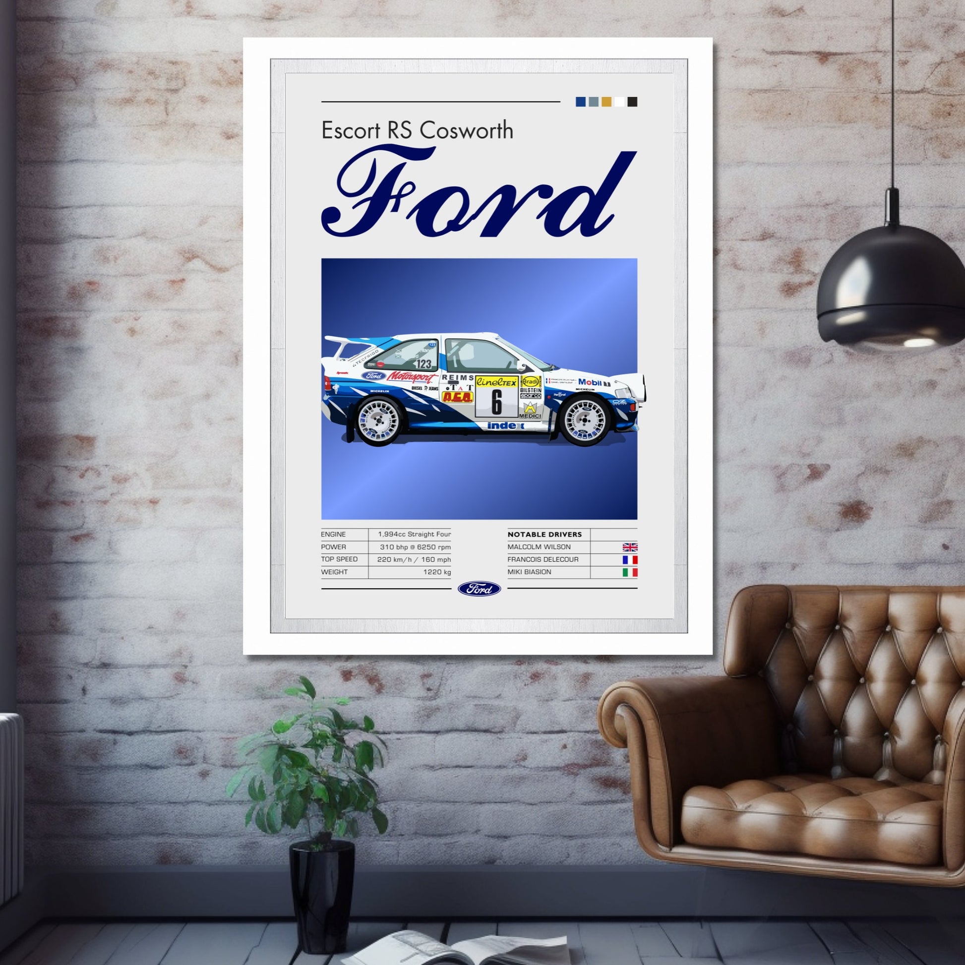 Affiche Ford Escort RS Cosworth – Décoration murale de légende du rallye WRC des années 1990
