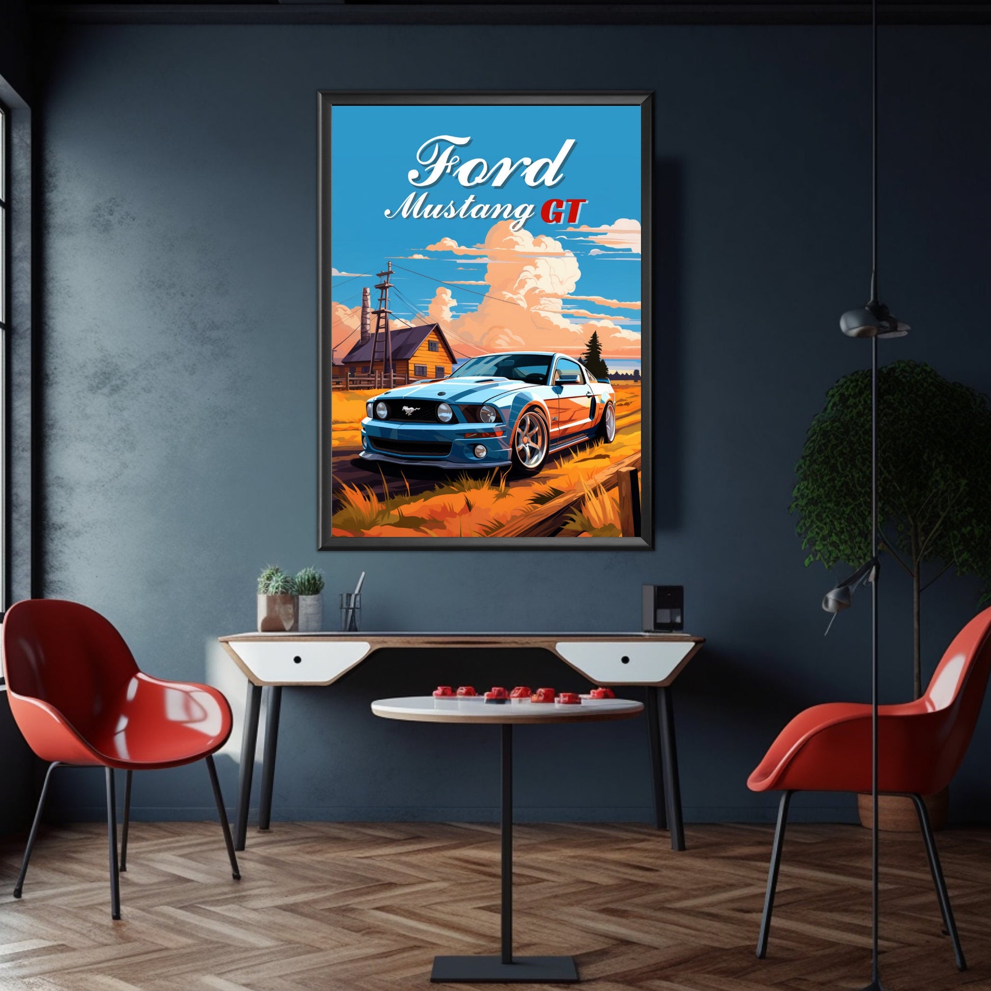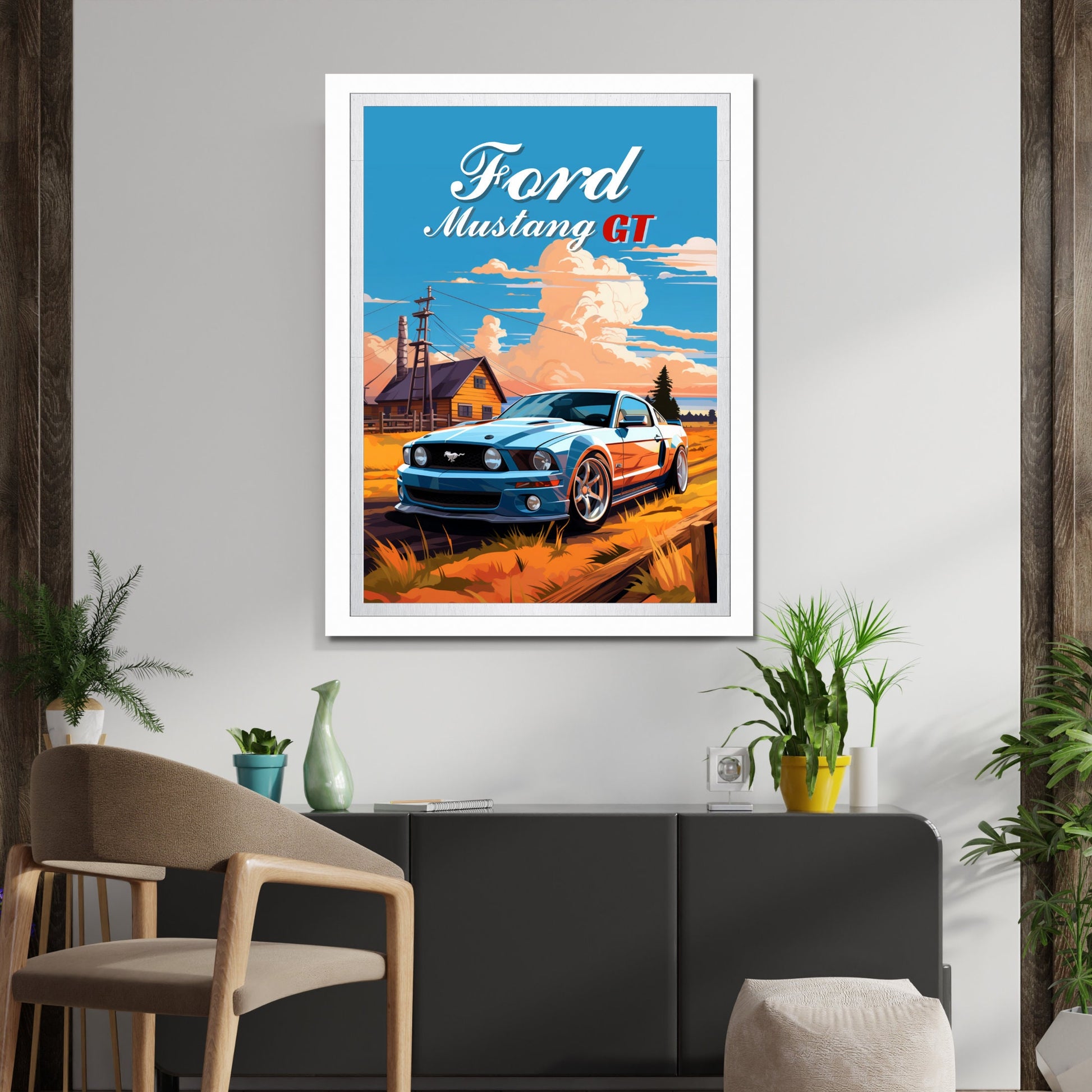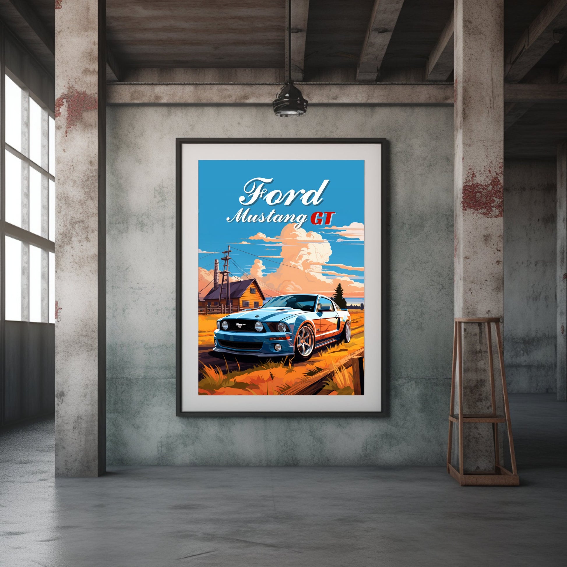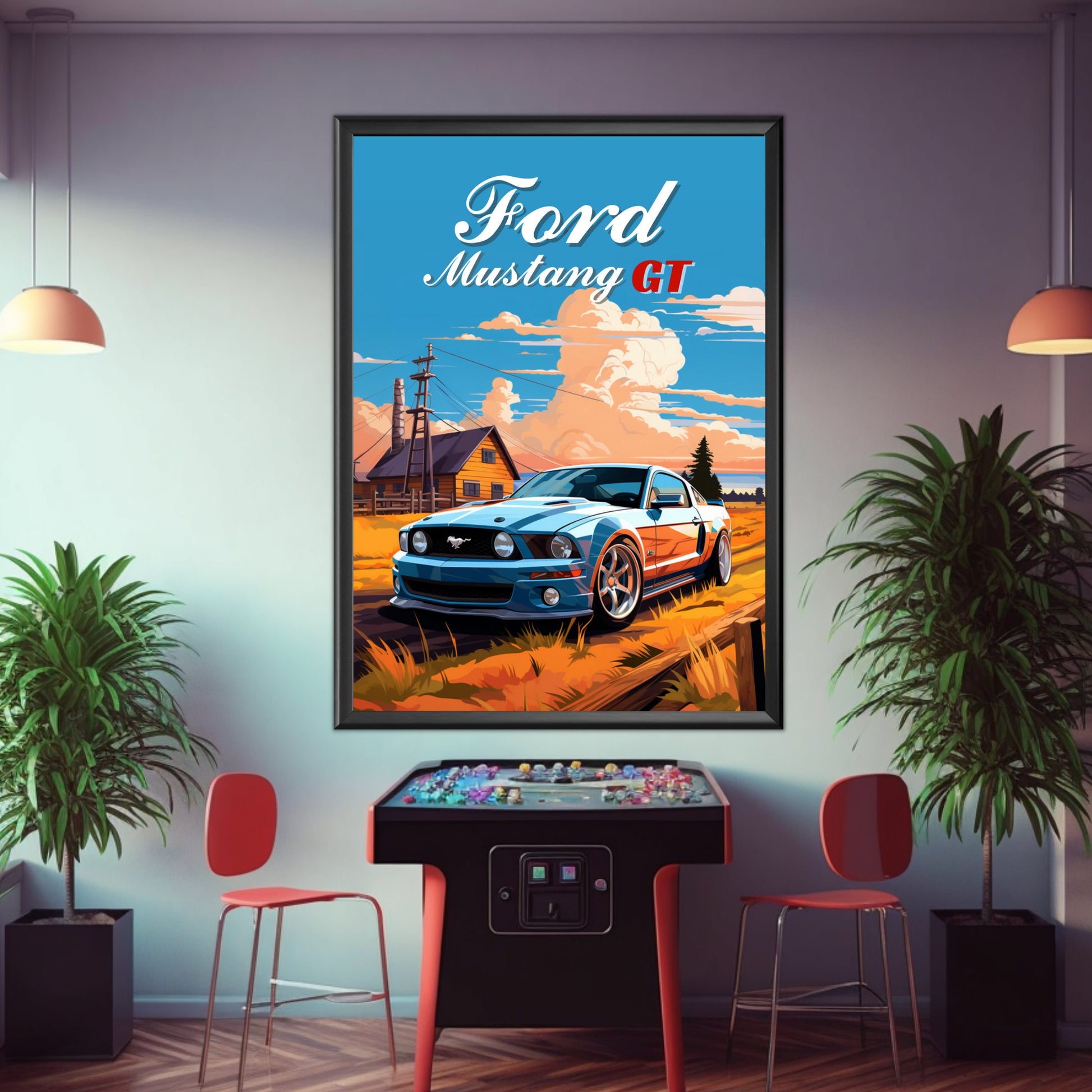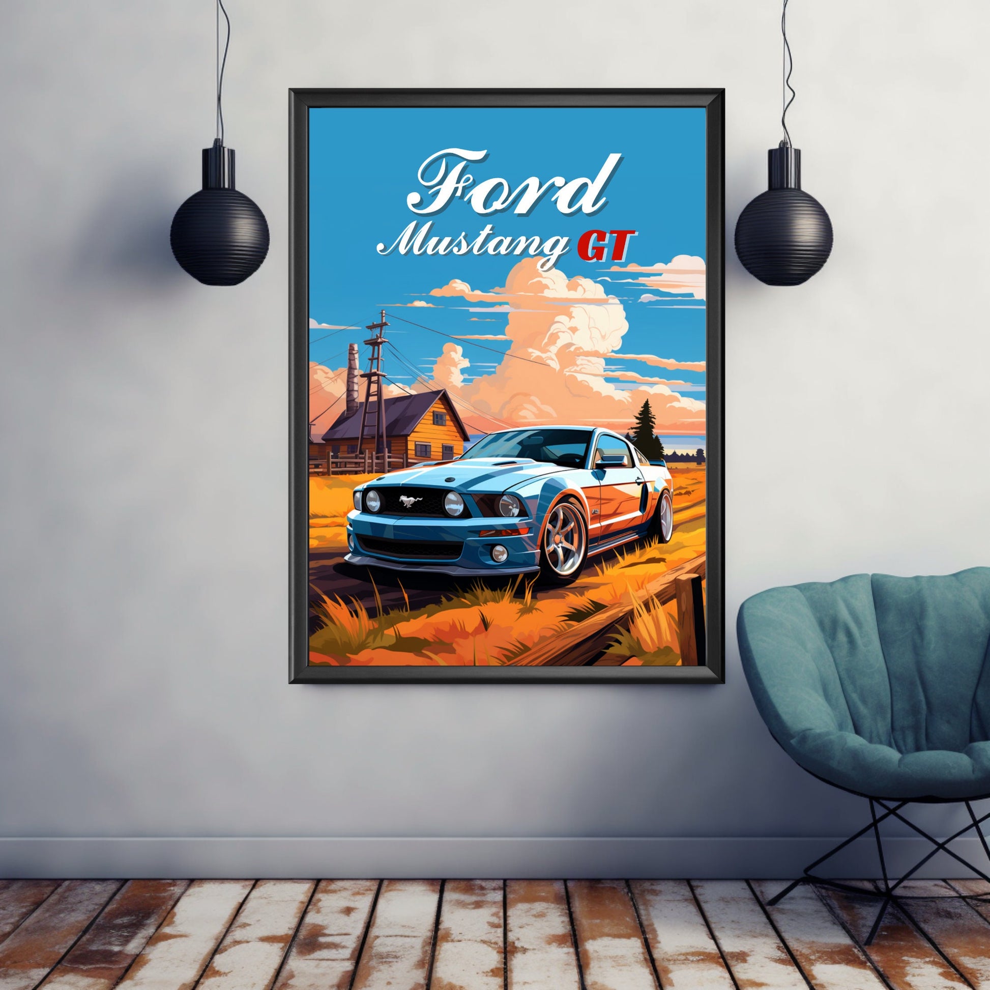 Affiche Ford Mustang GT – Impression d'art mural classique de muscle car américain