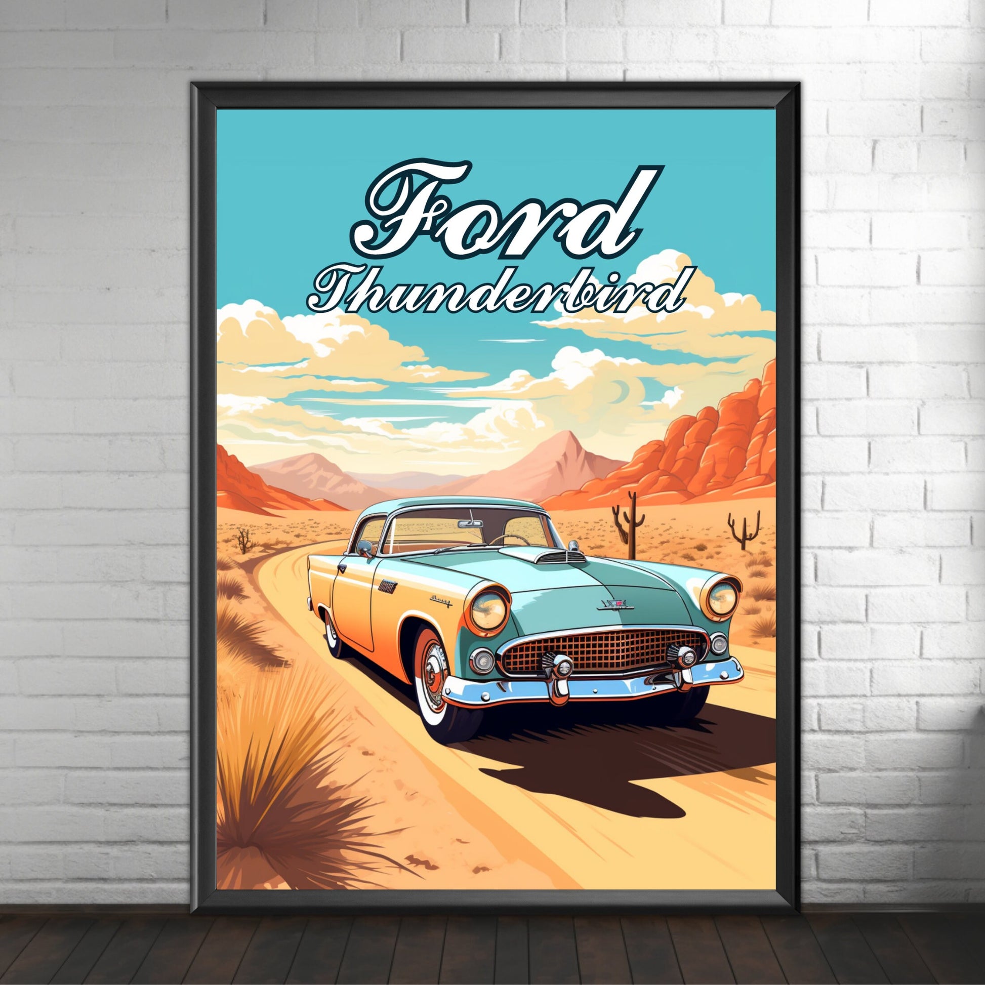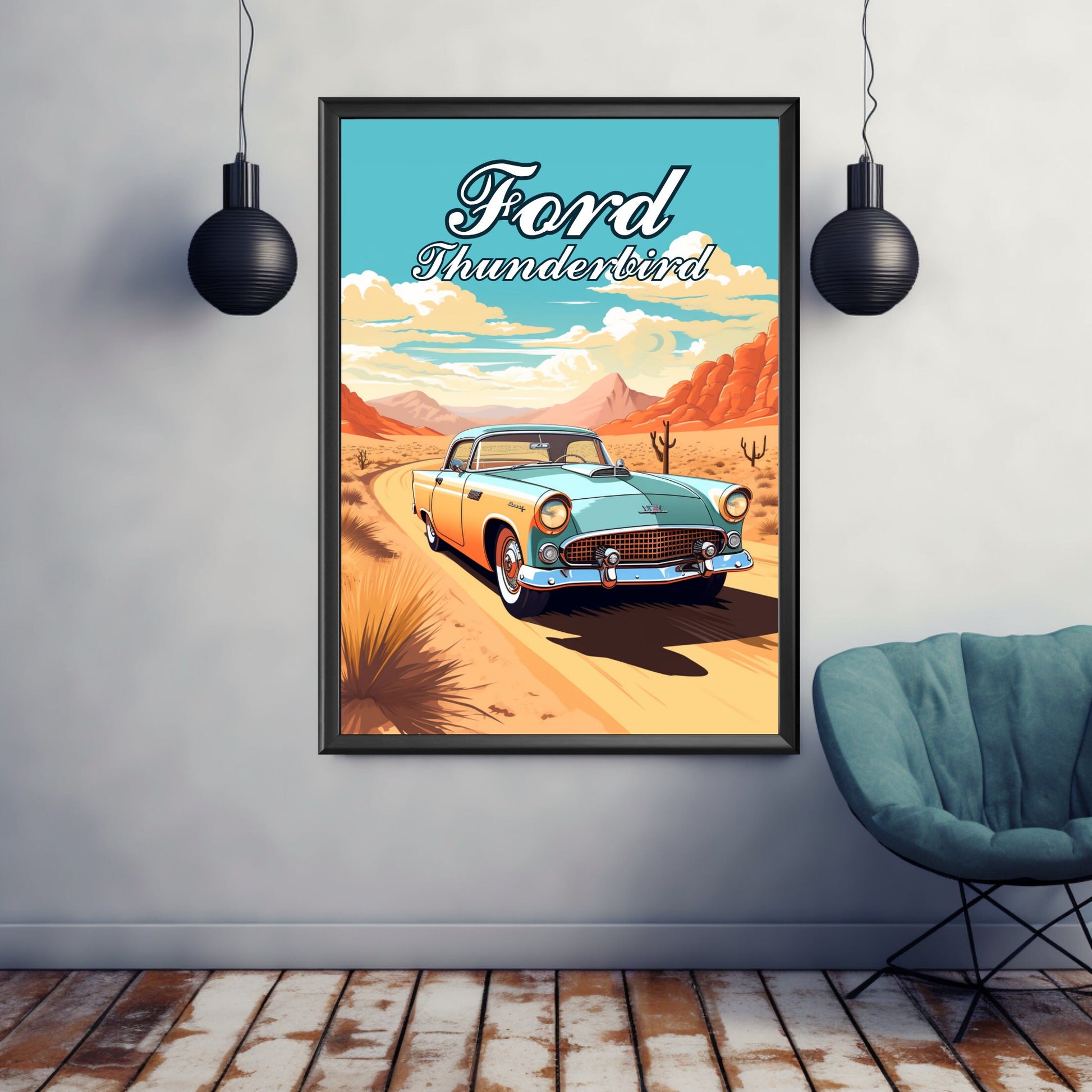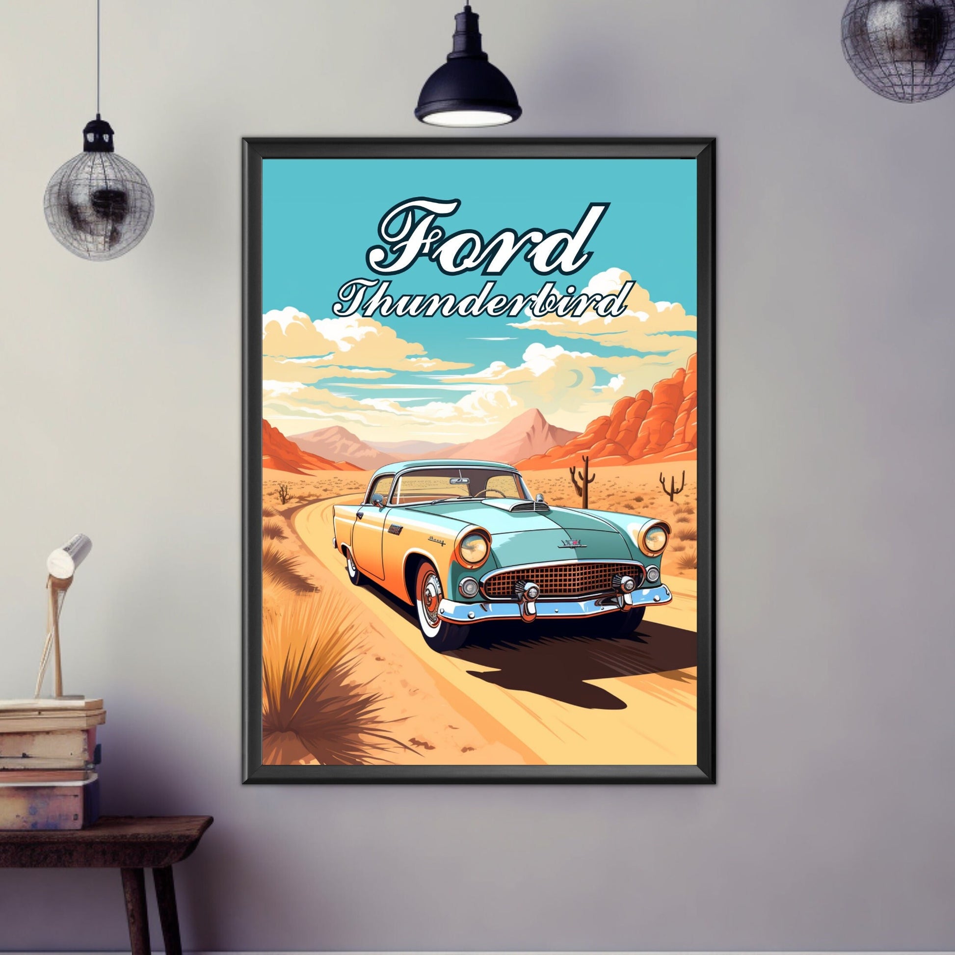 Affiche Ford Thunderbird – Impression murale représentant une muscle car américaine classique pour les amateurs de voitures anciennes