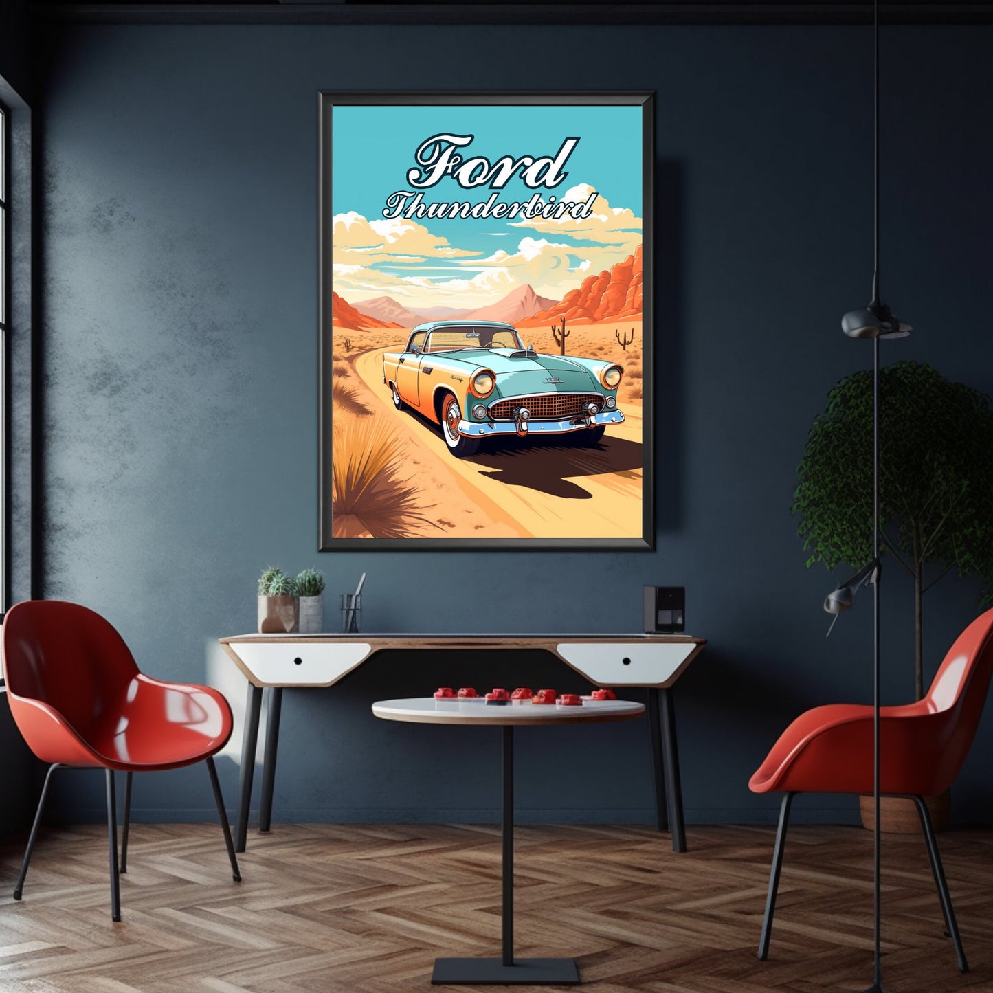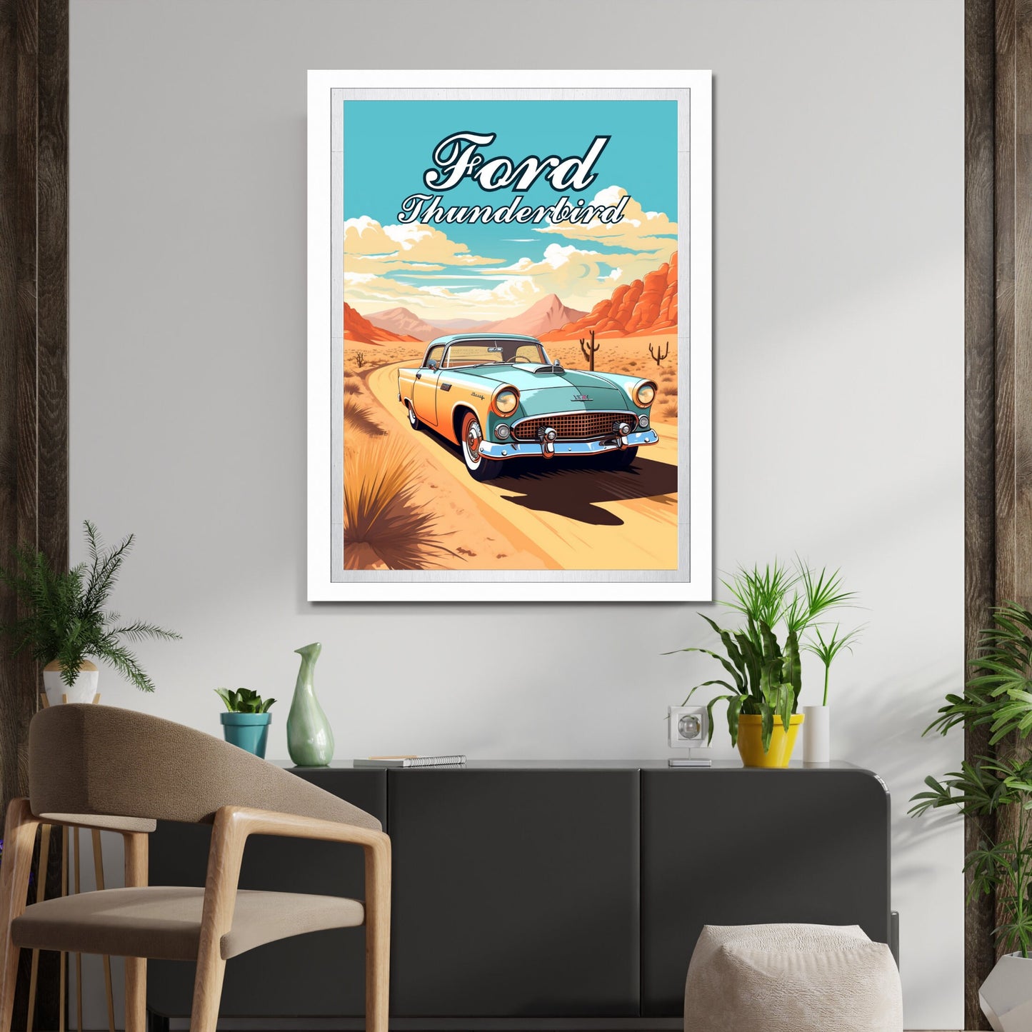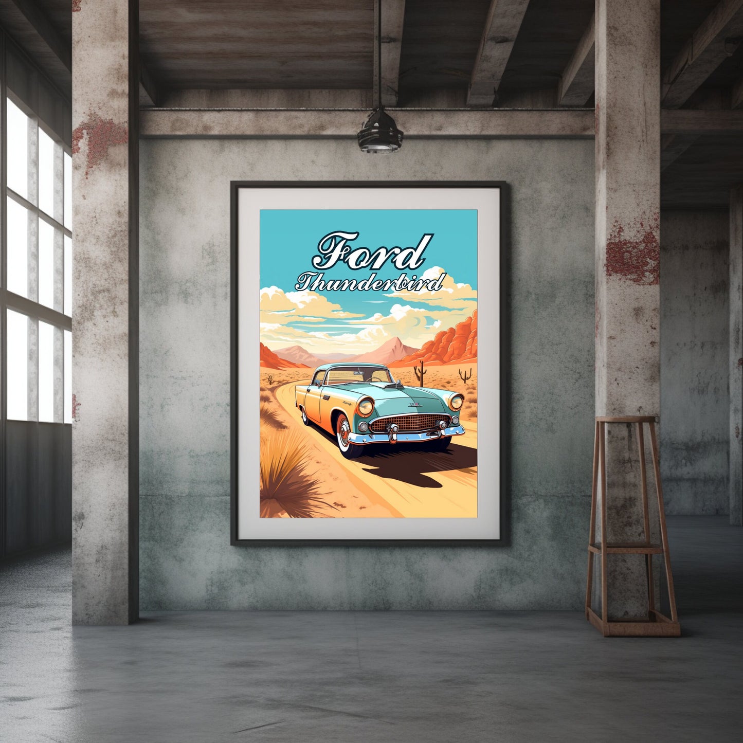 Affiche Ford Thunderbird – Impression murale représentant une muscle car américaine classique pour les amateurs de voitures anciennes