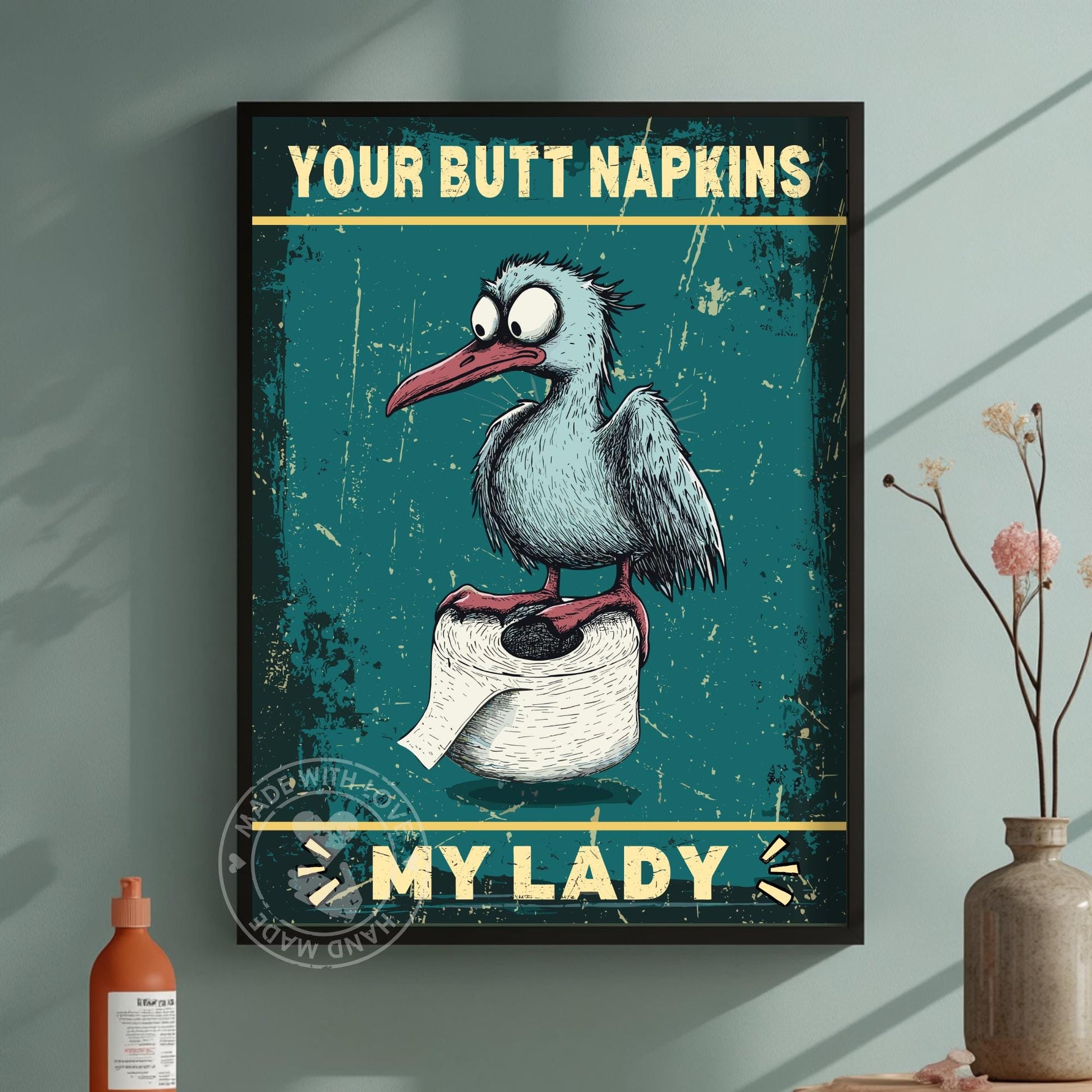 Œuvre d'art amusante pour la salle de bain - Affiche de mouette