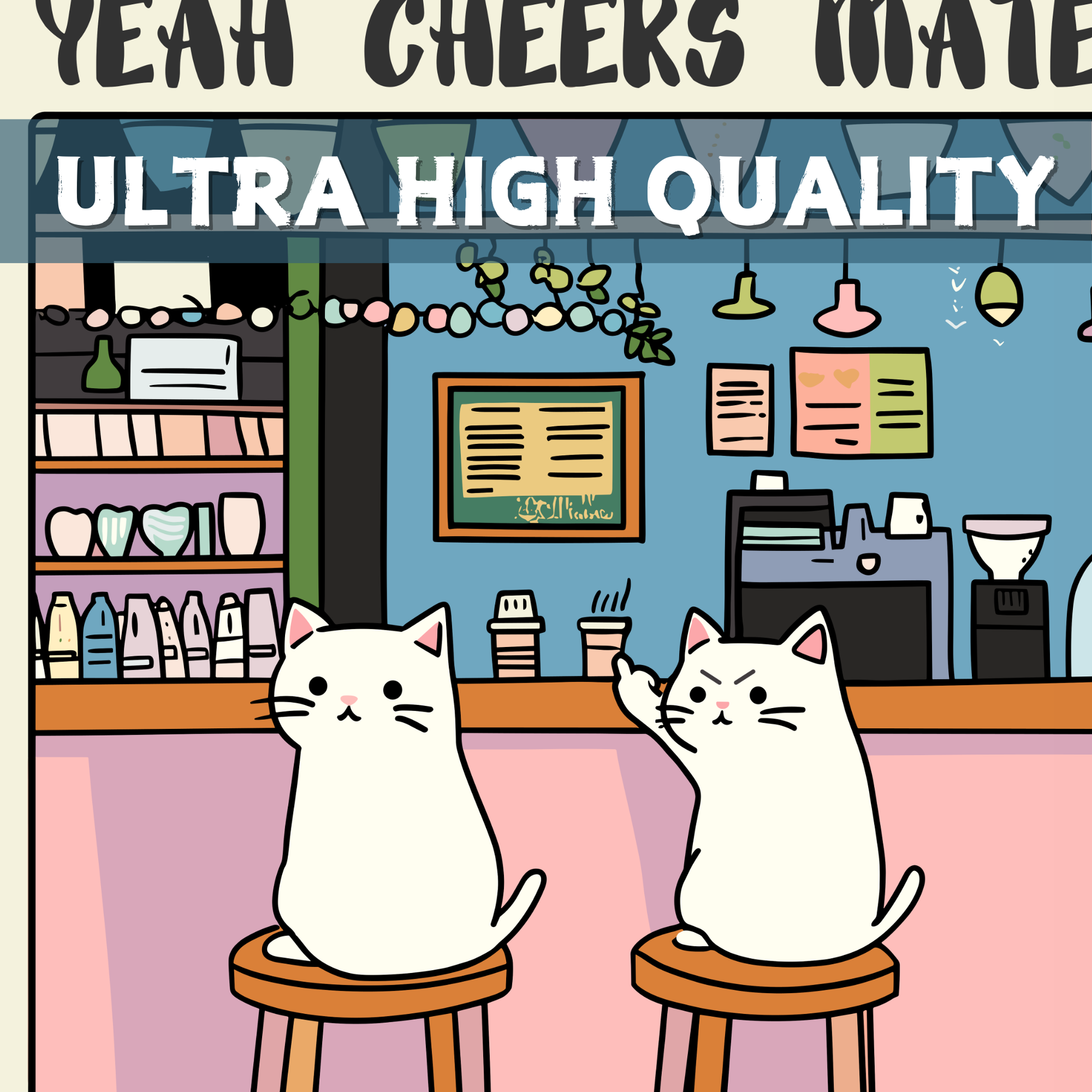 Réalisée sur du papier durable et de haute qualité, cette œuvre d'art féline déverse des rires et un clin d'œil au charme des pubs britanniques. Parfaite pour les amoureux des chats ou les amateurs d'humour en quête d'une joyeuse gorgée de vin. Un ronronnement de sarcasme.