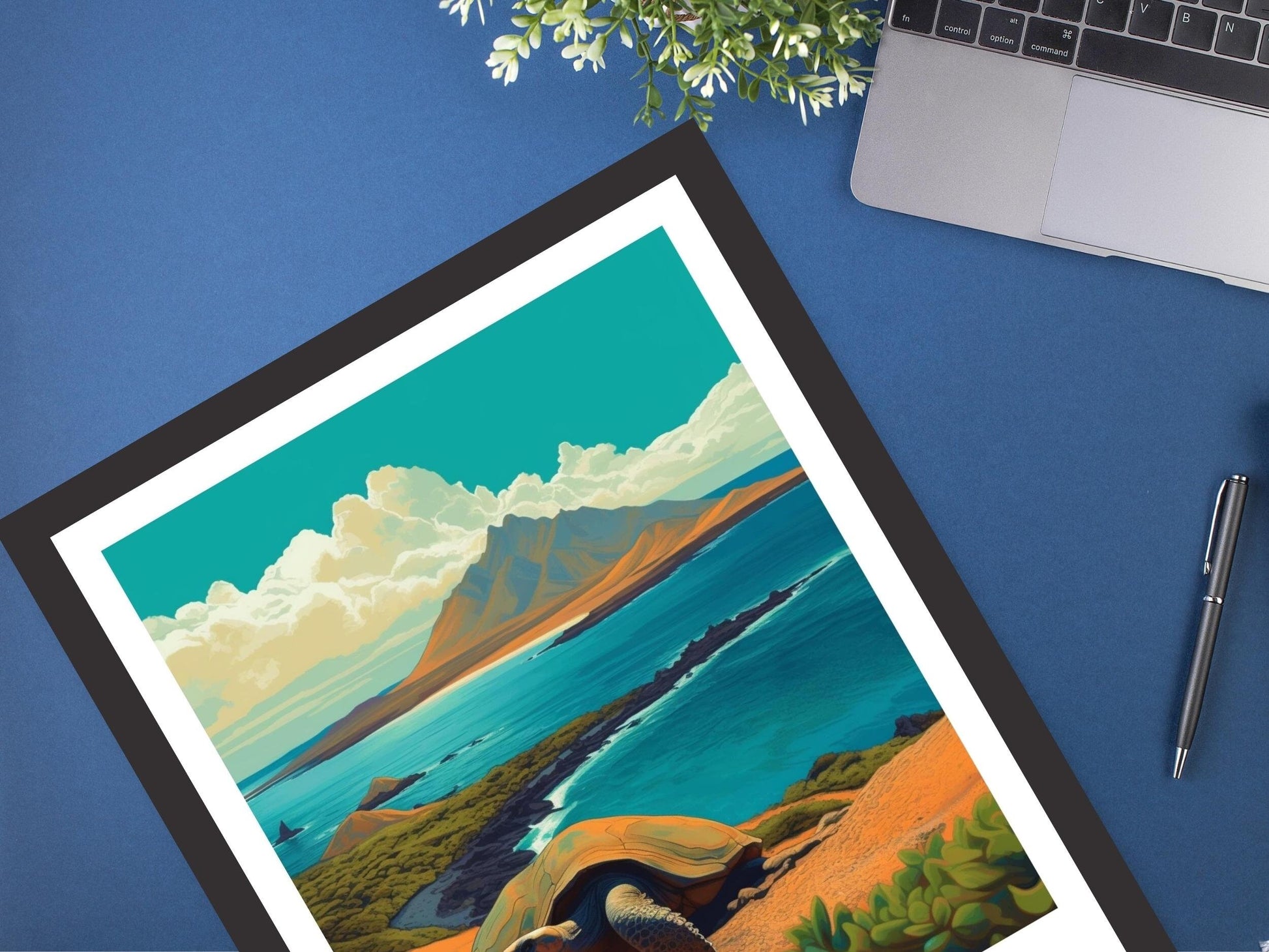 Cette œuvre mêle des bleus profonds et des bruns terreux à l'essence sauvage des Galápagos, mettant en valeur leur splendeur naturelle avec un style saisissant. Imprimée sur un papier de qualité supérieure, elle offre un éclat durable et une finition lisse, ce qui en fait un cadeau idéal pour les aventuriers ou les collectionneurs d'art. Cette œuvre d'art de voyage apporte une touche de mystère insulaire à n'importe quel mur.