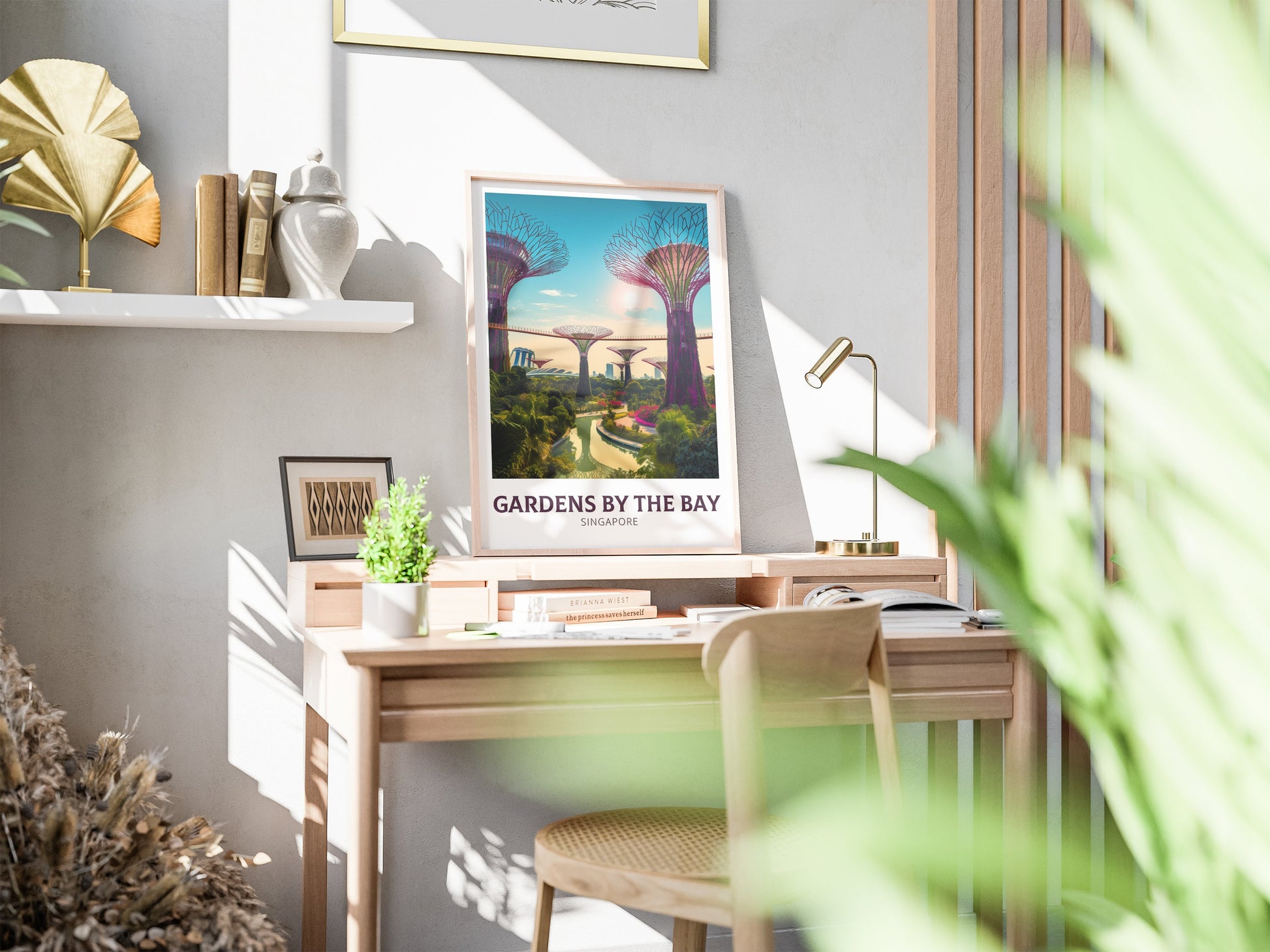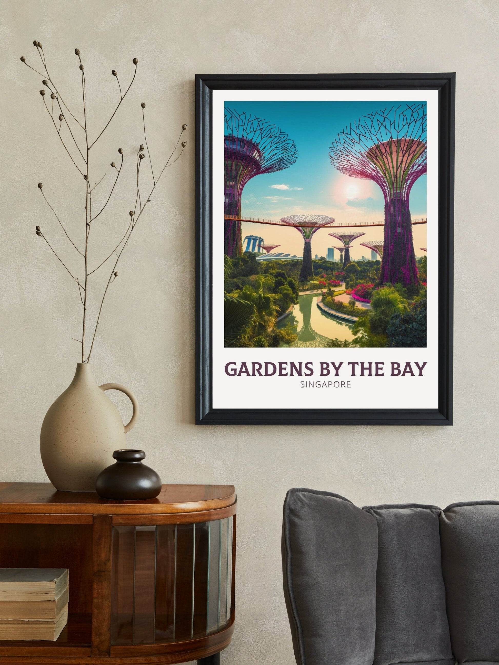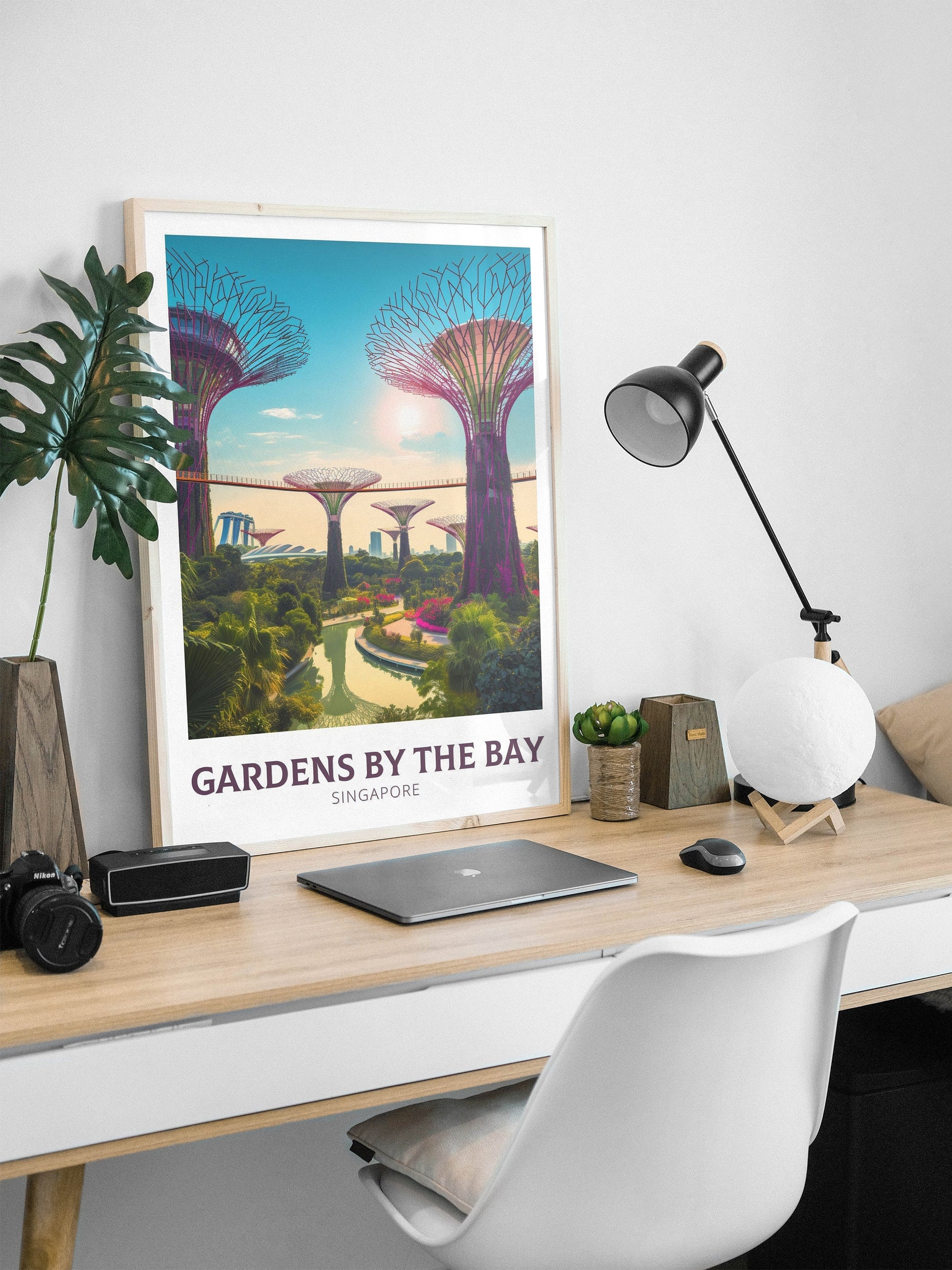 Notre affiche « Jardin de la Baie » – Décoration murale rétro plonge votre espace dans le charme futuriste des Jardins de la Baie de Singapour grâce à son design nostalgique. Idéale pour les passionnés de voyages et les amateurs d'art rétro, elle capture la forêt de Supertree et sa végétation luxuriante dans un style intemporel. Que vous ayez flâné dans ses allées ou rêvé de ses merveilles, cette affiche rétro « Jardins de la Baie » sera un ajout magnifique à votre décoration.