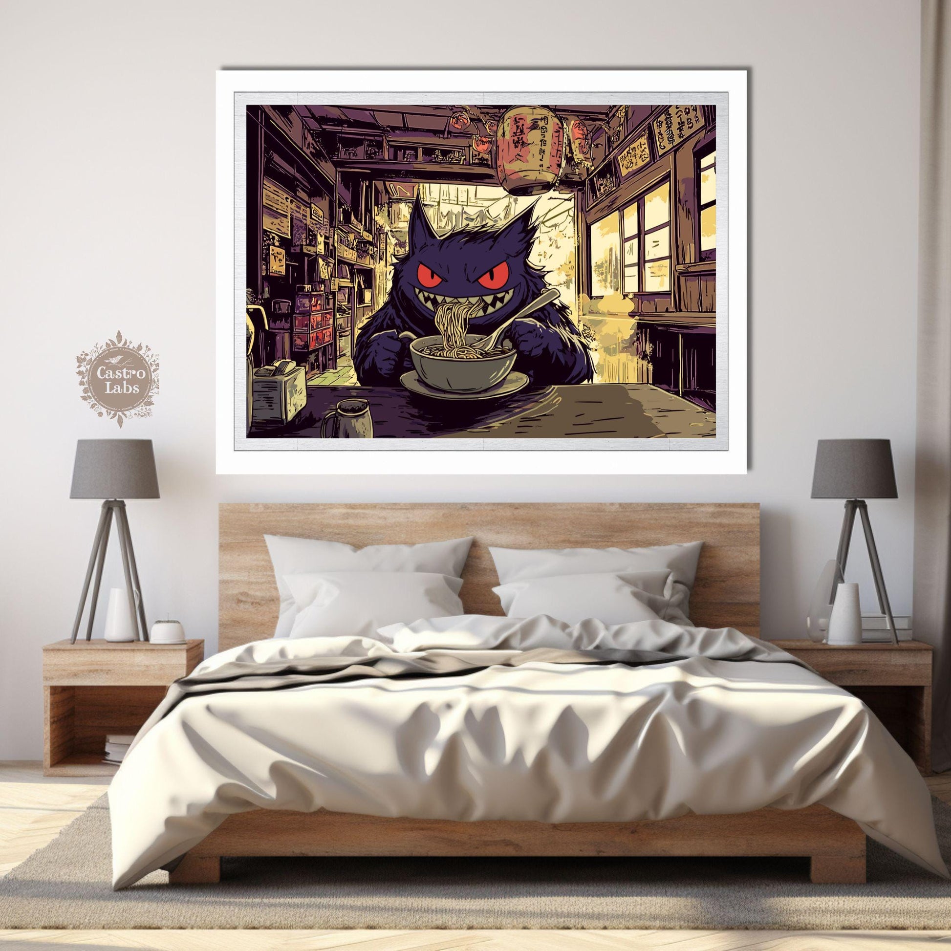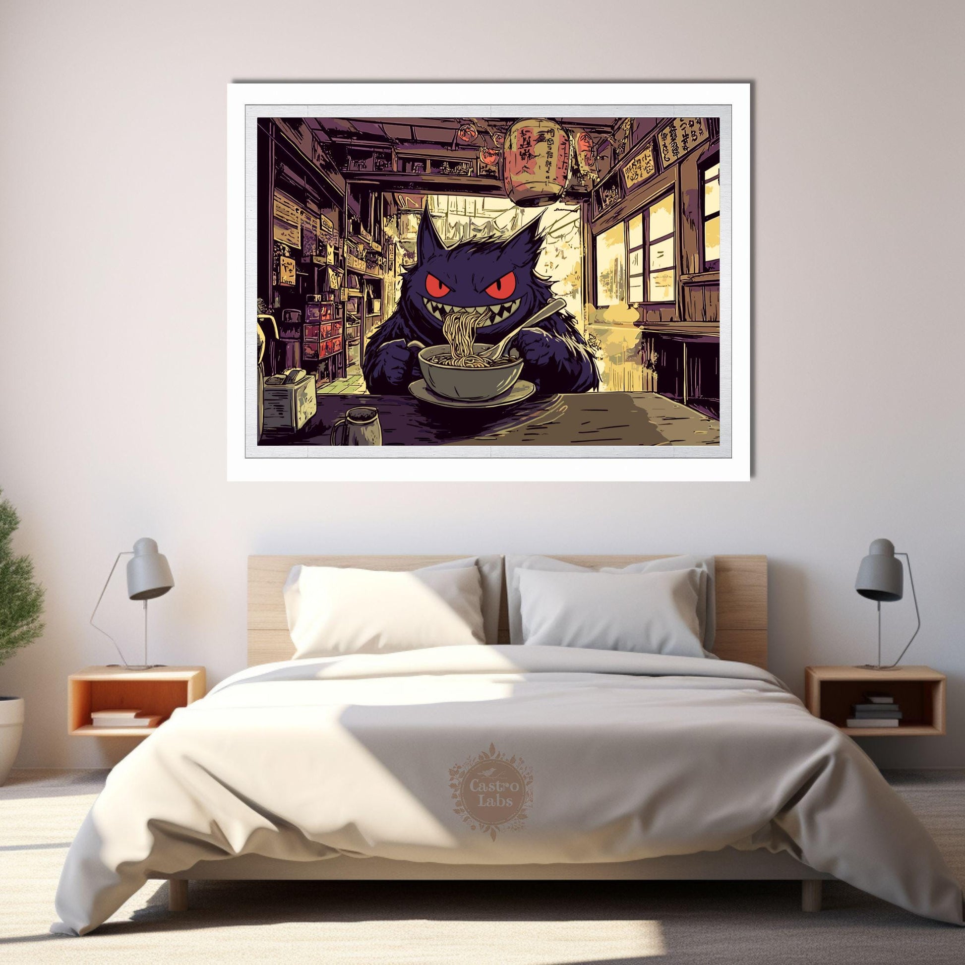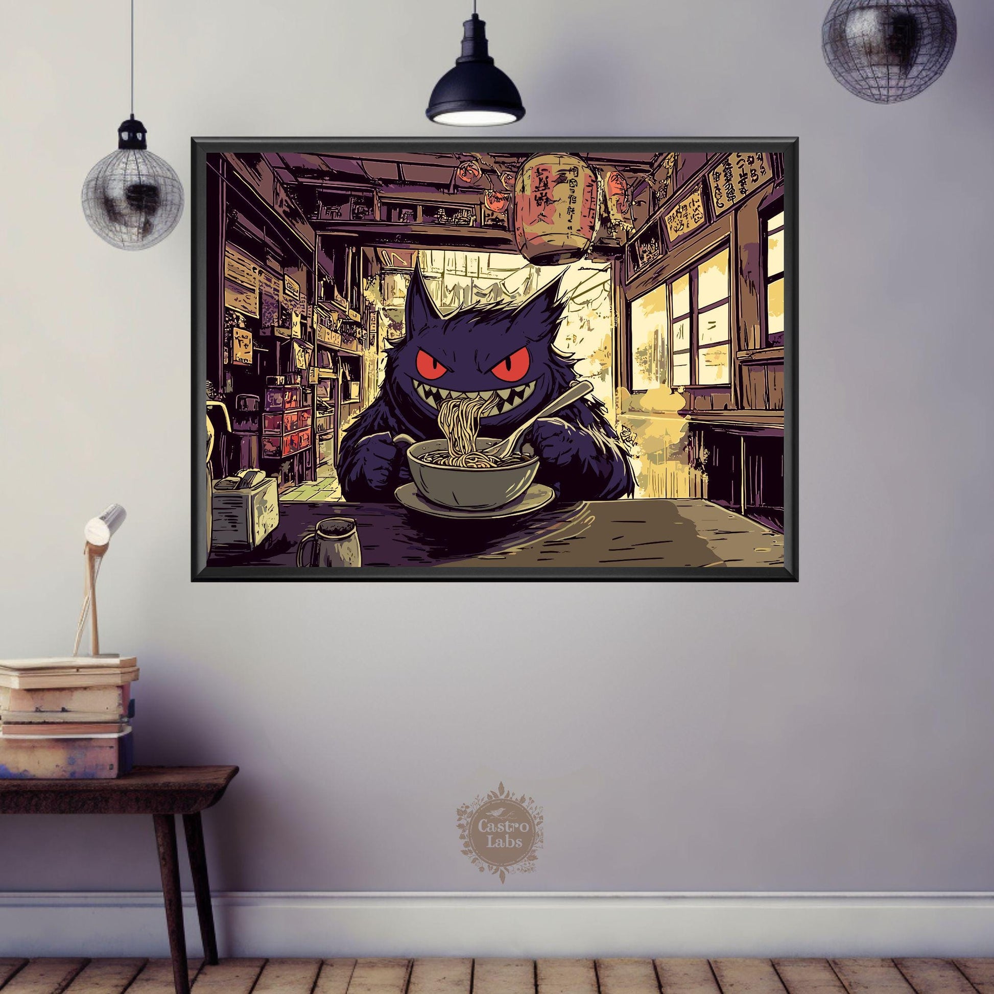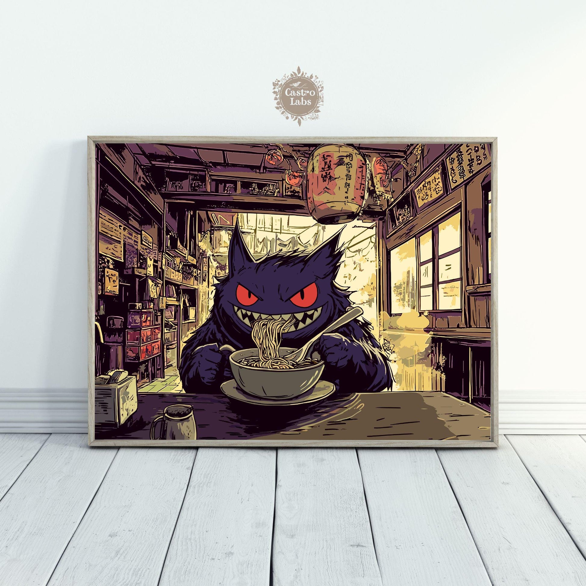 Affiche de paysage Gengar Ramen - Illustration inspirée de Pokémon de style japonais