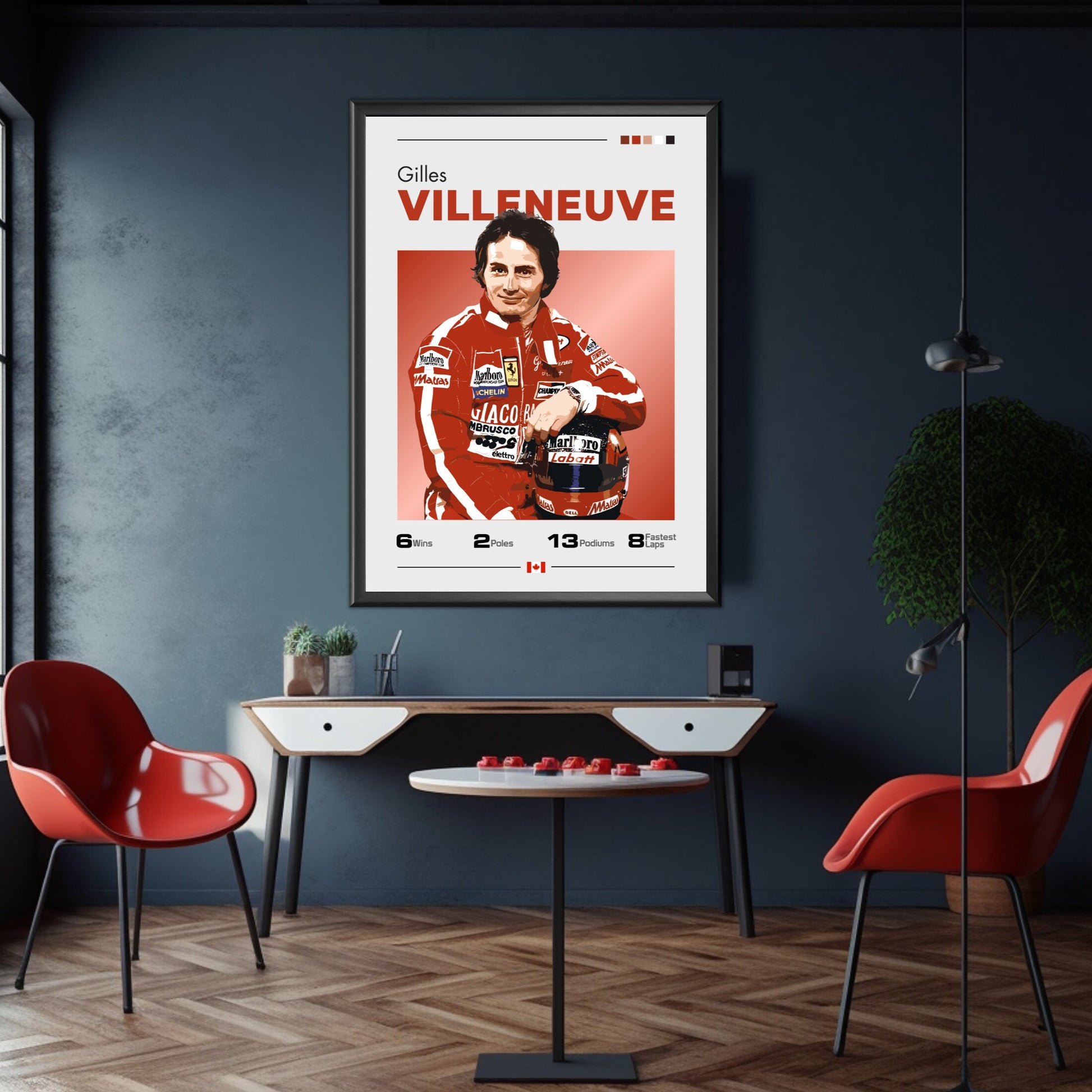 Affiche Ferrari F1 de Gilles Villeneuve – Décoration murale de pilote légendaire