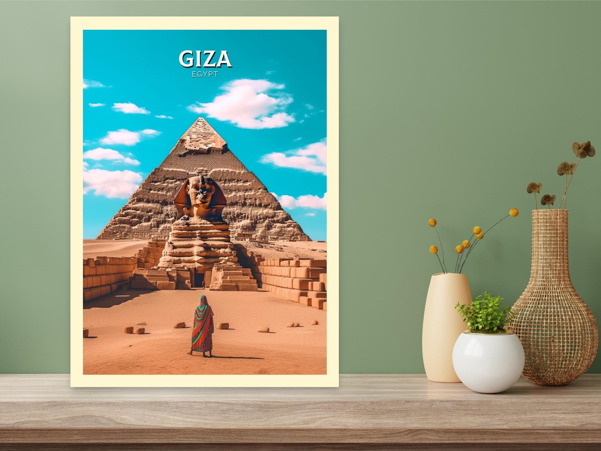 Notre affiche de voyage de Gizeh – Art rétro de l'Égypte – plonge votre intérieur dans la majesté antique de Gizeh, en Égypte, grâce à son design nostalgique. Idéale pour les passionnés de voyages et les amateurs d'art rétro, elle capture les pyramides et le Grand Sphinx dans un style intemporel. Que vous ayez contemplé leur ombre ou rêvé de leur splendeur, cette affiche rétro de Gizeh est un ajout remarquable à votre décoration.