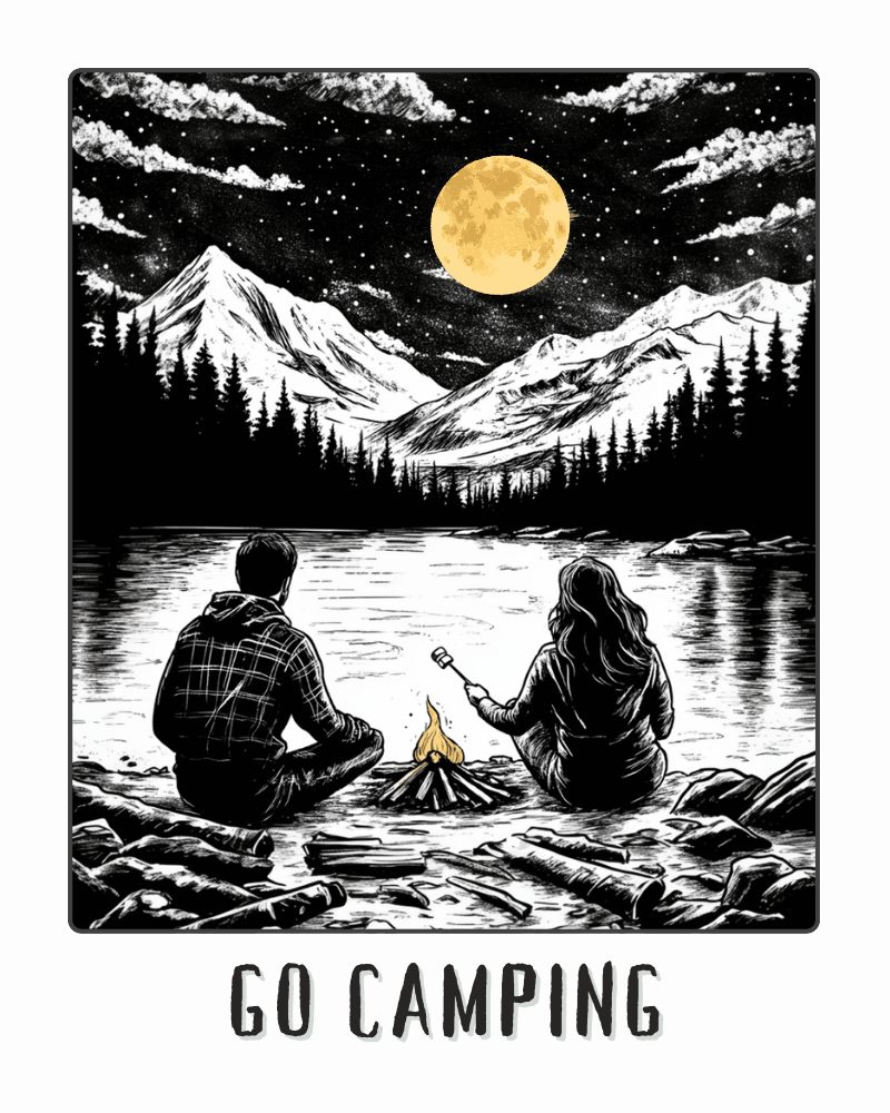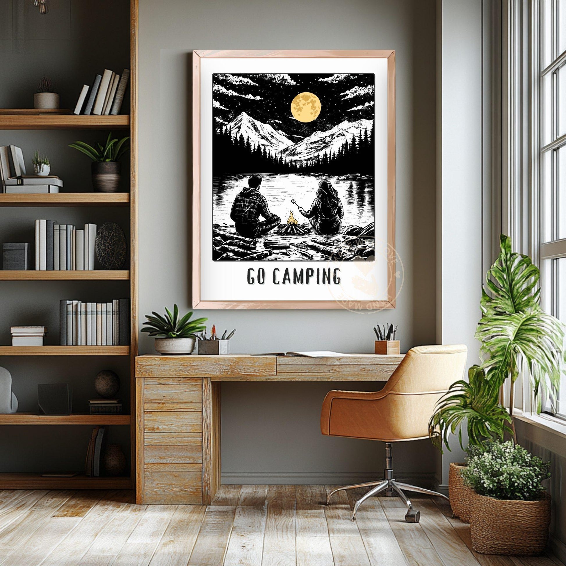 Idéal comme cadeau pour la famille, les amis ou les autres campeurs, ce poster camping apporte charme, inspiration et aventure à tout espace. Disponible en plusieurs formats, l' affiche « Go Camping » est prête à être encadrée ou exposée, ce qui en fait un incontournable pour tous les passionnés de camping, de randonnée et d'exploration en pleine nature.
