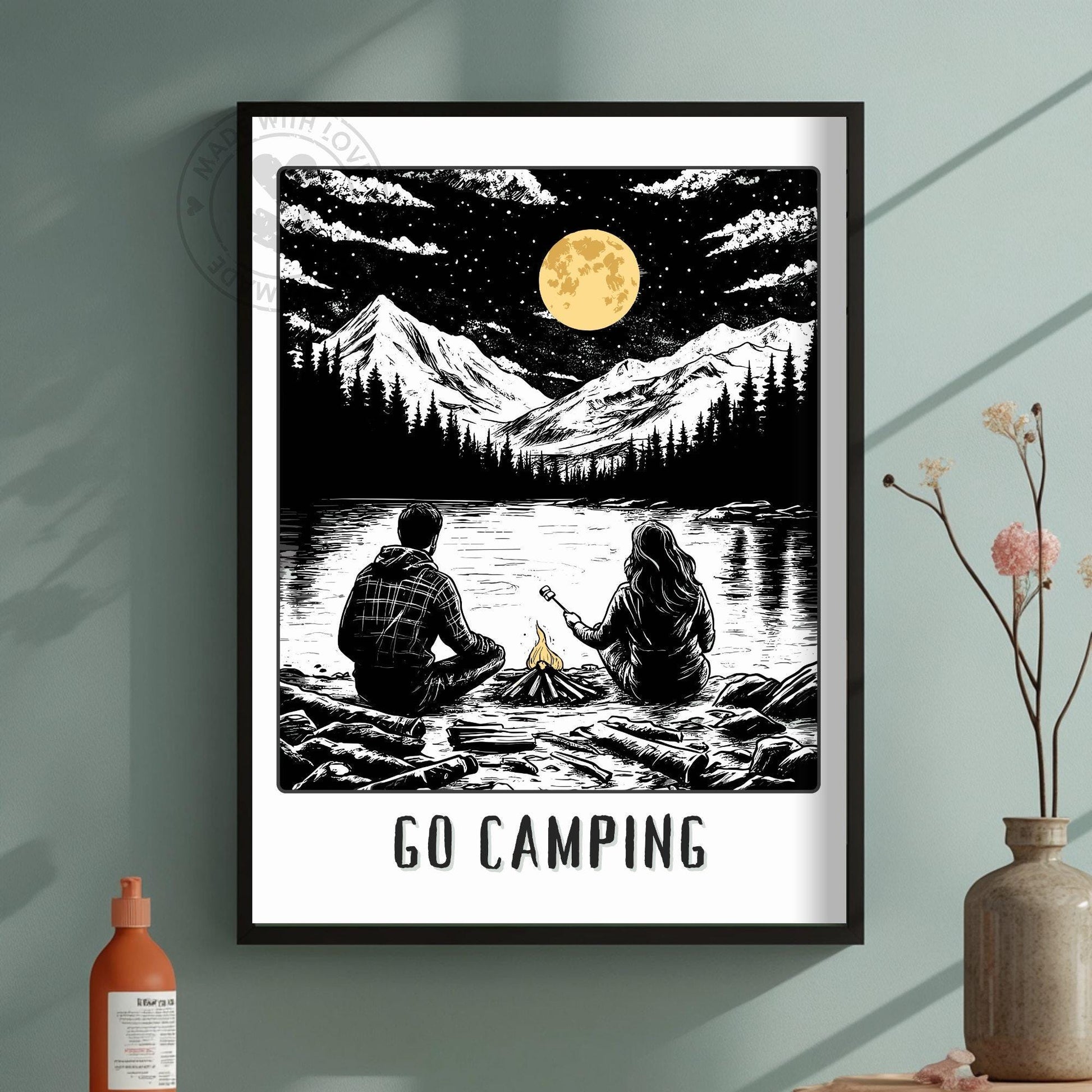 L' affiche « Go Camping » est idéale pour les chambres, les salons ou les chalets, inspirant l'envie de voyager et l'amour des aventures en plein air. Son design intemporel et son imprimé résistant en font une décoration durable pour tout amateur de camping. Que vous soyez un campeur passionné ou simplement un amoureux de la nature, cette affiche incarne la joie et la liberté de vivre en plein air.