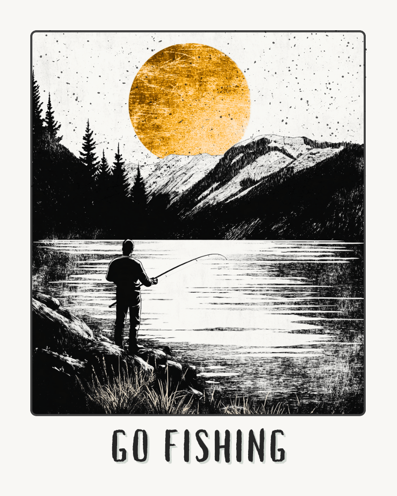 Célébrez le calme et l'excitation des grands espaces avec notre affiche « Go Fishing » , le cadeau idéal pour les pêcheurs. Ce magnifique imprimé de pêche capture la sérénité des lacs, le dynamisme des rivières et l'art intemporel de la pêche, apportant l'esprit paisible et exaltant de la pêche chez vous. Imprimé sur des matériaux de haute qualité, chaque détail, du clapotis de l'eau au pêcheur en action, est sublimé par des couleurs vives et durables.