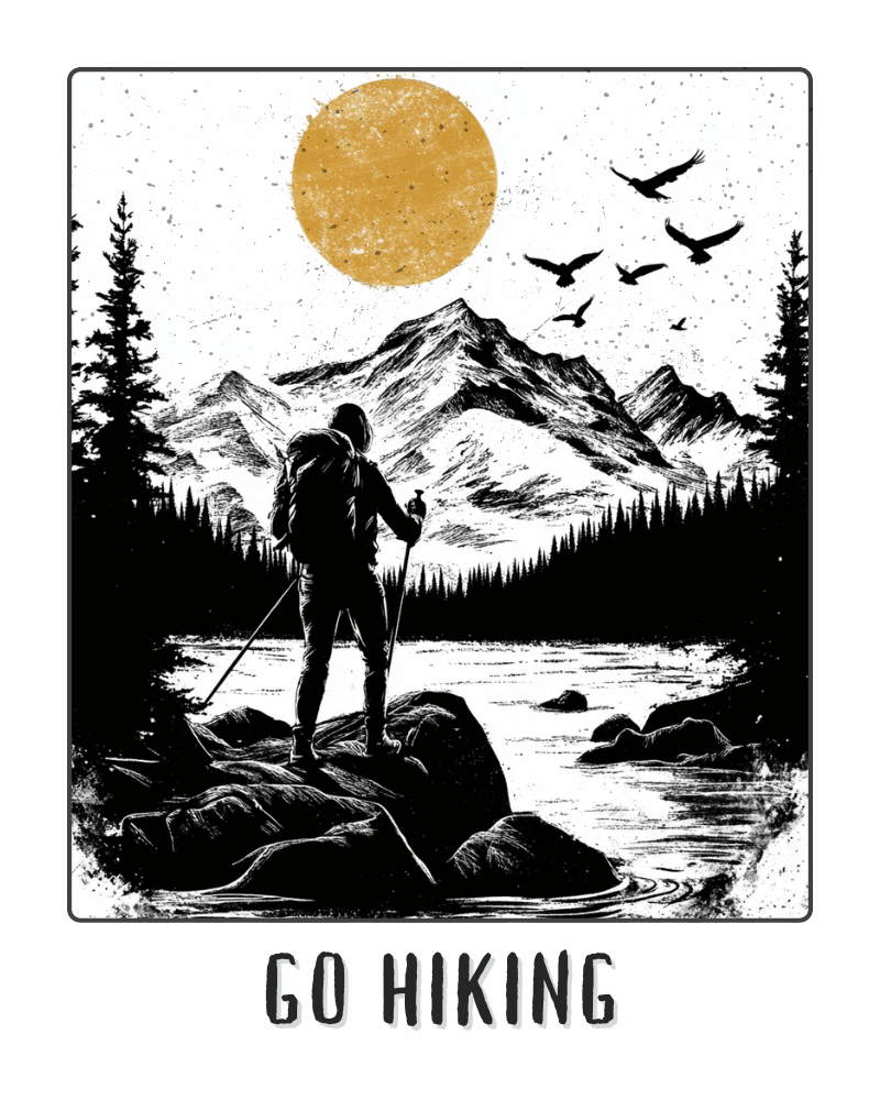 L' affiche « Go Hiking » est idéale pour les chambres, les salons, les bureaux ou les espaces dédiés à l'aventure, inspirant chacun à savourer le plaisir de la randonnée et la sérénité du plein air. Son design intemporel et son imprimé durable en font une décoration précieuse, célébrant l'esprit d'exploration et d'aventure.
