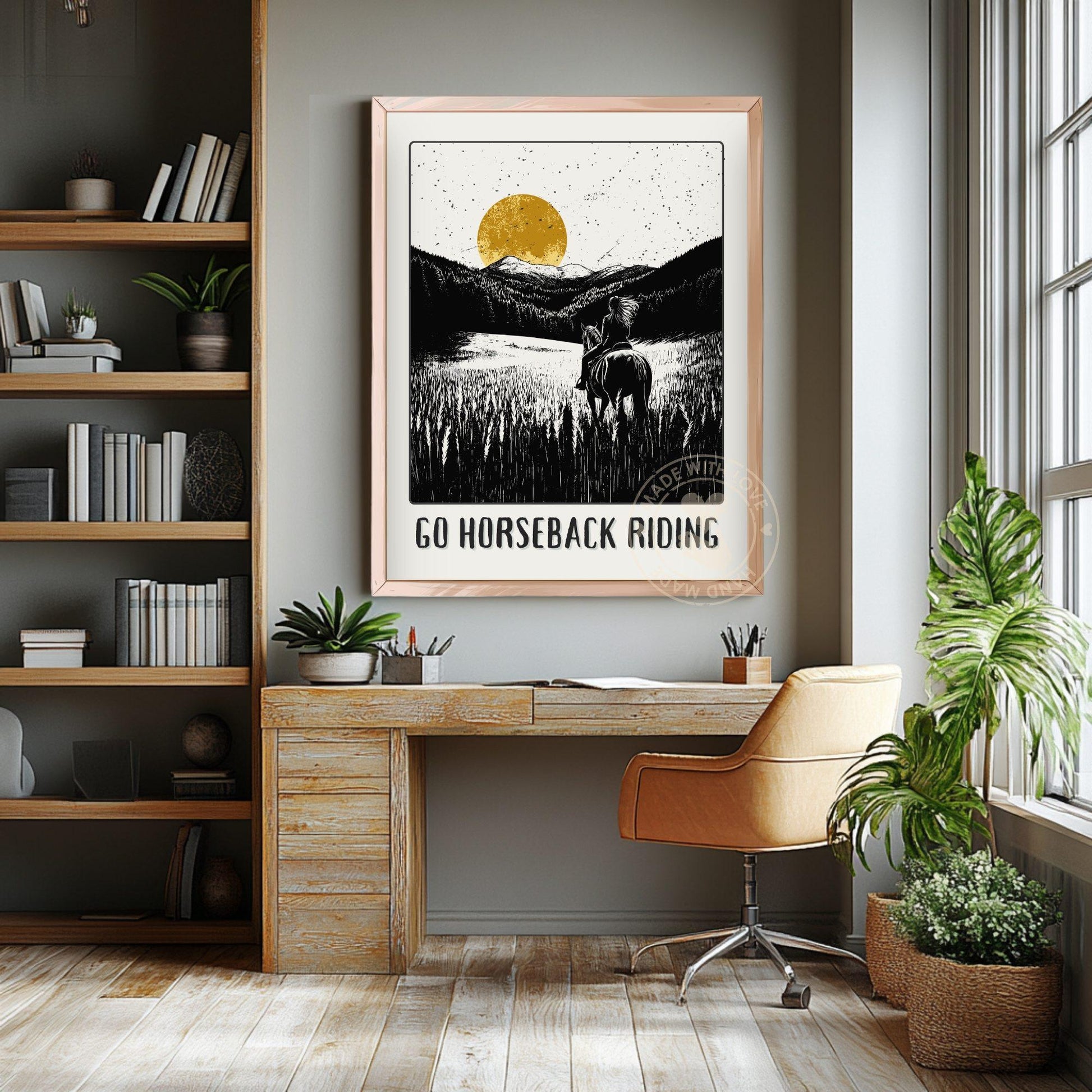 Sublimez votre décoration intérieure ou de bureau avec cette affiche d'équitation haut de gamme. Cadeau idéal pour les passionnés d'équitation, les athlètes équestres ou toute personne fascinée par la beauté des chevaux, l' affiche « Go Horse Back Riding » apporte élégance, énergie et inspiration à tous vos murs. Disponible en plusieurs formats, cette affiche est prête à être encadrée ou exposée comme pièce maîtresse dans votre galerie équestre.