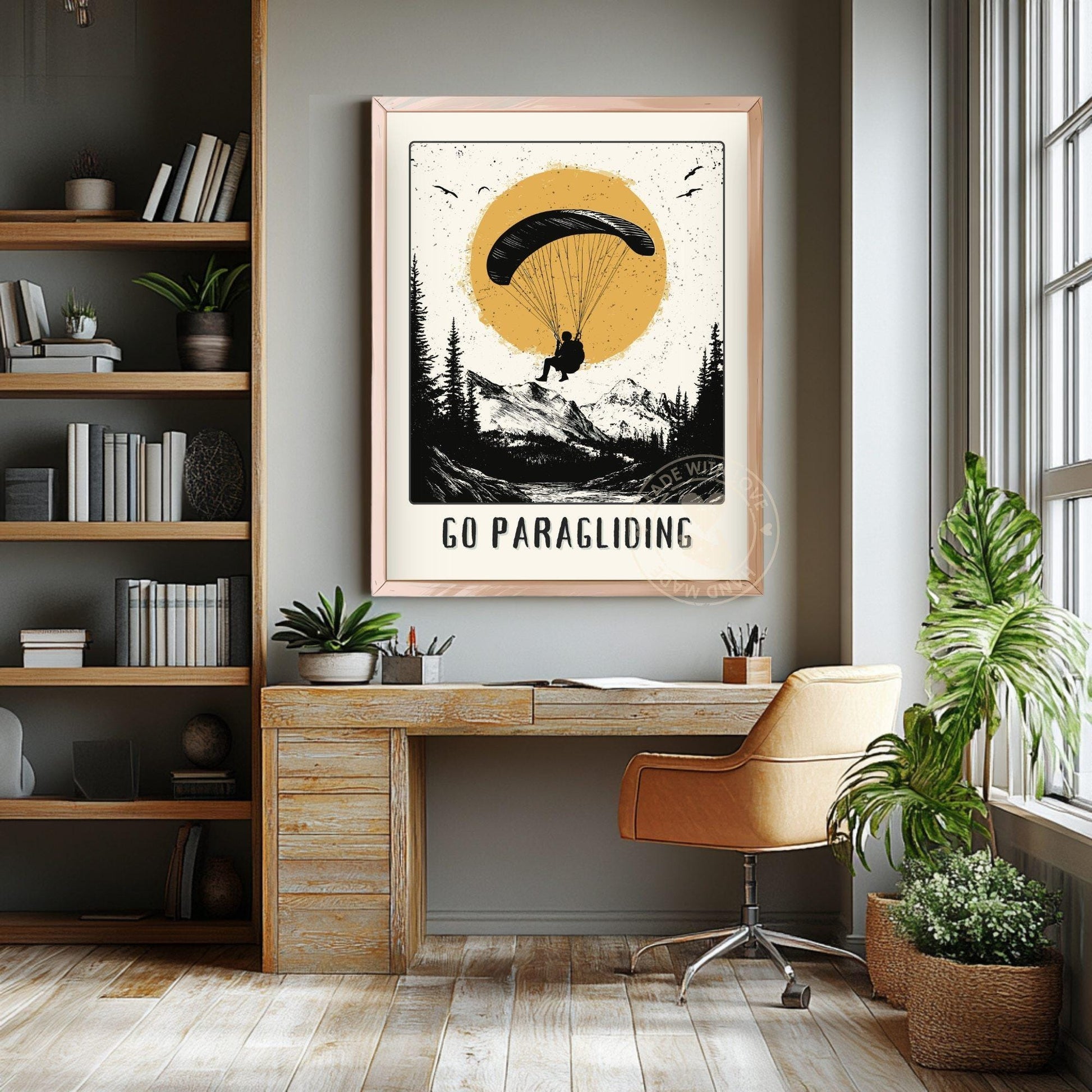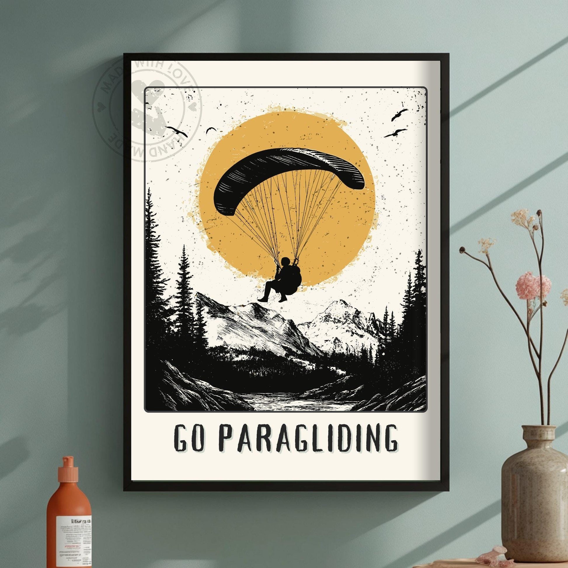 L' affiche « Go Paragliding » est idéale pour les chambres, les salons, les bureaux ou les espaces dédiés à l'aventure, inspirant la liberté, le courage et la joie du vol. Son design intemporel et son imprimé durable en font une décoration précieuse, célébrant l'esprit du parapente et de l'exploration en plein air.