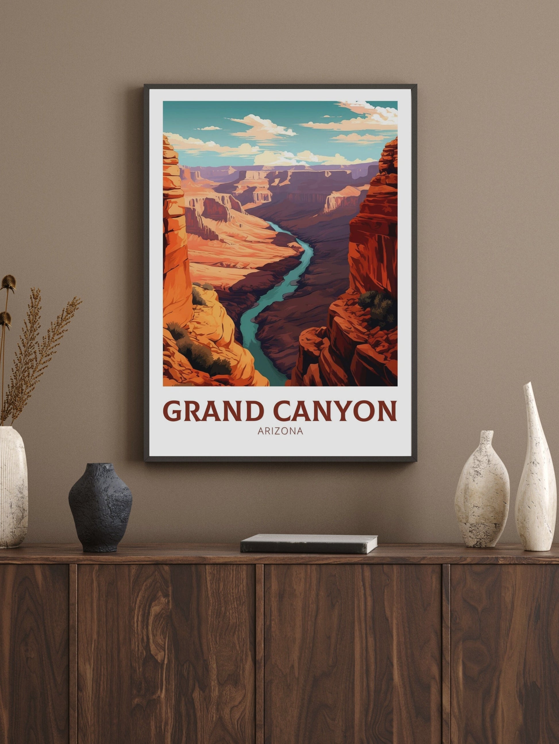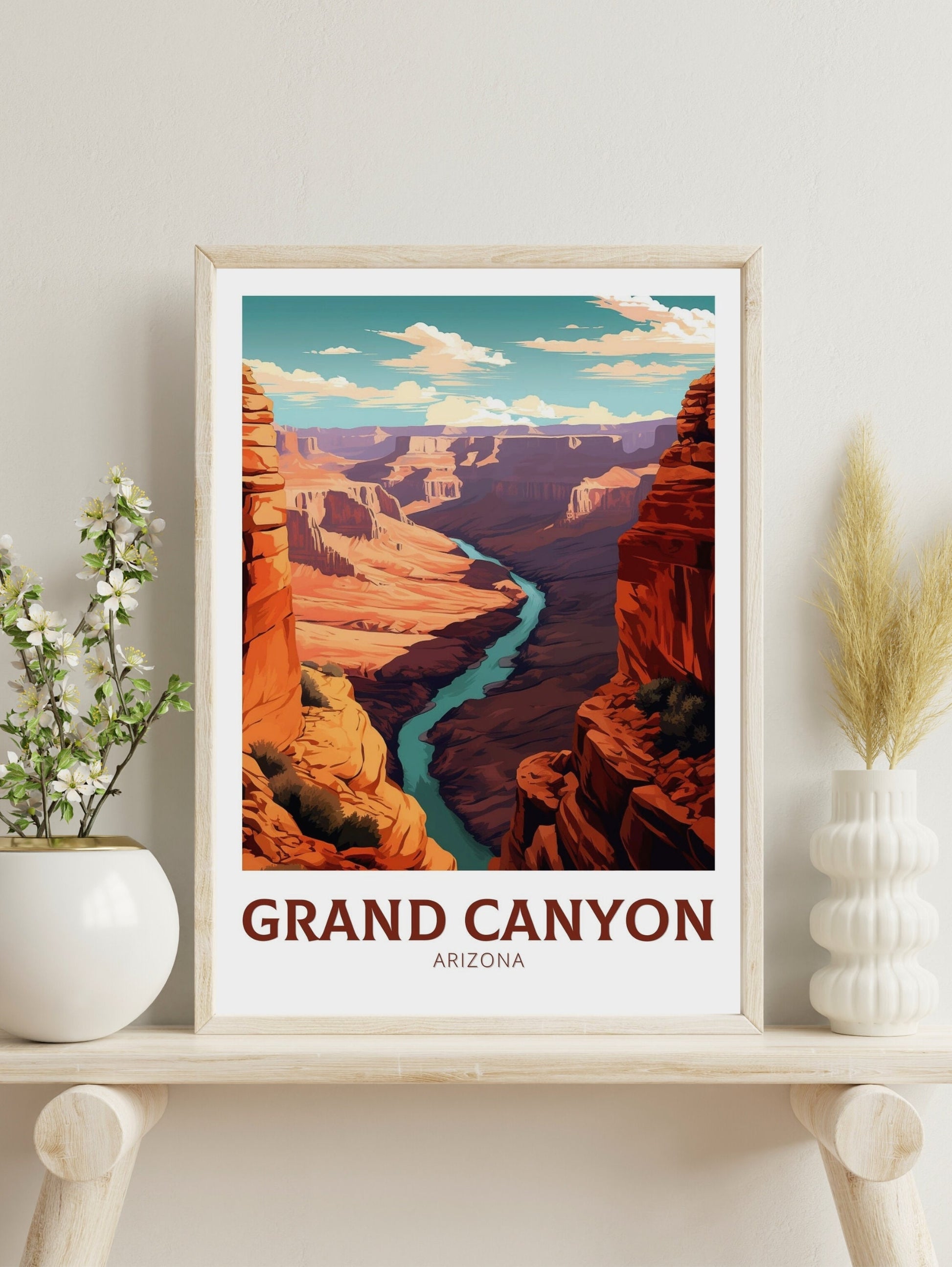 Découvrez la beauté époustouflante de l'une des merveilles naturelles les plus emblématiques du monde avec notre affiche de voyage du Grand Canyon . Cette œuvre d'art de l'Arizona capture les falaises spectaculaires, les formations rocheuses colorées et les panoramas époustouflants du Grand Canyon. Elle est idéale pour les voyageurs, les amoureux de la nature et les amateurs de décoration inspirée de l'Arizona. Insufflez l'esprit grandiose du Grand Canyon chez vous, au bureau ou sur votre mur de galerie.