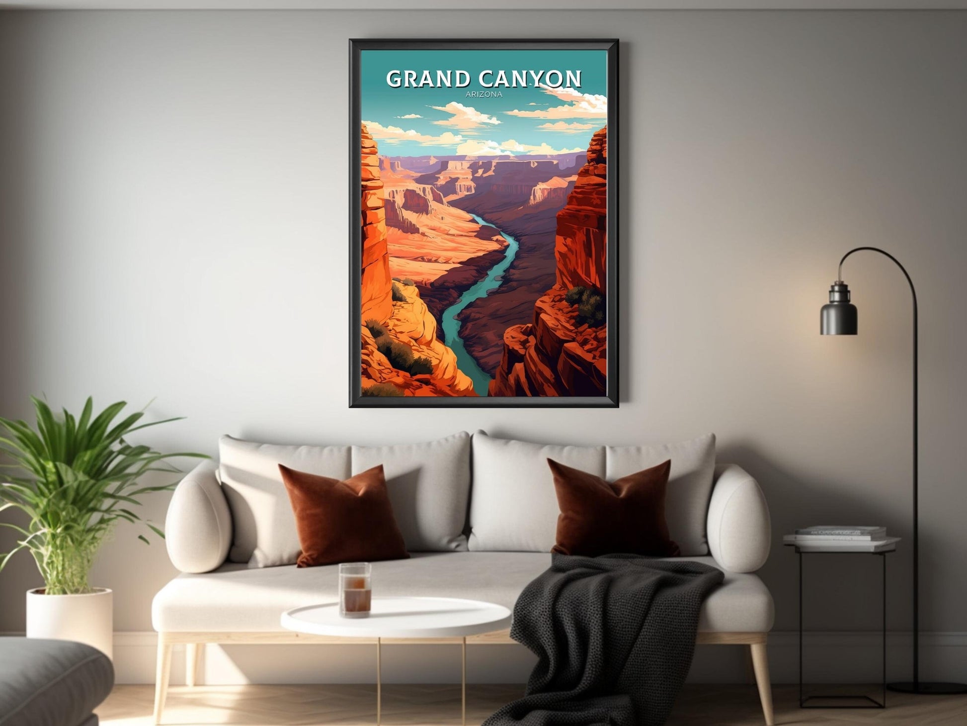 Disponible en téléchargement numérique et en tirage physique premium , cette affiche de voyage du Grand Canyon est disponible en plusieurs formats, des formats standard de la série A aux grands formats 76 x 102 cm. Imprimée sur du papier de haute qualité aux couleurs vives et aux détails précis, elle est idéale pour décorer votre intérieur ou pour offrir à toute personne inspirée par les paysages emblématiques de l'Arizona.