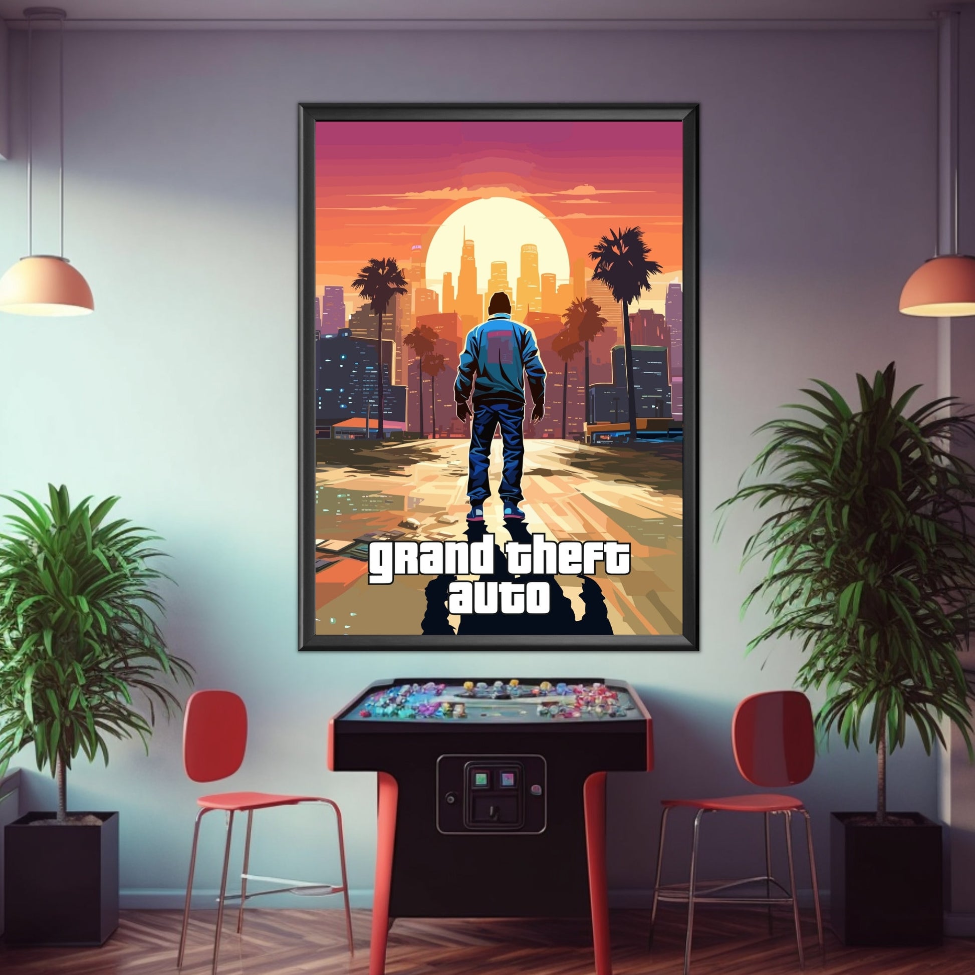 Affiche Grand Theft Auto – Décoration murale gaming pour les fans d'action en monde ouvert