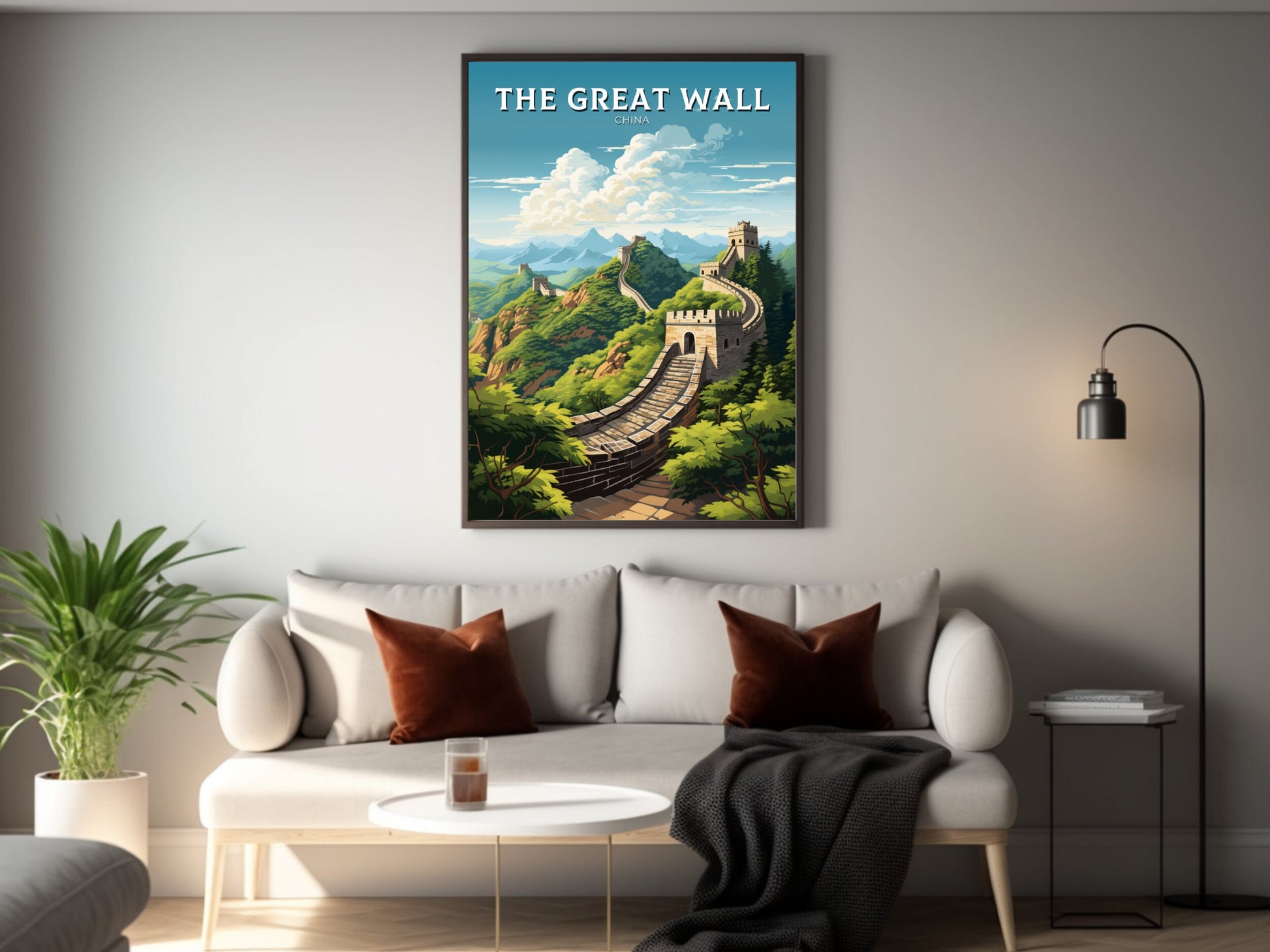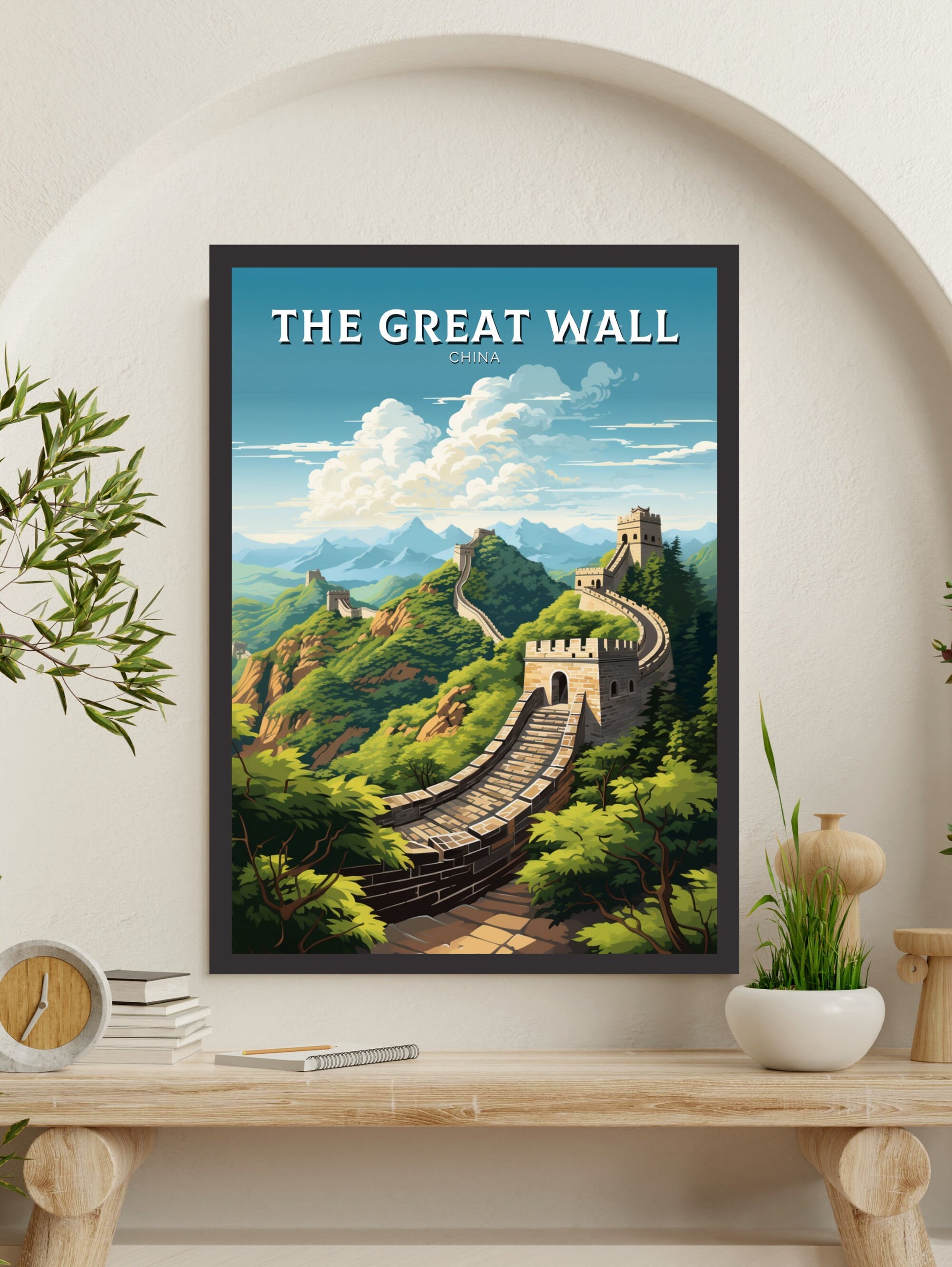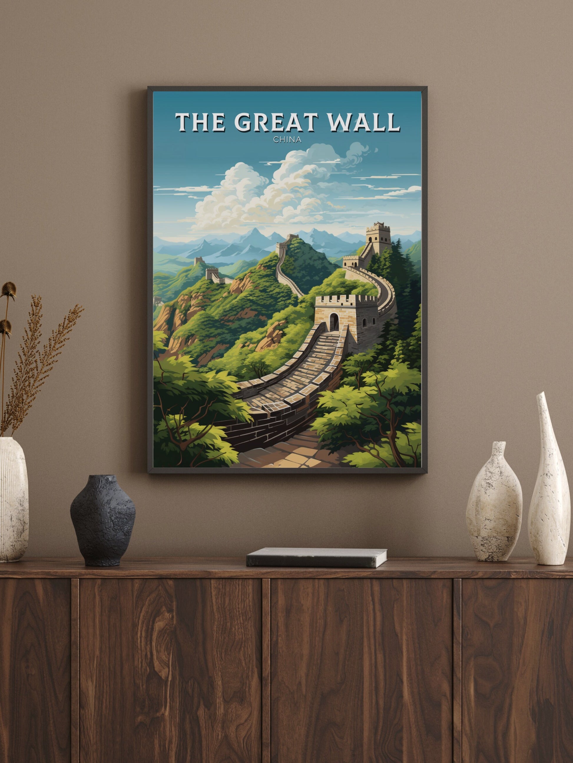 Cette œuvre mêle des verts terreux et des bruns chaleureux à l'essence majestueuse de la Grande Muraille, mettant en valeur sa splendeur intemporelle dans un style vibrant. Imprimée sur un papier de qualité supérieure, elle offre un éclat durable et une finition lisse, ce qui en fait un cadeau idéal pour les aventuriers ou les collectionneurs d'art. Cette affiche de la Grande Muraille apporte une touche de grandeur épique à n'importe quel mur.