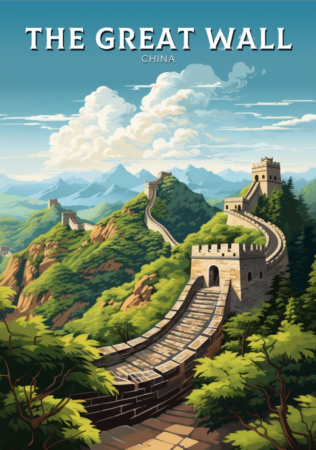 Notre affiche de voyage sur la Grande Muraille de Chine vous permet d'explorer cette merveille légendaire de Chine grâce à son design époustouflant. Idéale pour les passionnés de voyages et les amateurs d'art, elle illustre la Grande Muraille serpentant à travers des collines escarpées avec des détails saisissants. Que vous ayez foulé ses pierres ou rêvé de sa puissance, cette affiche de la Grande Muraille de Chine sera un ajout saisissant à votre décoration.