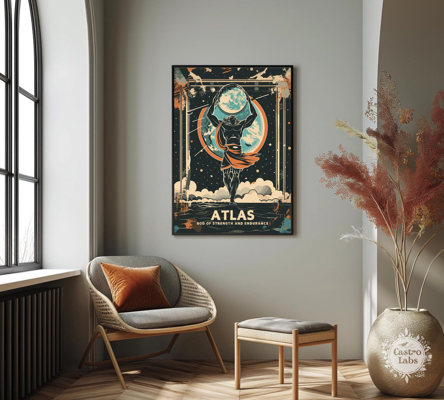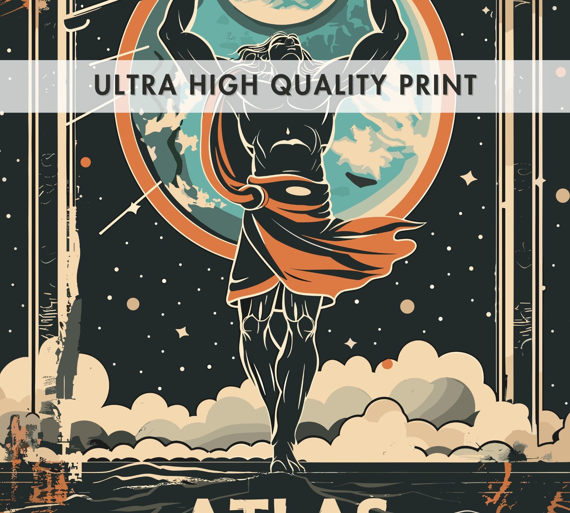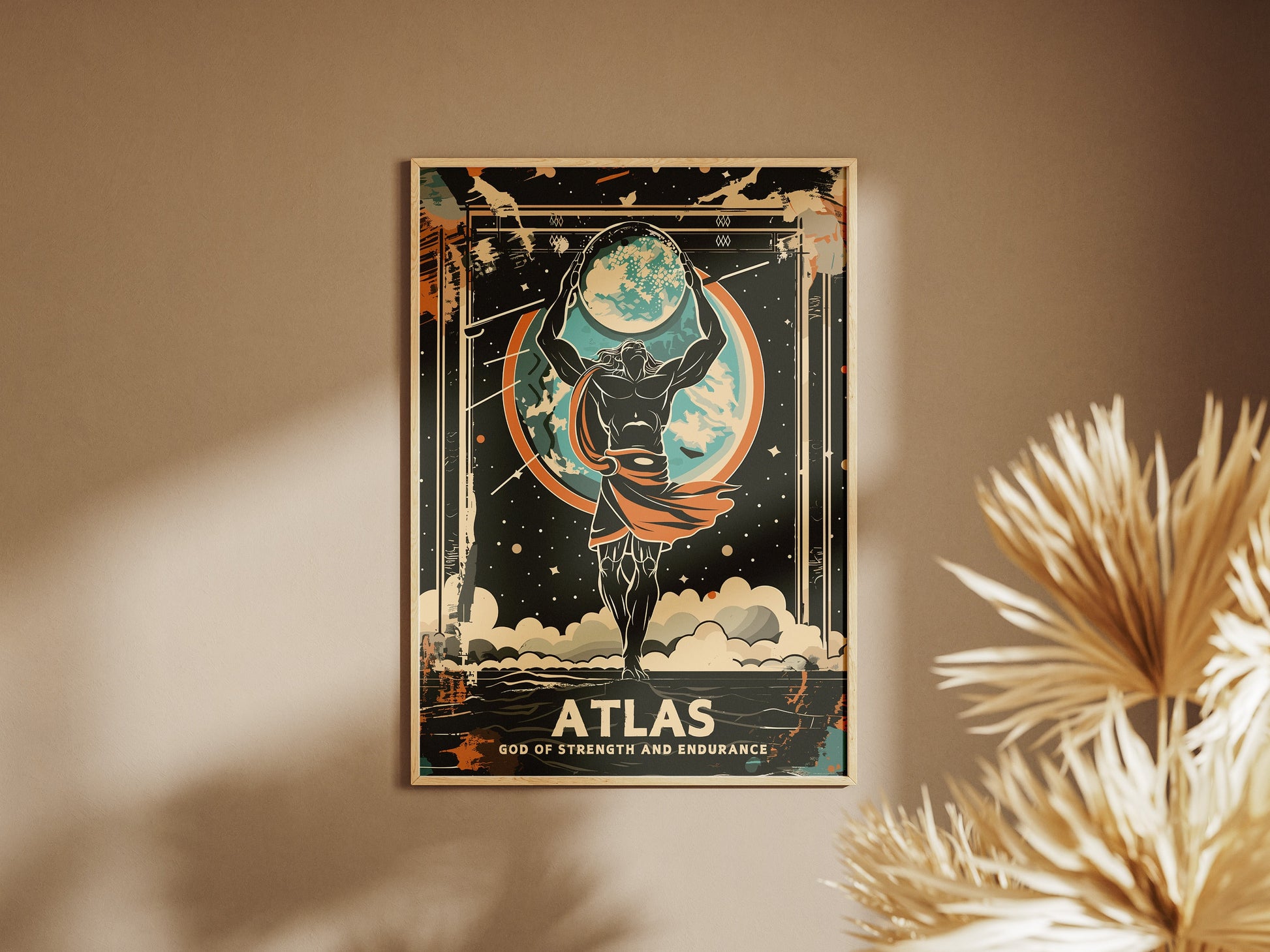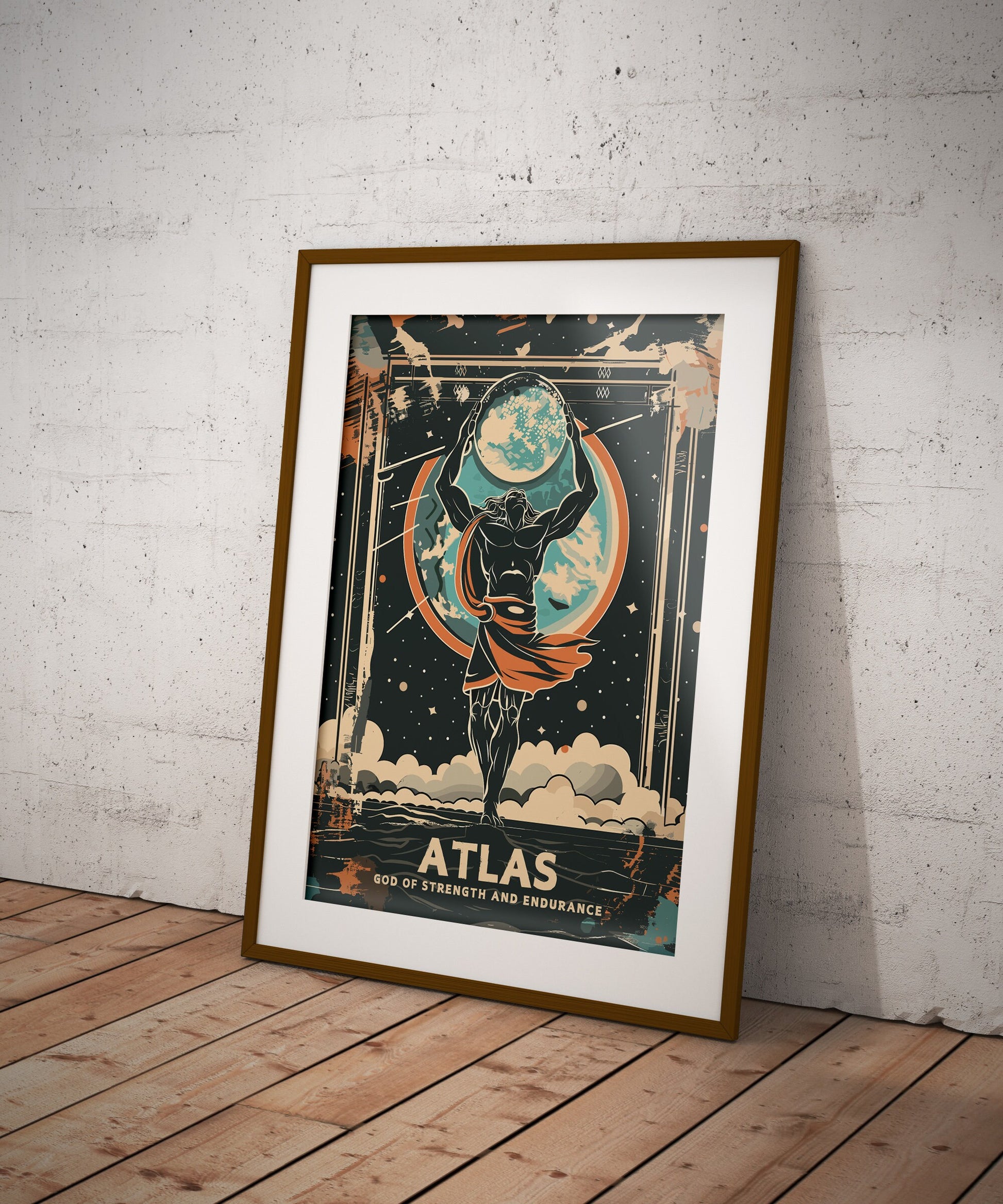 Notre affiche du dieu grec Atlas – L'œuvre Titan Atlas habille votre espace d'un design monumental. Parfaite pour les passionnés de mythologie et les admirateurs de force, elle représente Atlas, le puissant Titan, portant le poids des cieux sur ses épaules. Que vous vénériez son endurance ou que vous aimiez l'art épique, cette affiche Atlas Titan sera un ajout puissant à votre décoration.