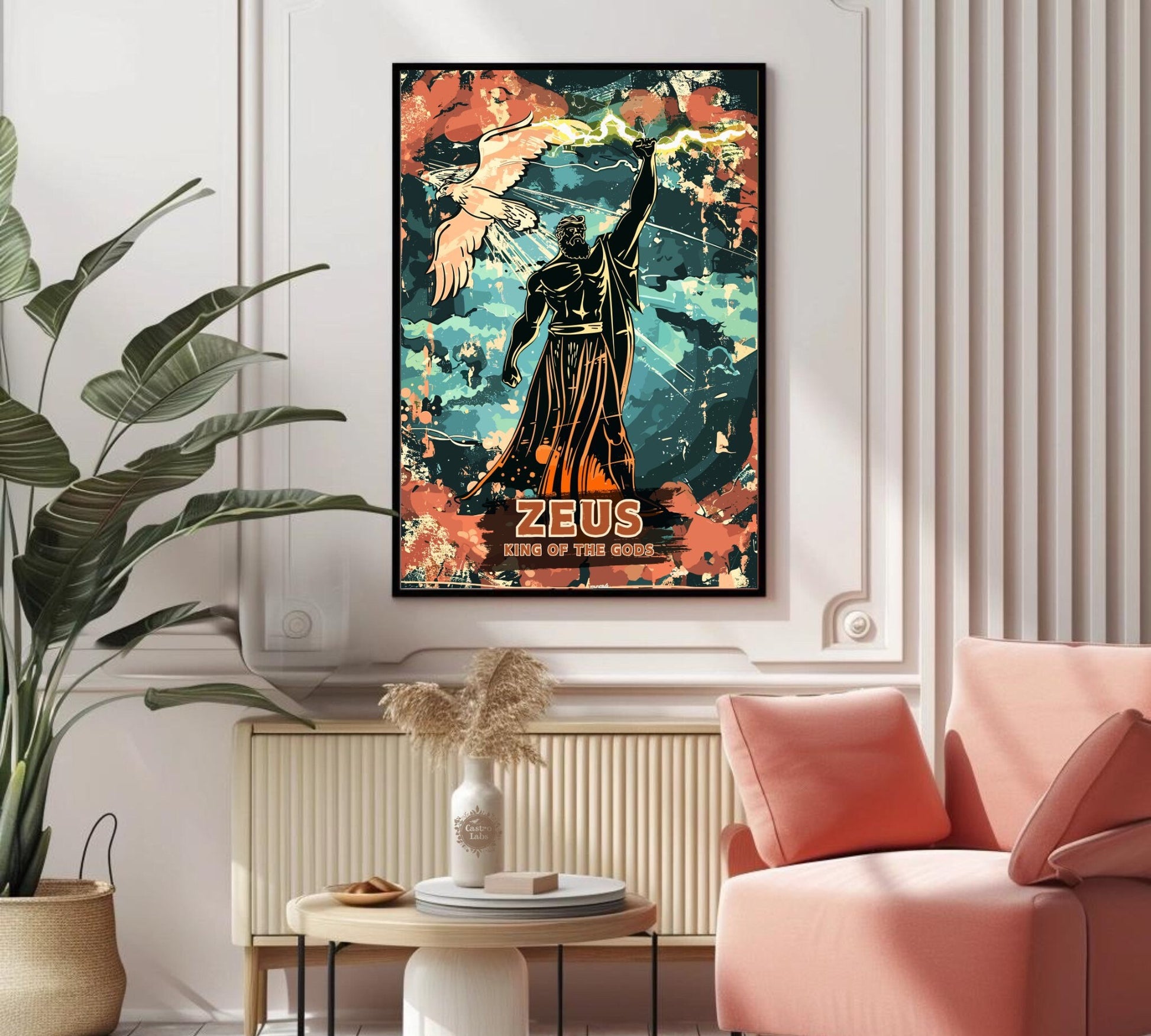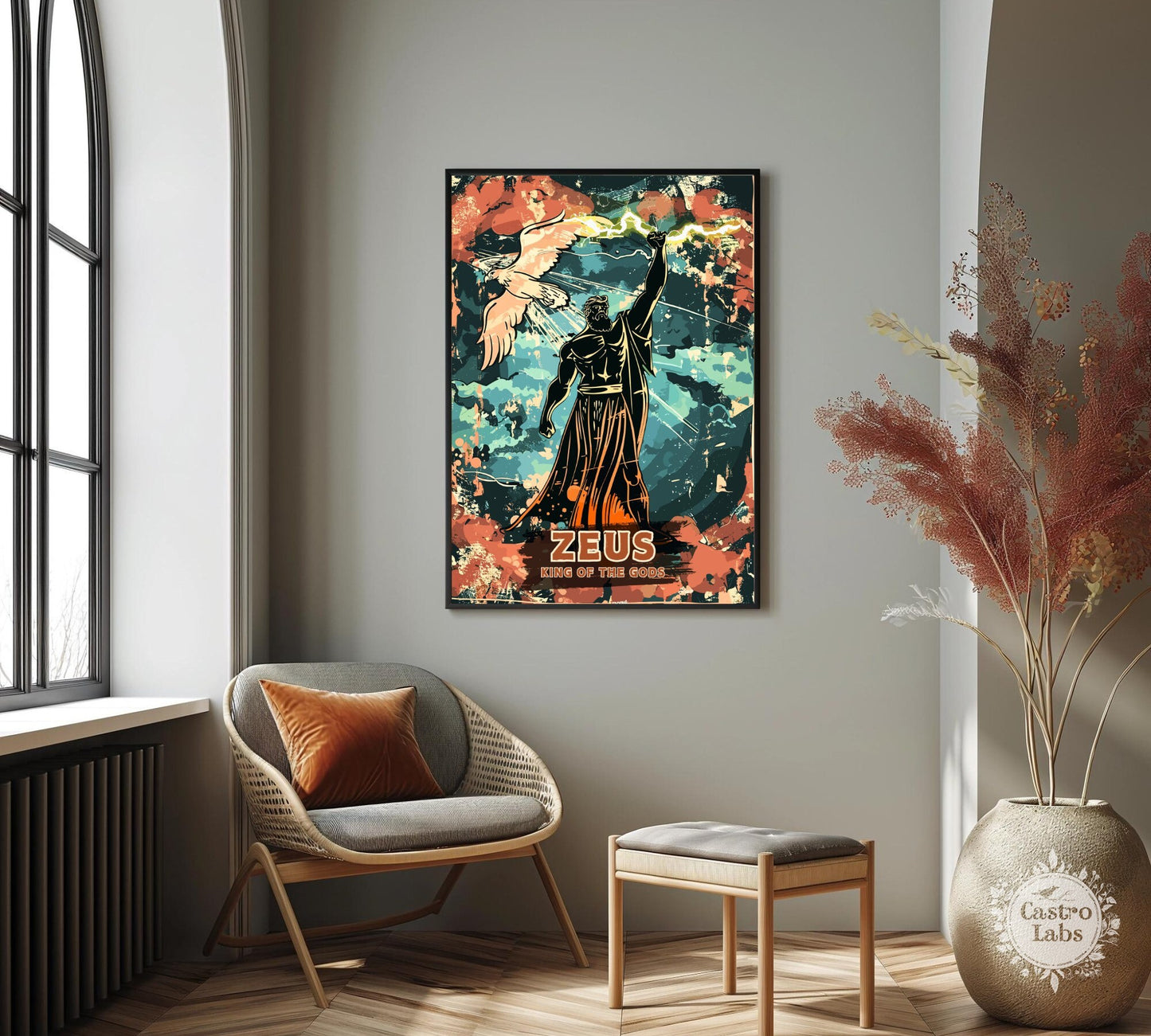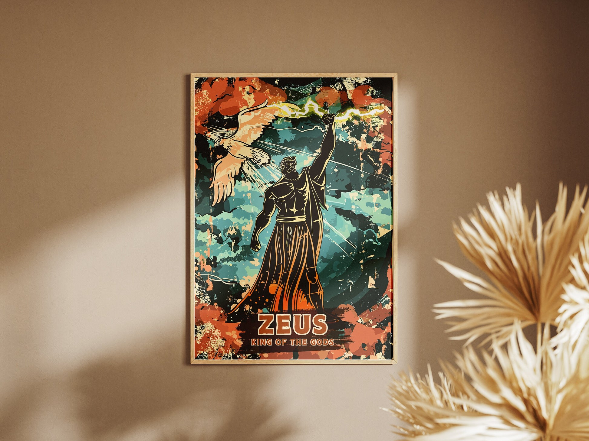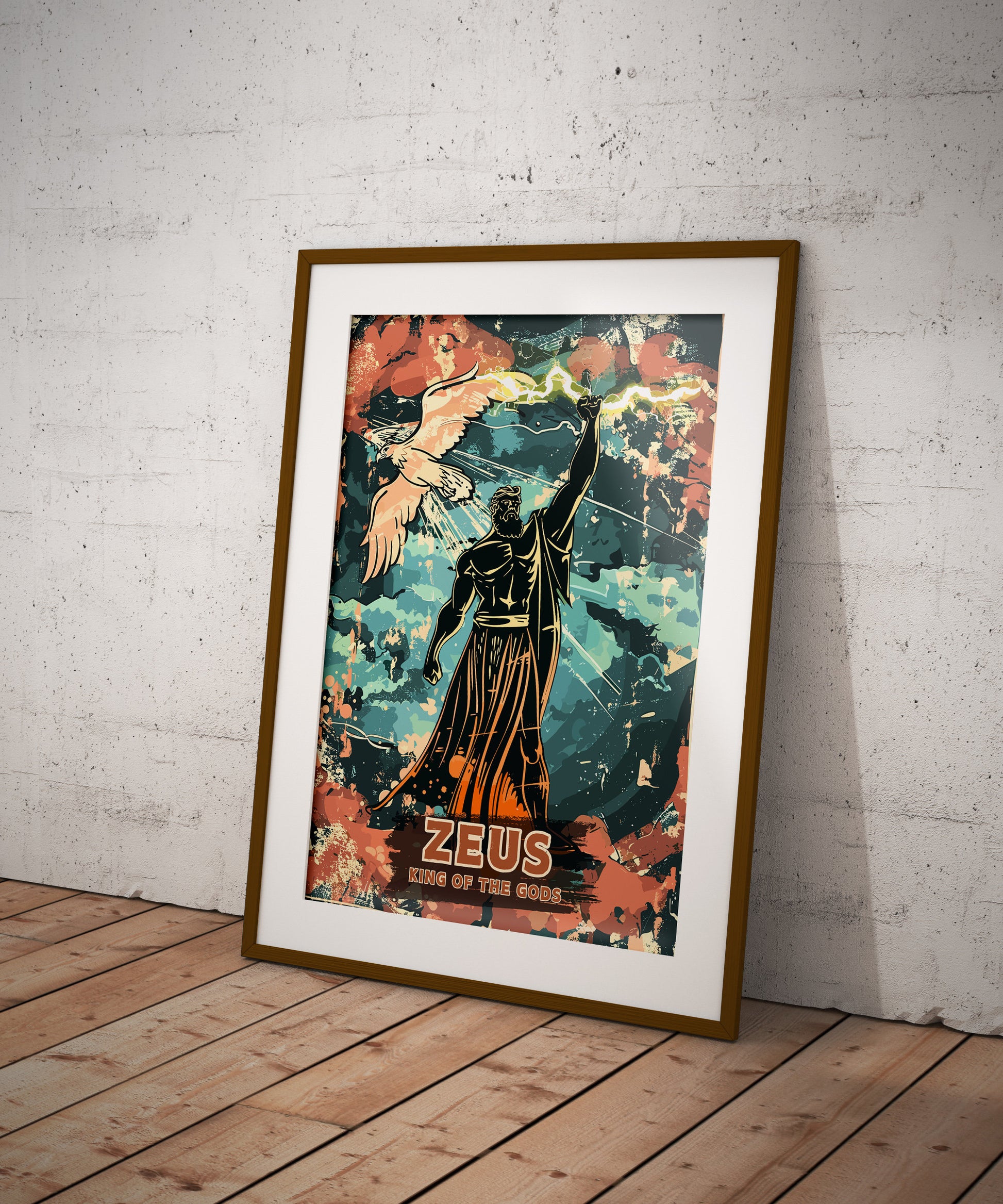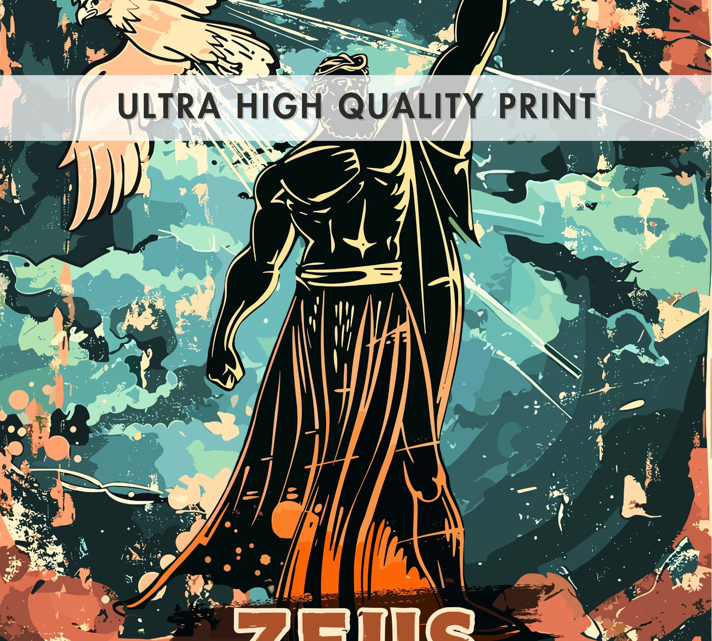 Notre affiche Zeus, dieu grec du tonnerre, électrise votre espace grâce à son design imposant. Parfaite pour les passionnés de mythologie et de pouvoir, elle représente Zeus, le puissant souverain des dieux, brandissant la foudre dans un ciel orageux. Que vous vénériez sa puissance ou que vous aimiez l'art épique, cette affiche Zeus Tonnerre apportera une touche d'audace à votre décoration.