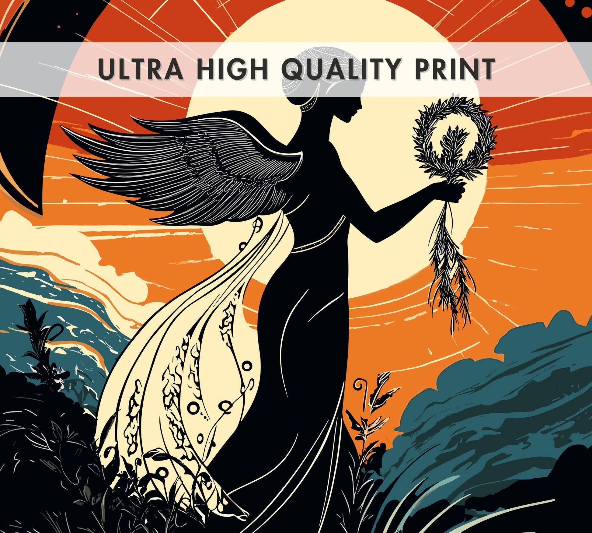 Imprimée sur un papier résistant et de haute qualité, cette œuvre d'art inspirée de la mythologie grecque capture l'esprit féroce et l'énergie gagnante de Nike. Elle est parfaite pour tous ceux qui aiment les mythes, les femmes fortes ou qui recherchent simplement une œuvre d'art remarquable pour leur intérieur.