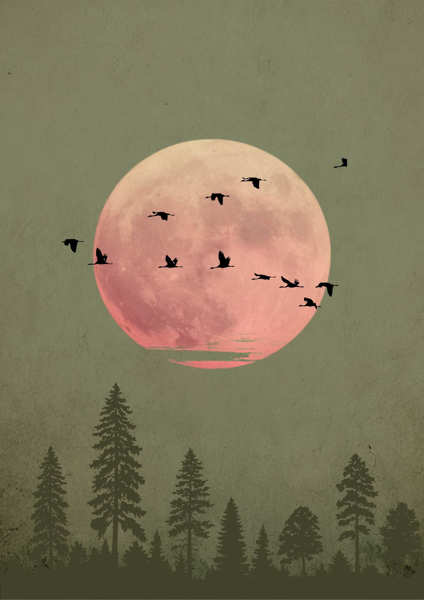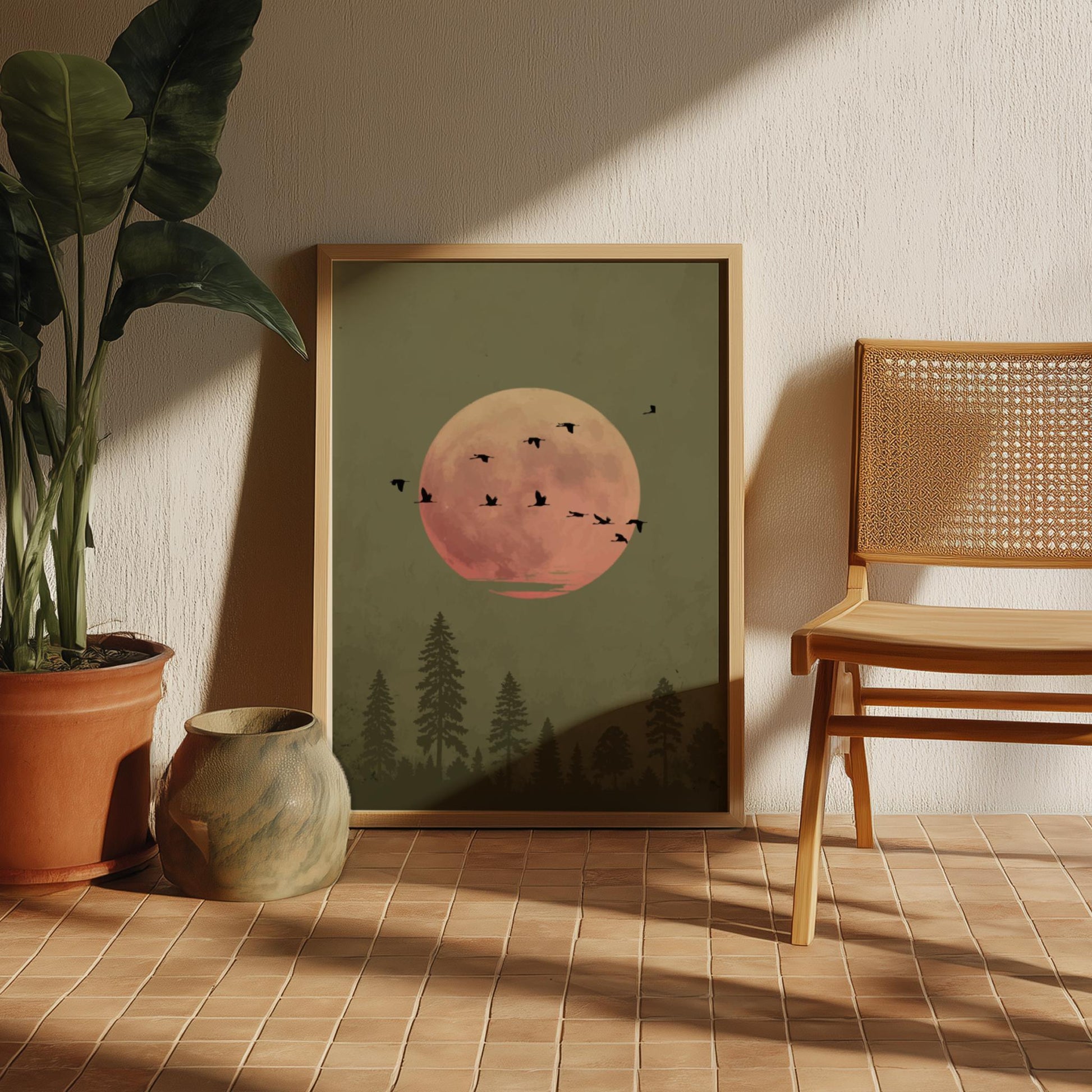 Impression Forêt de Lune Verte – Décoration murale minimaliste
