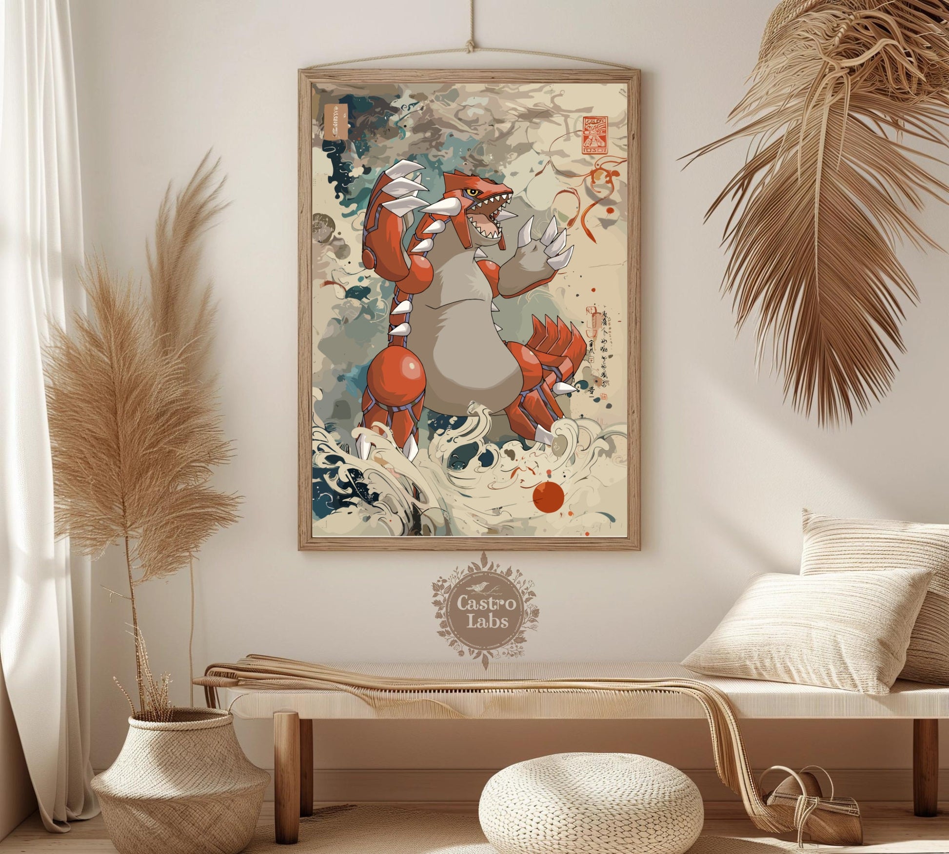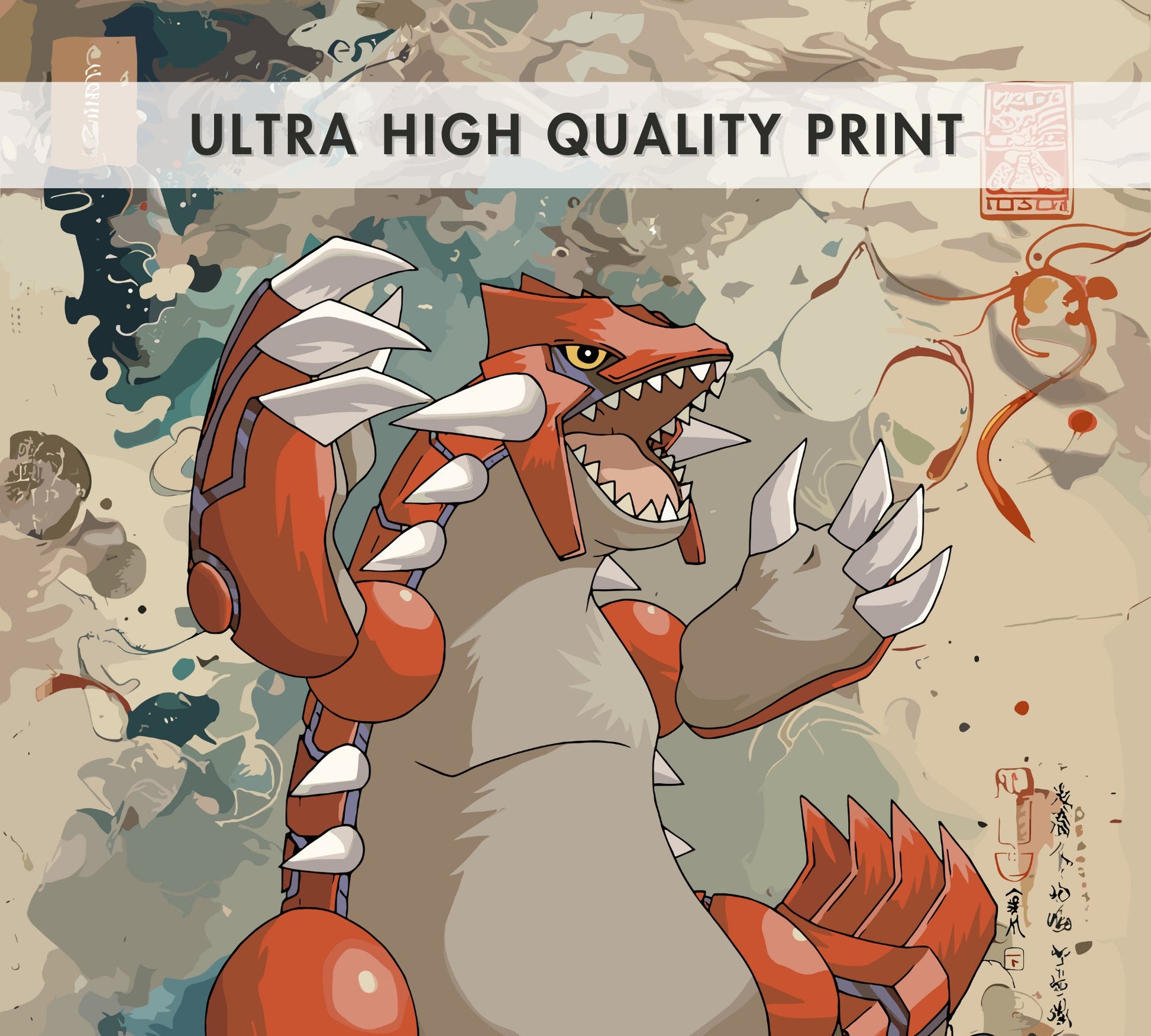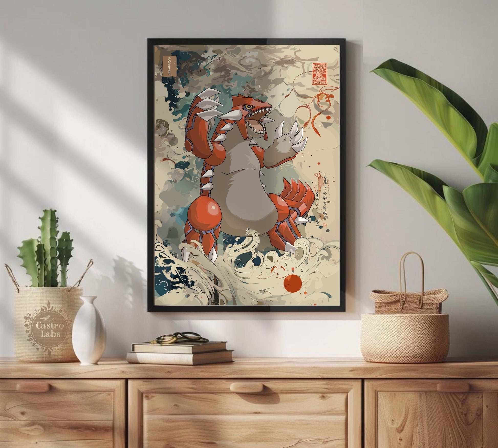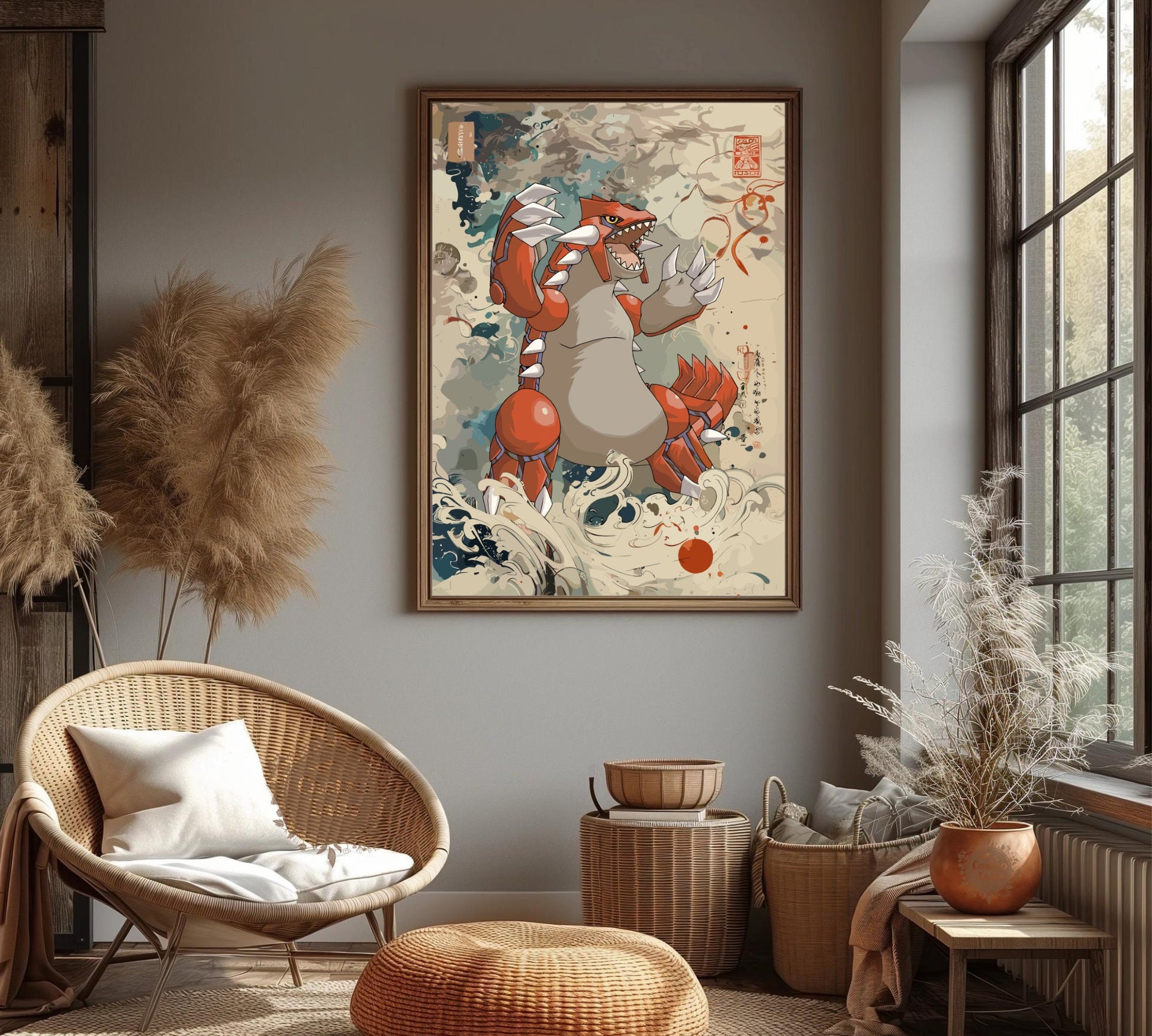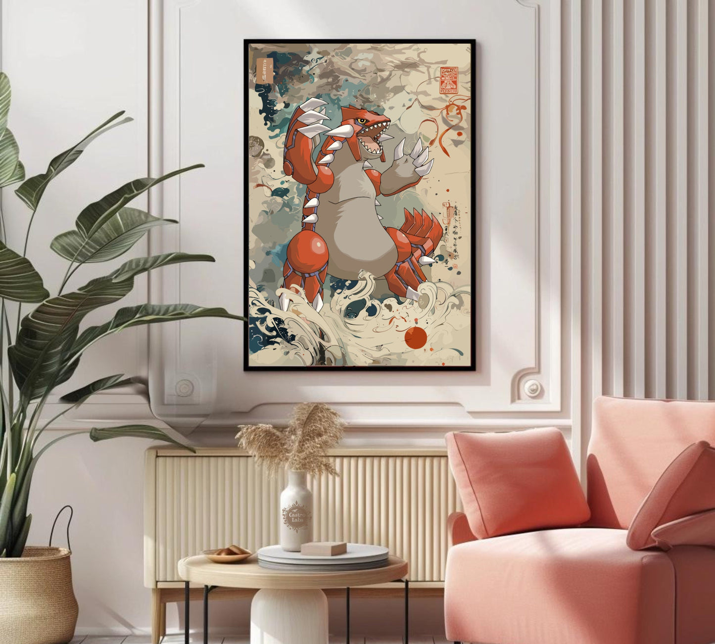 Imprimée sur du papier poster de haute qualité, l' œuvre Pokémon Groudon offre des couleurs vibrantes et des lignes nettes, idéale pour les chambres, les espaces de jeu ou les murs à thème Pokémon. Son esthétique inspirée des tapisseries japonaises confère à votre espace une touche unique et collectionnable.