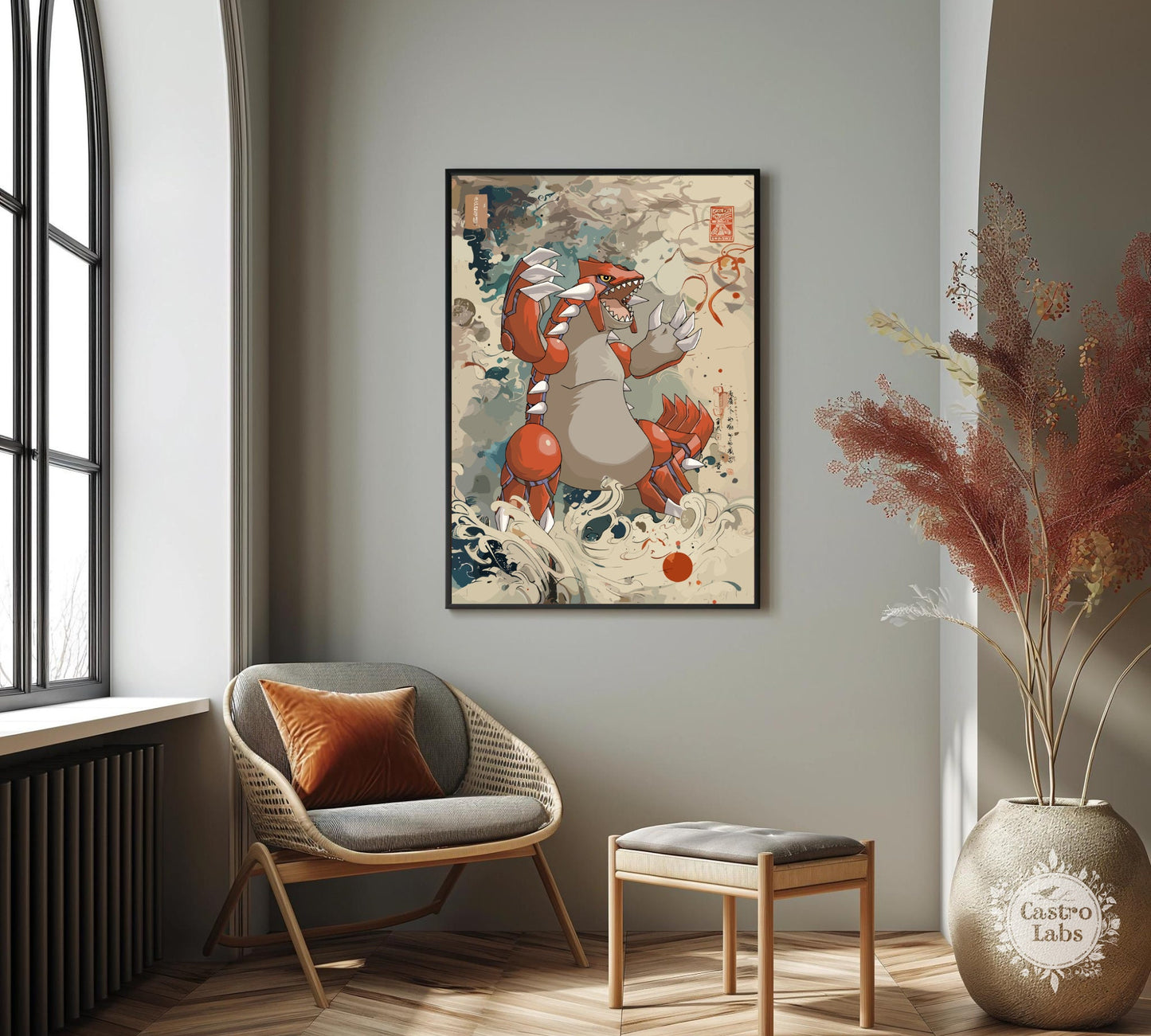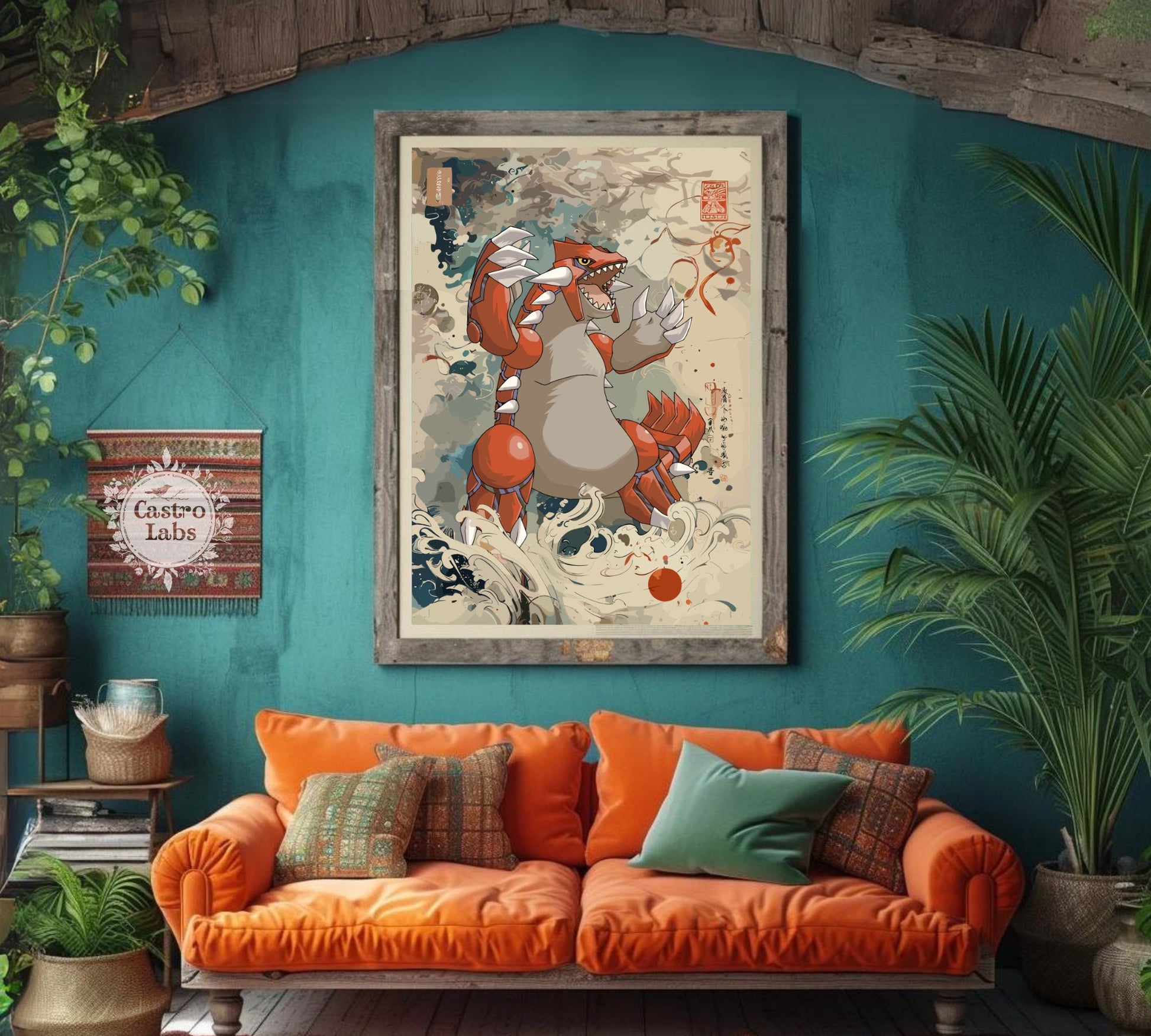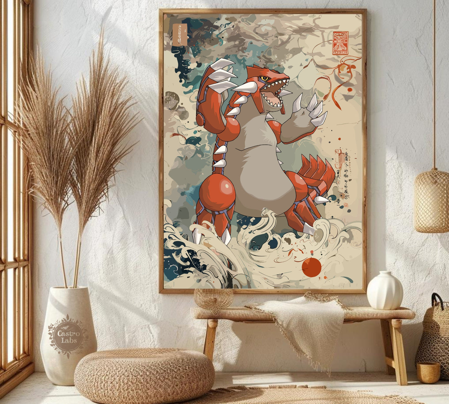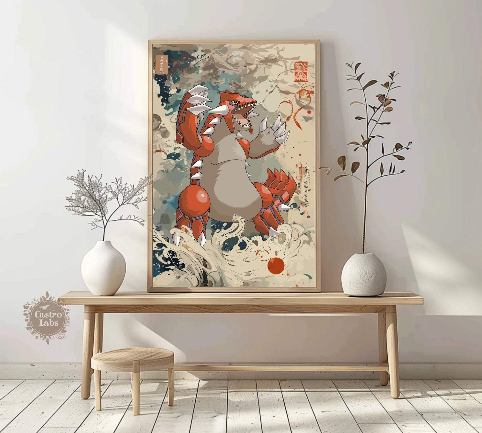 Illustration Pokémon Groudon - Fan Art Style Tapisserie Japonaise